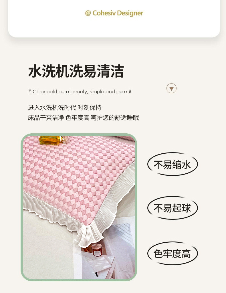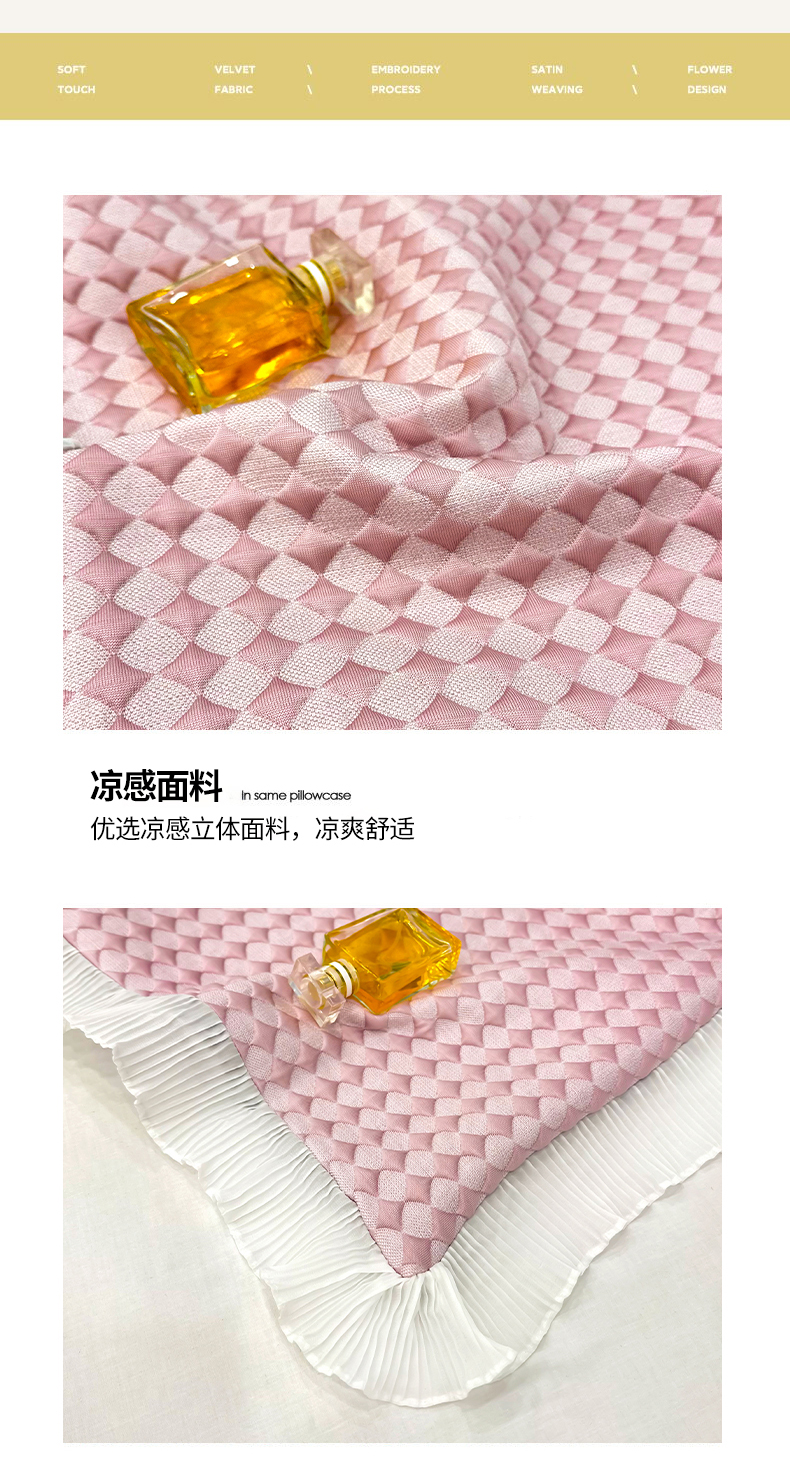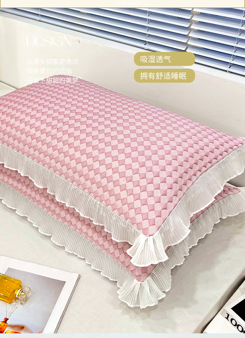 商品名称:2024新款A类冰豆豆花边单人枕套 小菱形-粉