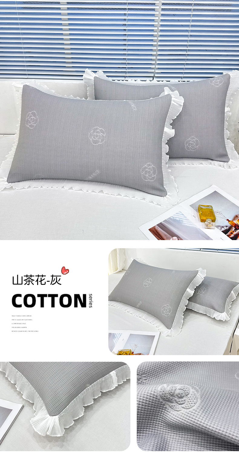 2024新款A类冰豆豆花边单人枕套 小菱形-粉