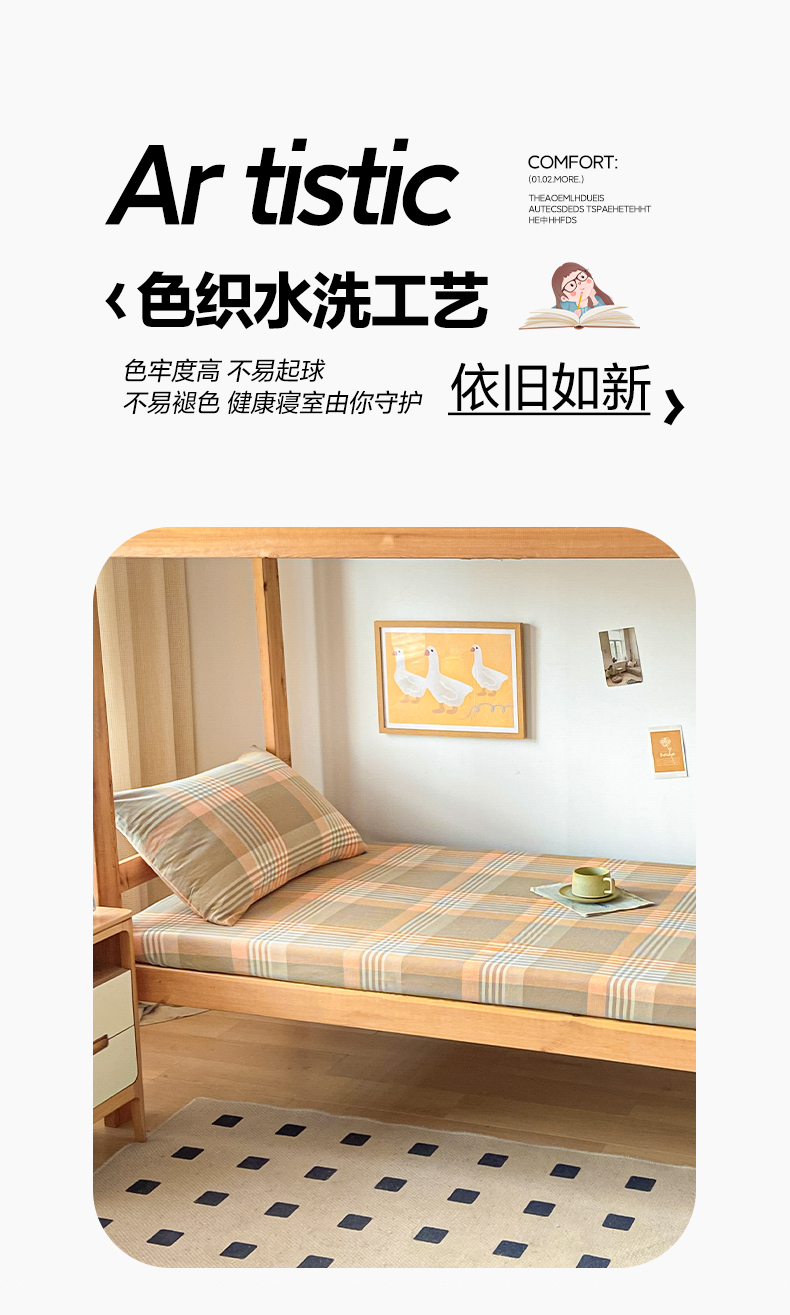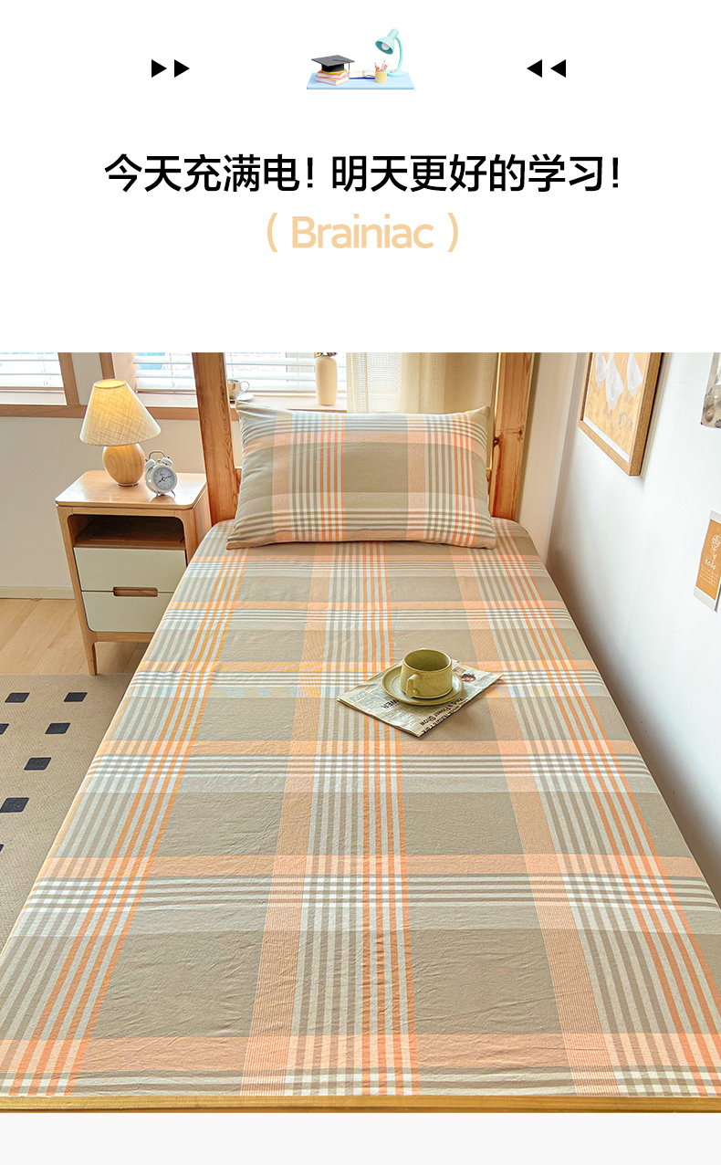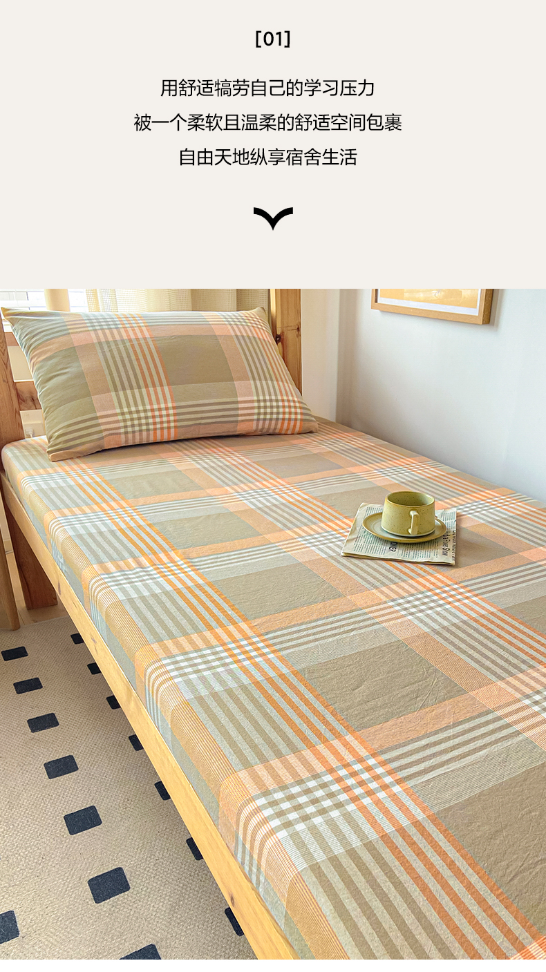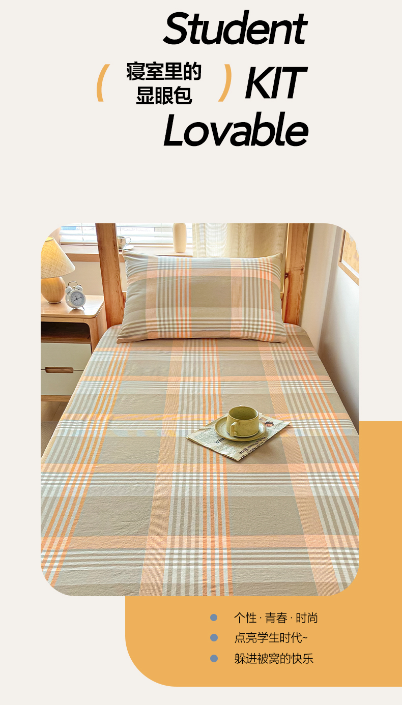 • 91家纺网 家纺一手货源 找家纺 卡伦家纺 2025新款全棉色织水洗棉单层宿舍学生床笠 错格咖