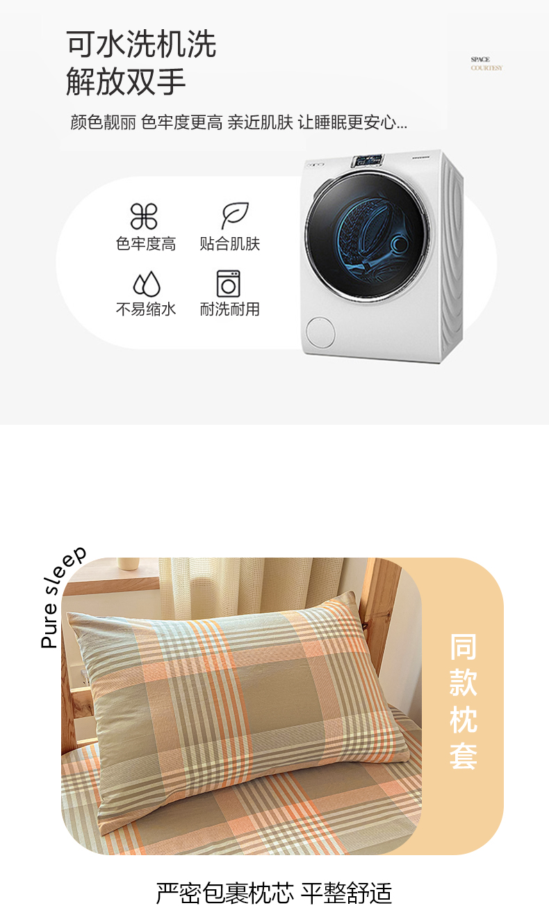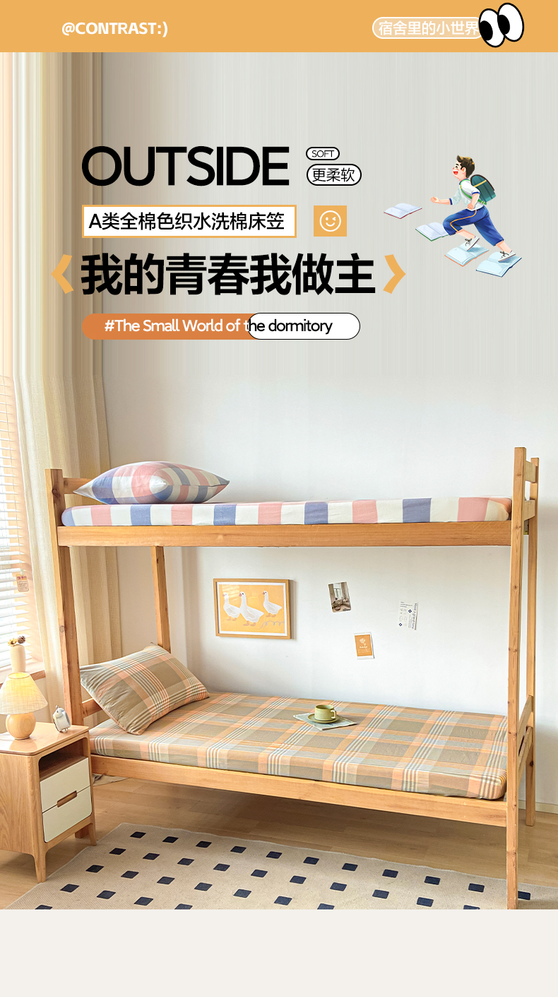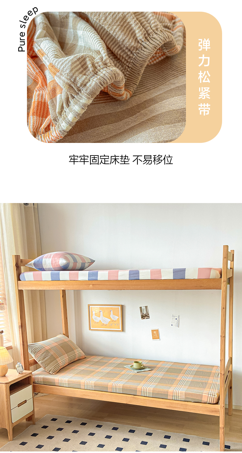 • 91家纺网 家纺一手货源 找家纺 卡伦家纺 2025新款全棉色织水洗棉单层宿舍学生床笠 错格咖
