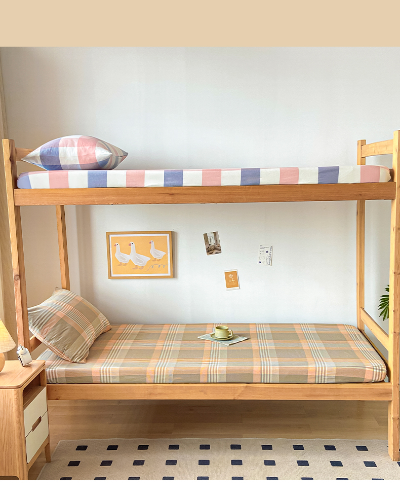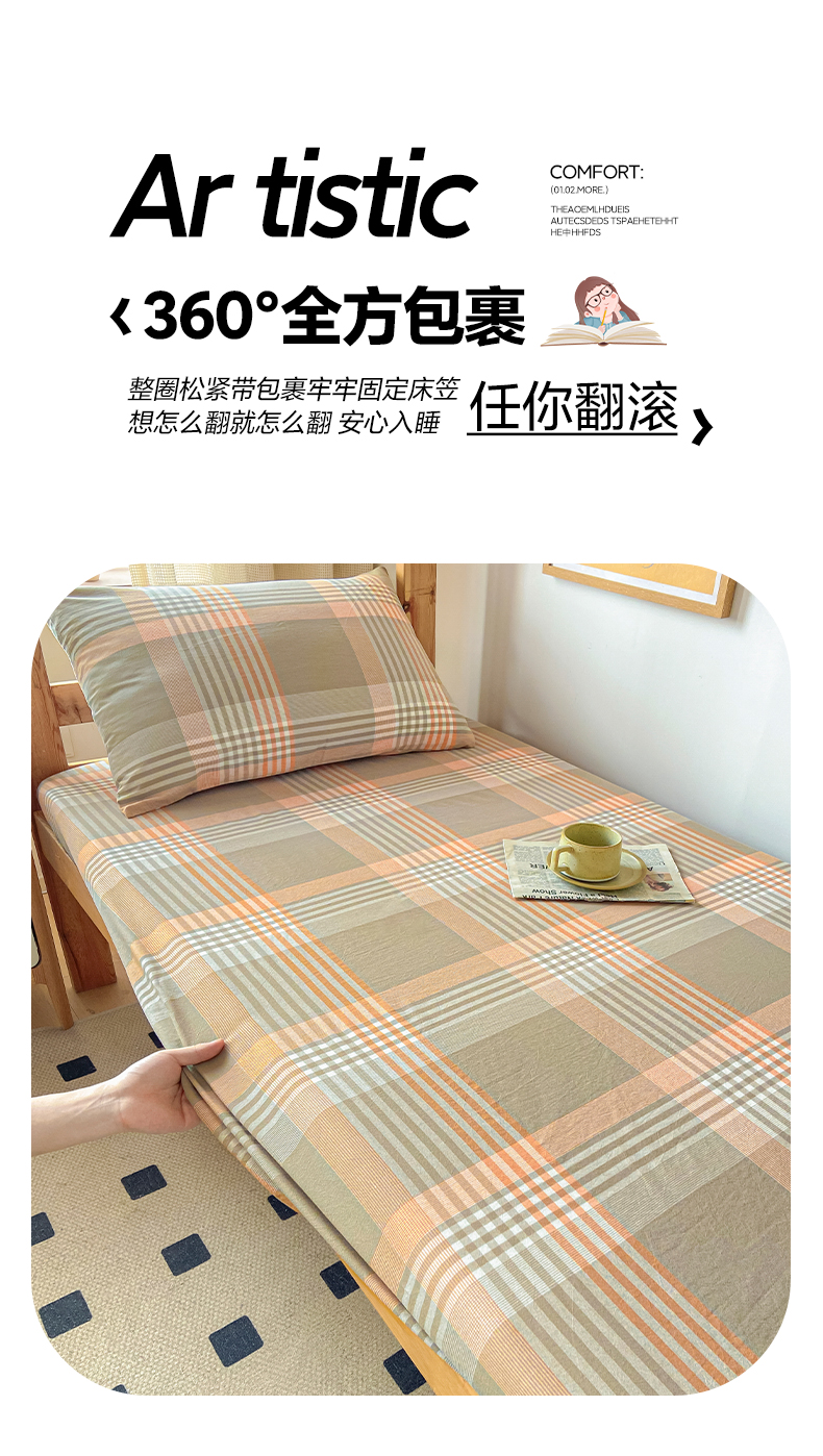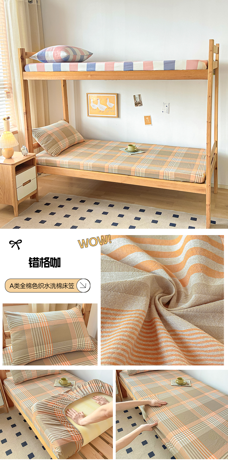 卡伦家纺 2025新款全棉色织水洗棉单层宿舍学生床笠 错格咖