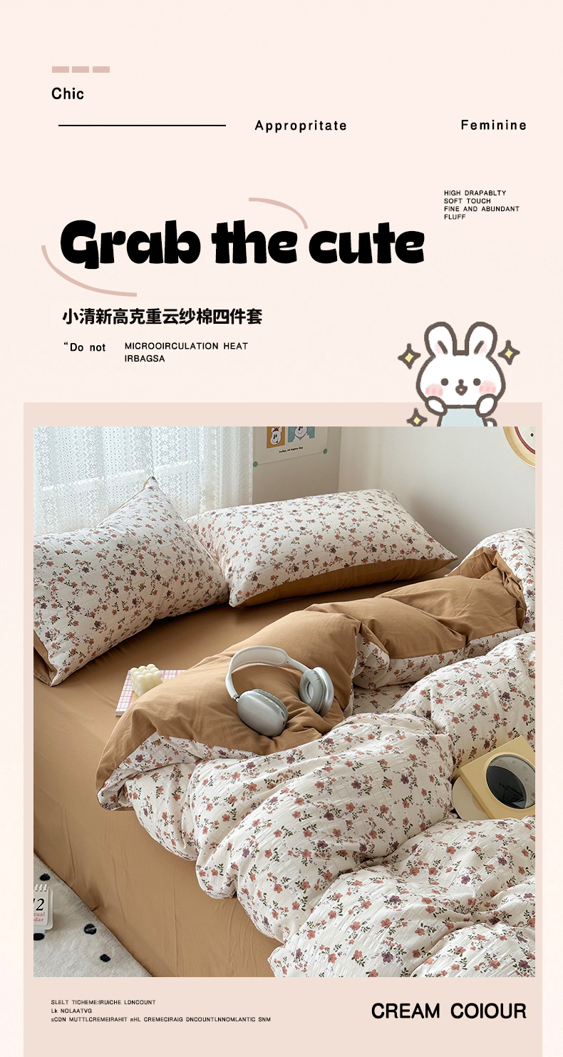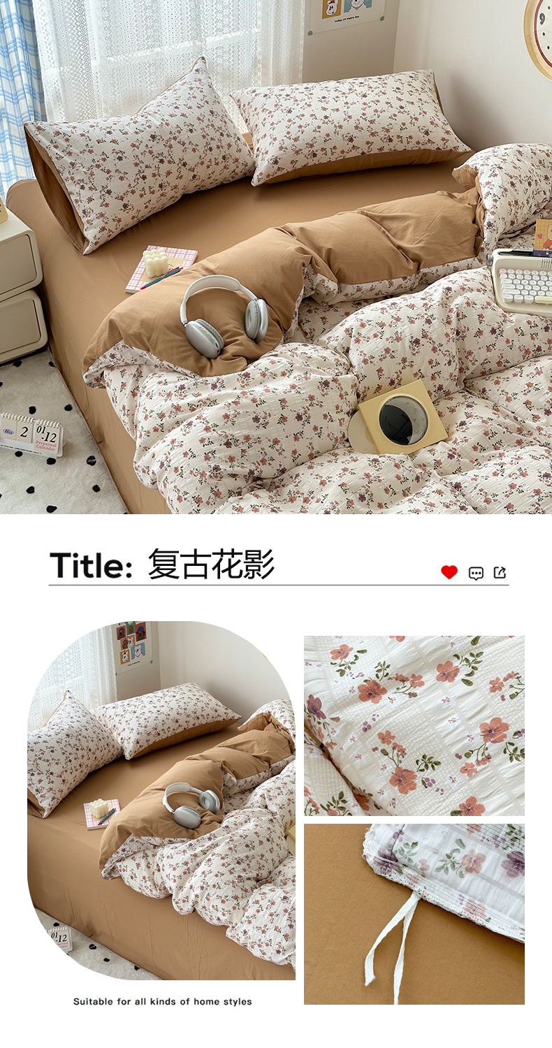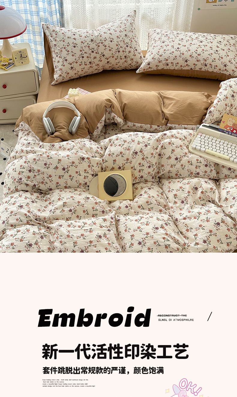 当前位置: 91家纺网 > 商品网购 > 床品套件 > 四件套 > 全棉普通四件套 > 希丞家居 2024新款小清新高克重提花水洗棉四件套(提供买家秀) 复古花影