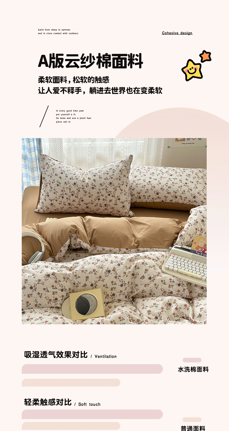 0.90m床:被套150×200 床单180*230 枕套48×74*1只 | ¥40.00 |