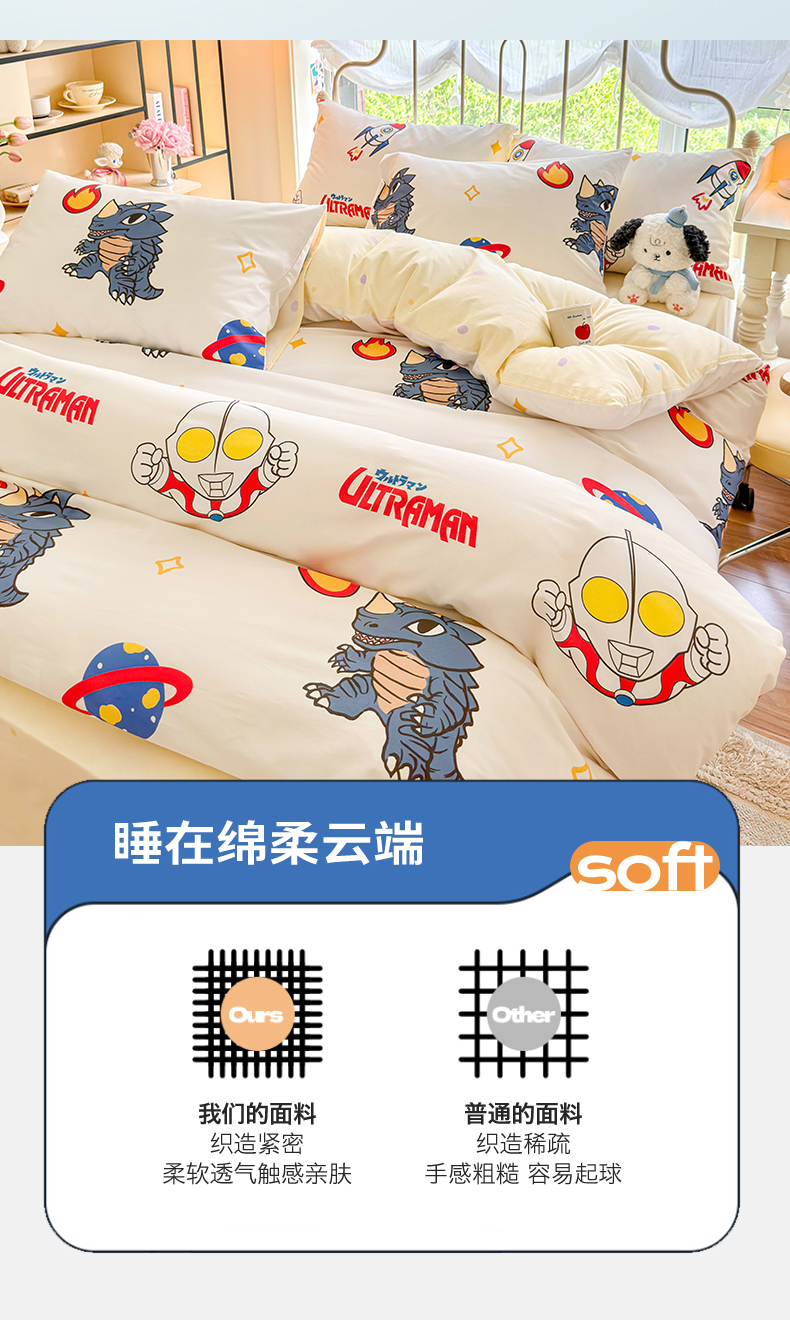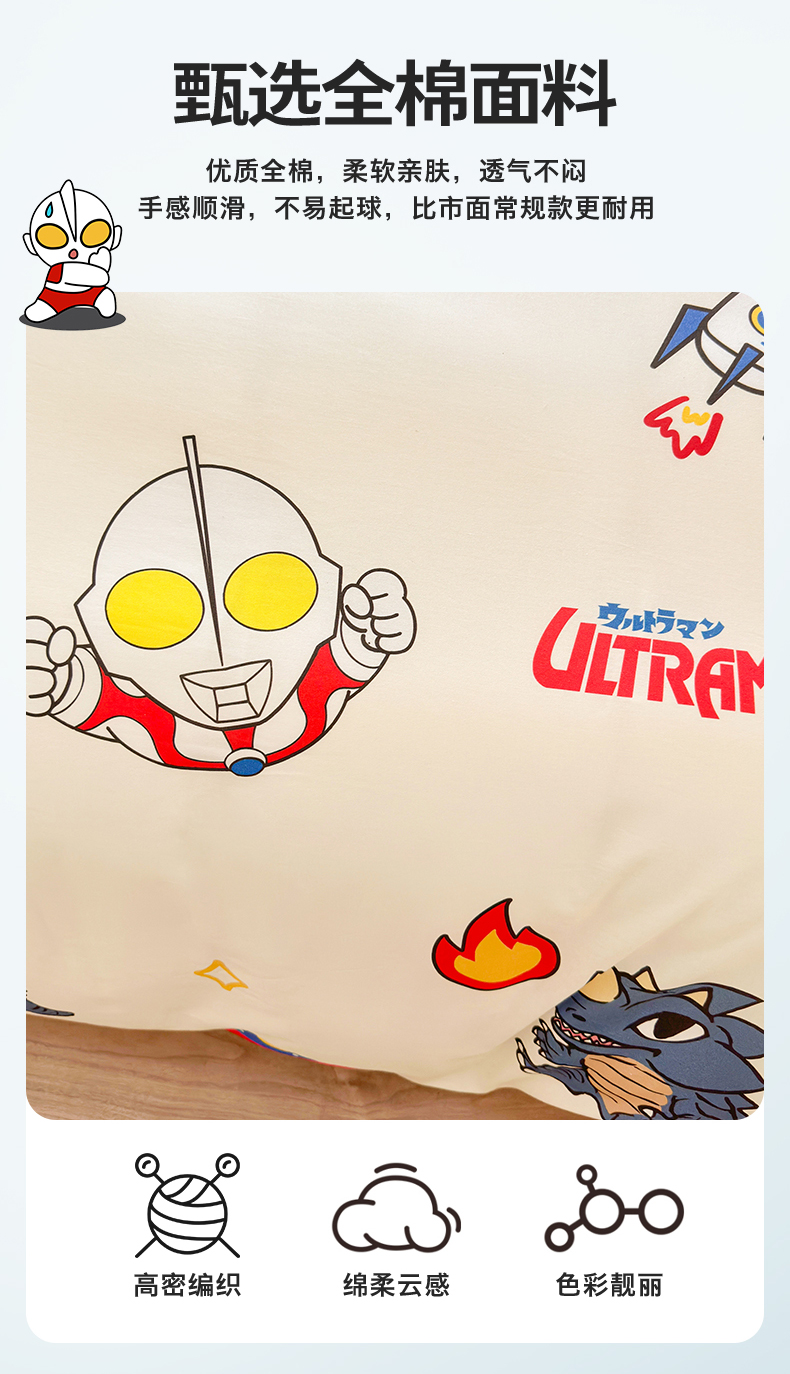 当前位置: 91家纺网 > 商品网购 > 床品套件 > 四件套 > 全棉普通四件套 > 2024新款授权经典奥特曼-三丽鸥全棉卡通四件套学生三件套【含防伪标】 咸蛋超人