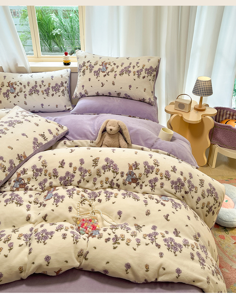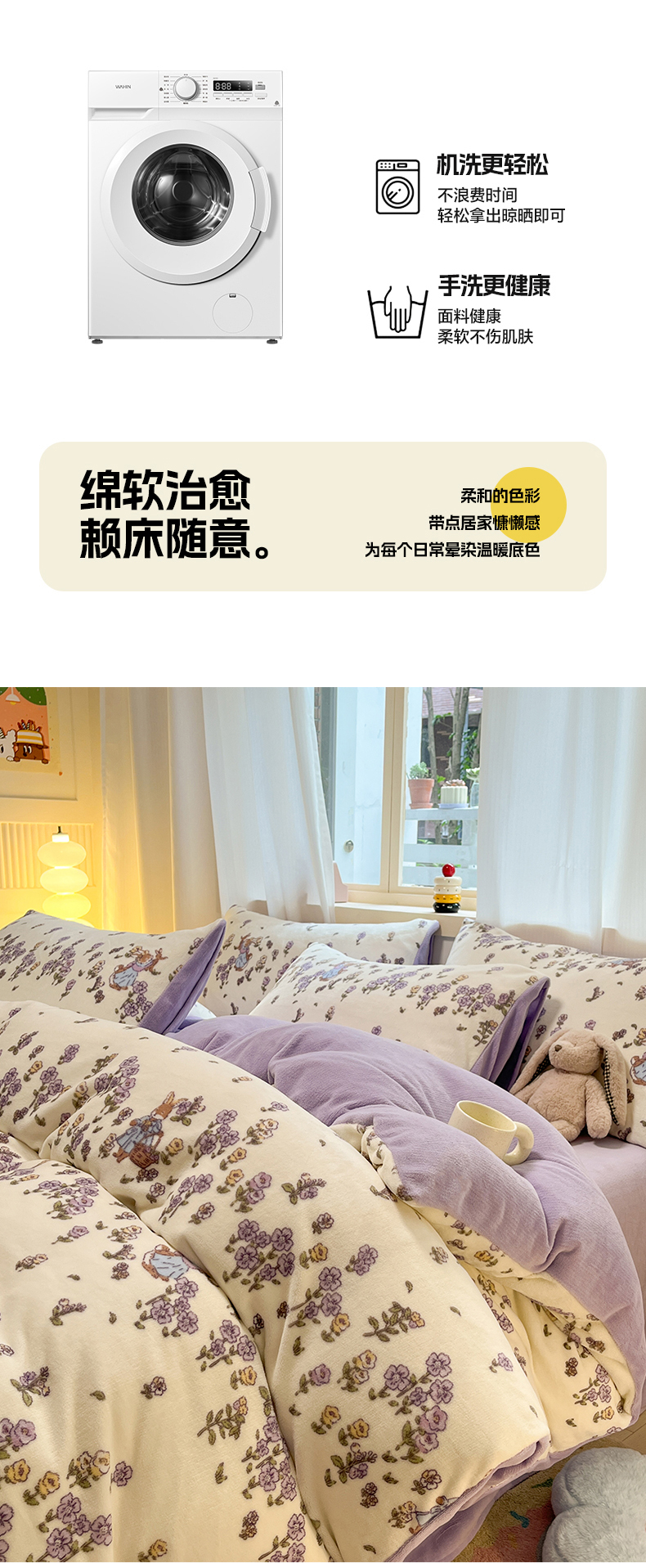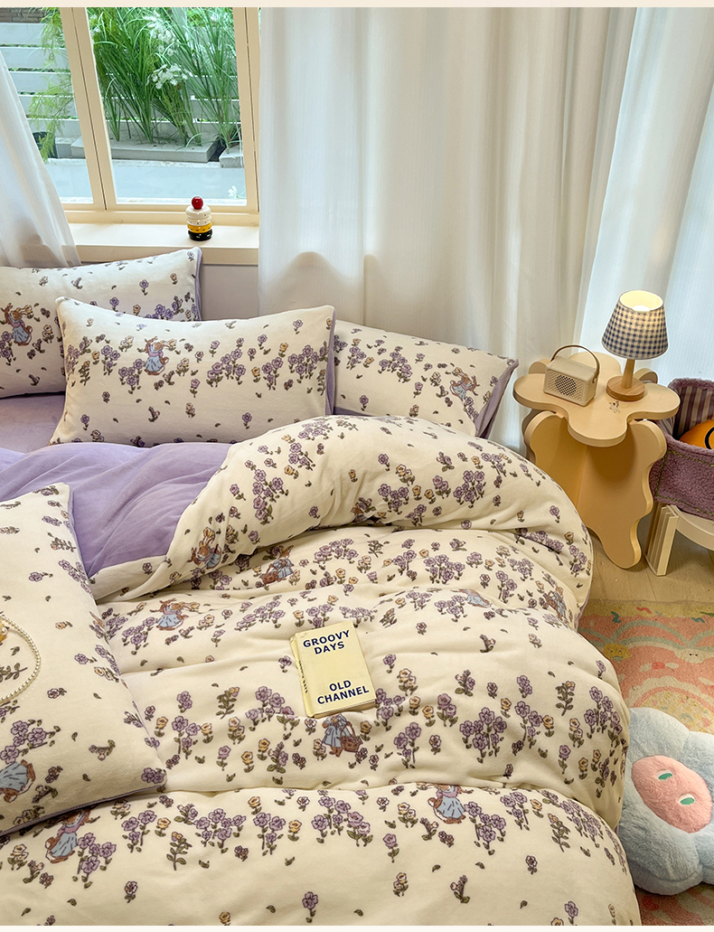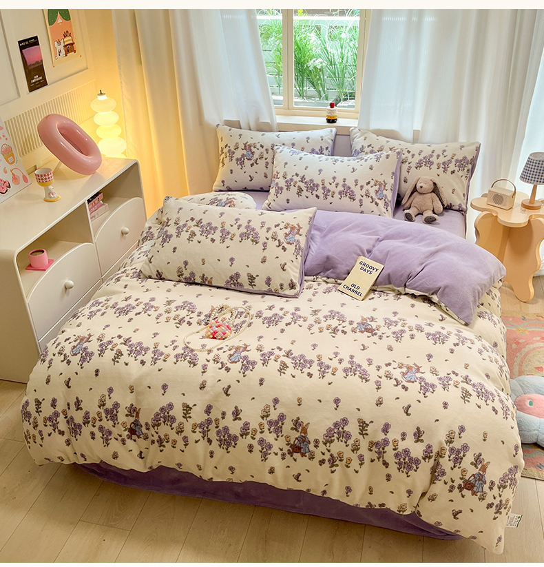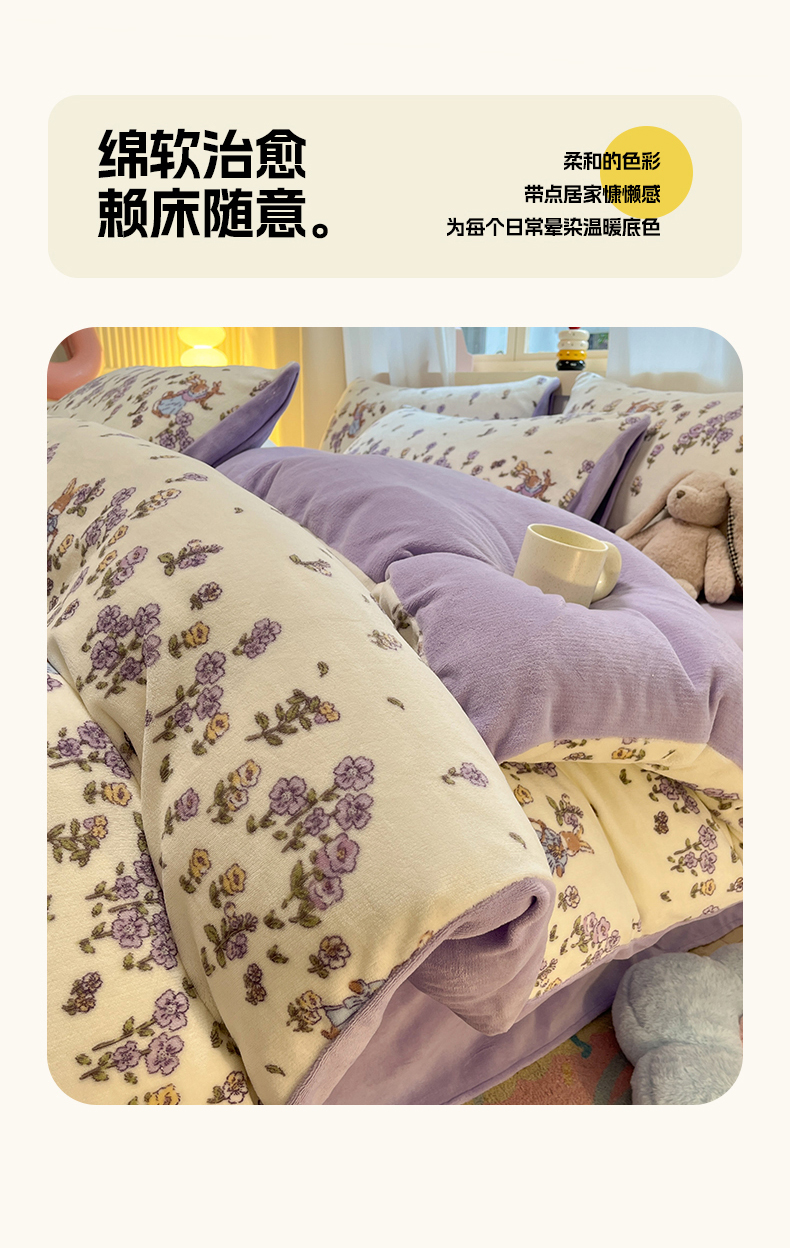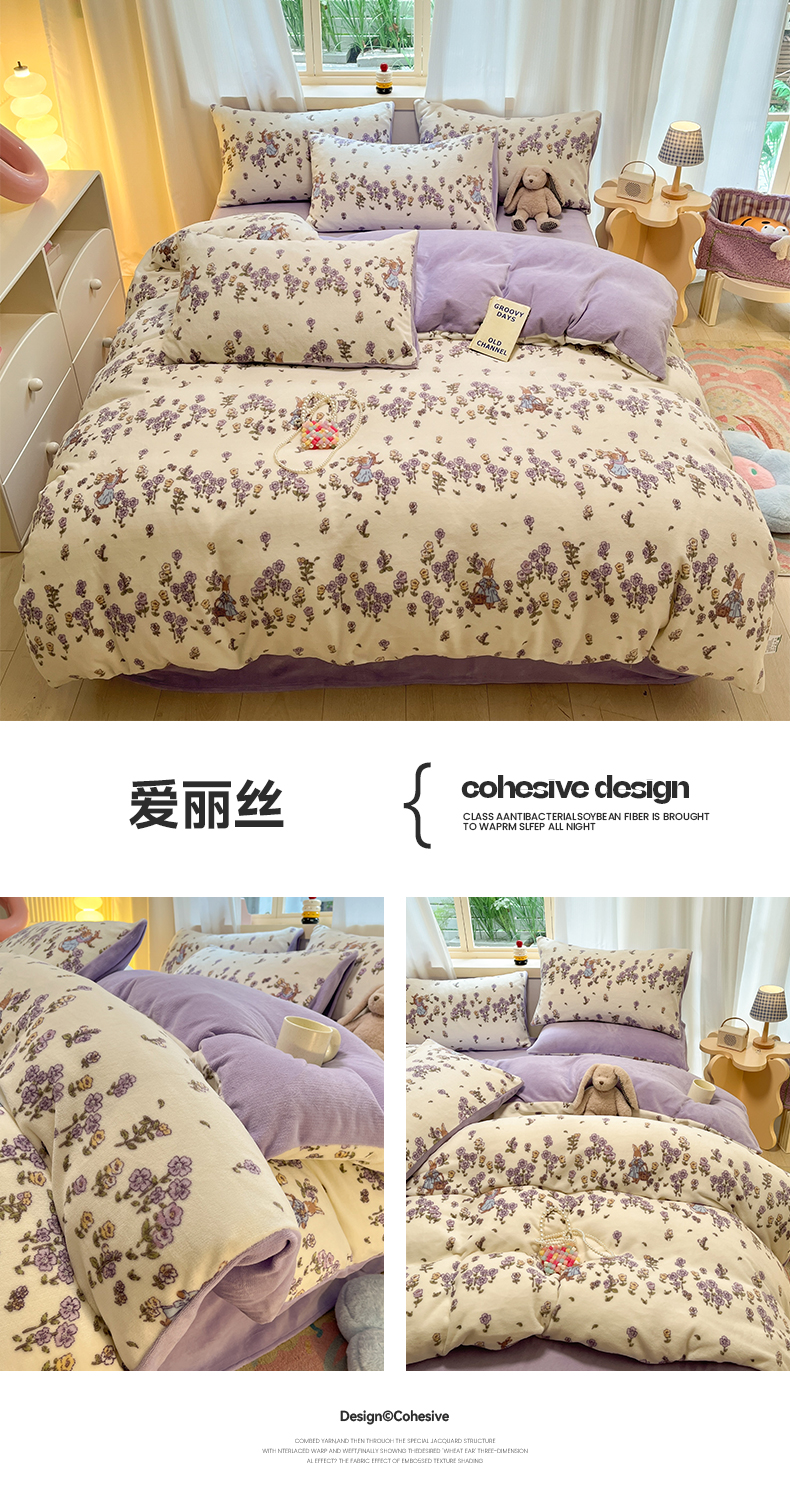 当前位置: 91家纺网 > 商品网购 > 床品套件 > 四件套 > 牛奶绒四件套 > 摩妮卡 2026新款小清新牛奶绒印花四件套床单款床笠单被套场景2 爱丽丝