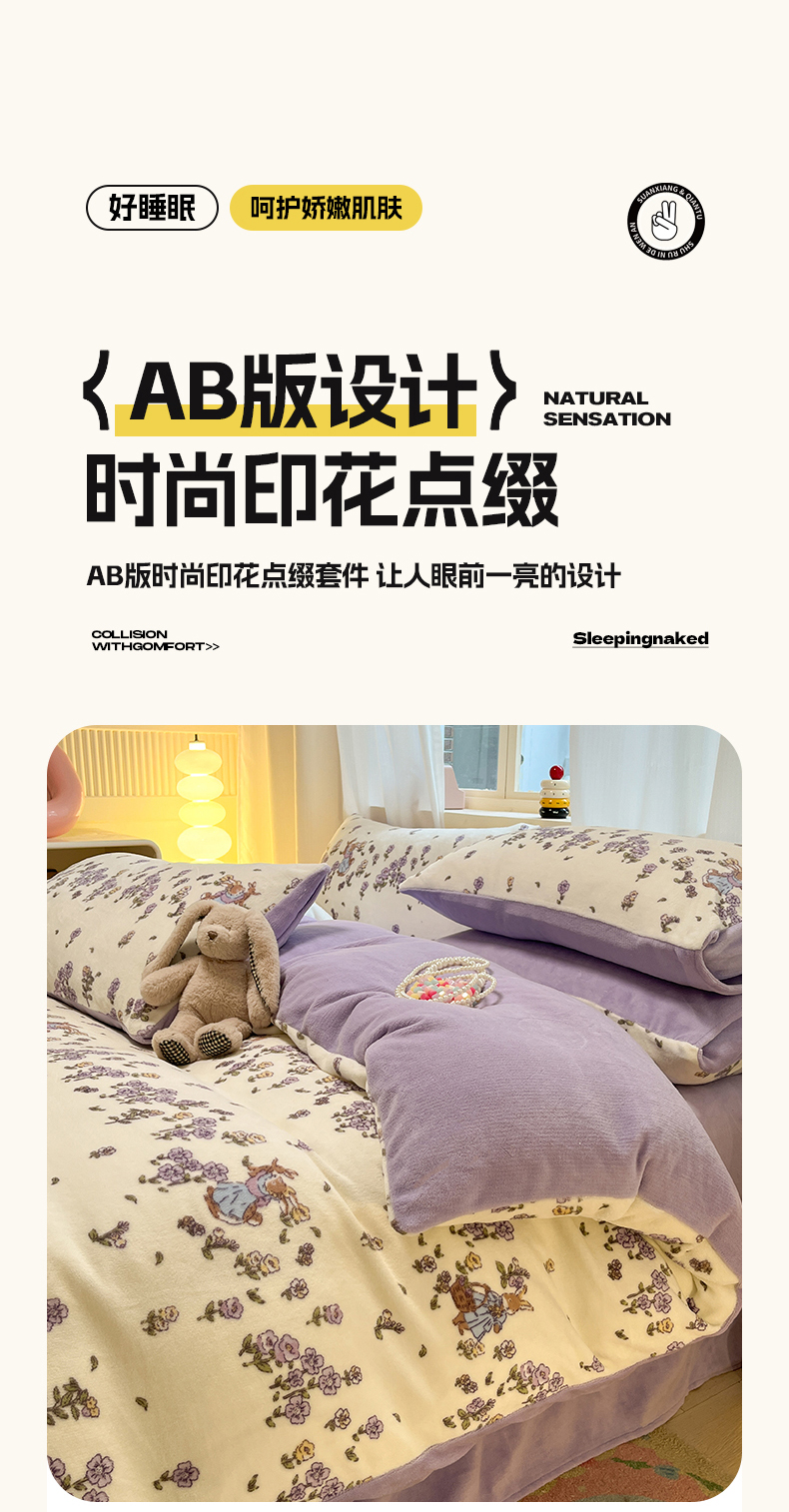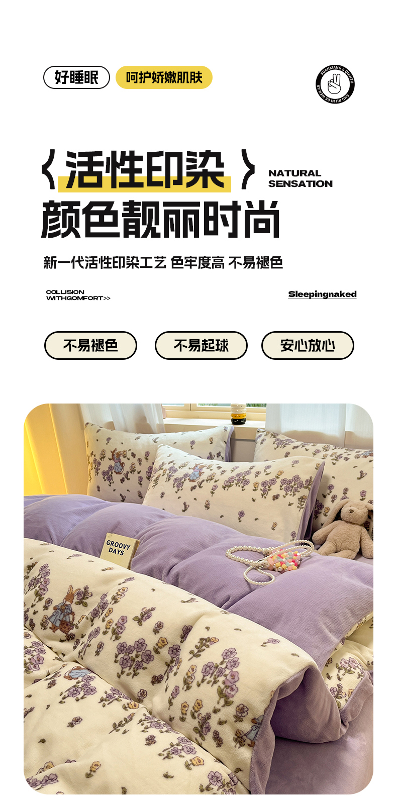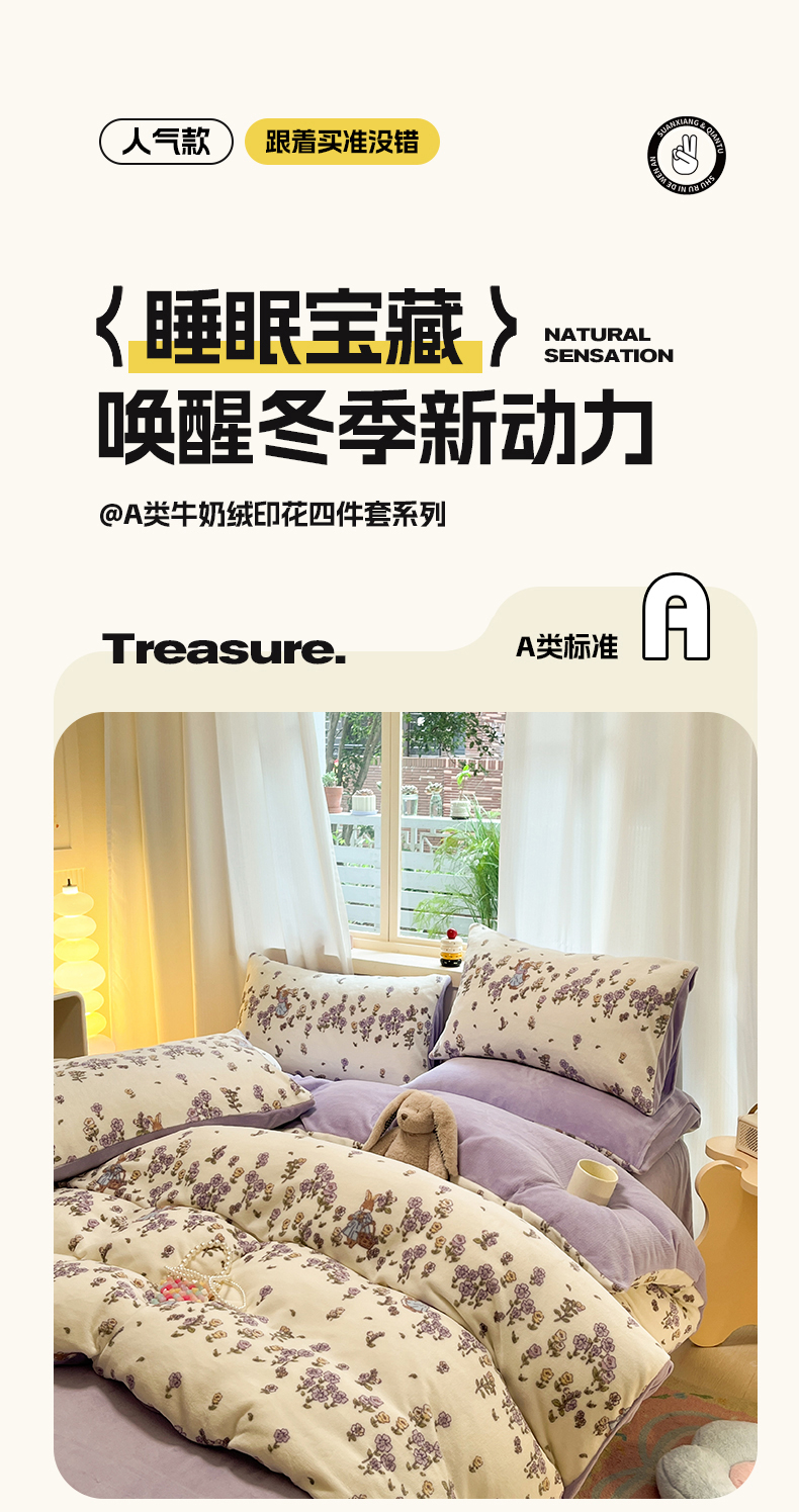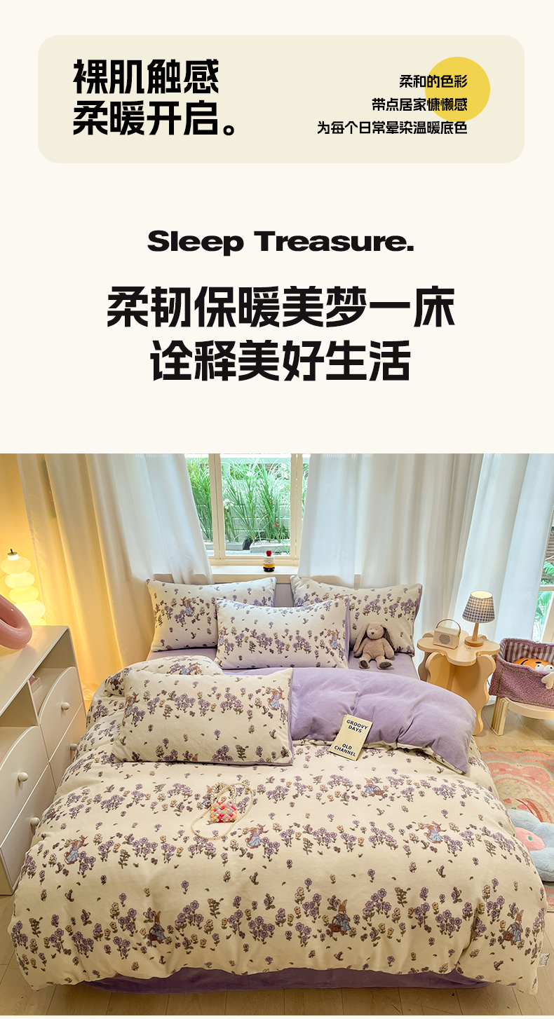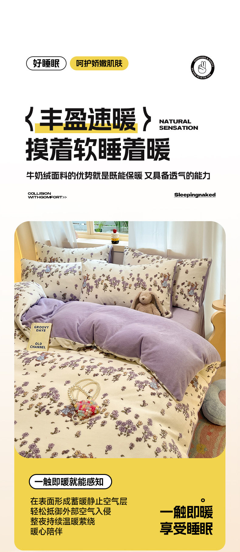 当前位置: 91家纺网 > 商品网购 > 床品套件 > 四件套 > 牛奶绒四件套 > 摩妮卡 2026新款小清新牛奶绒印花四件套床单款床笠单被套场景2 爱丽丝