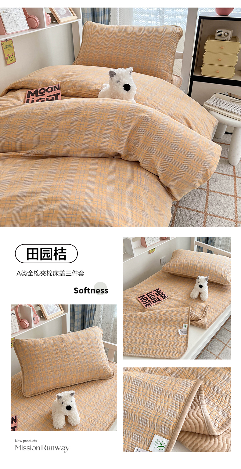 商品名称:沐纯家居 2024新款开学季(A类全棉水洗棉,棉加绒)床盖三件套 田园桔