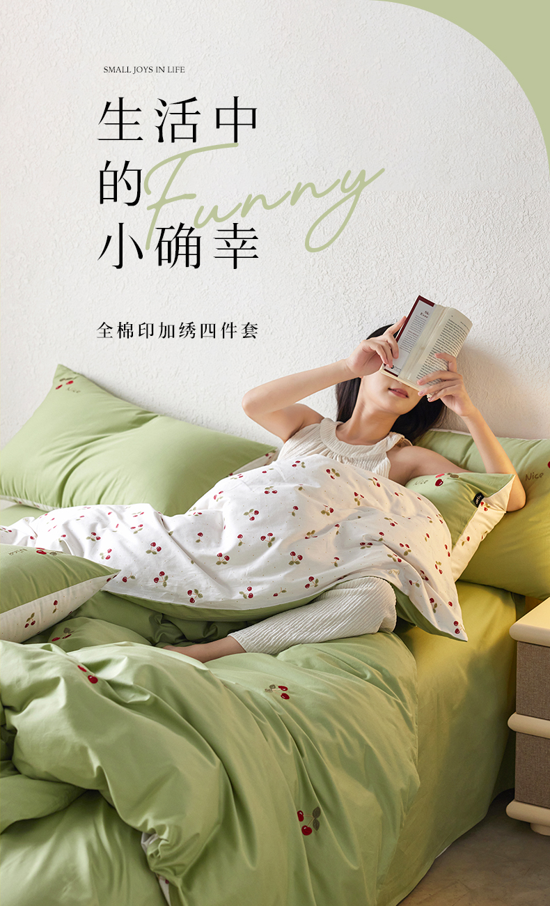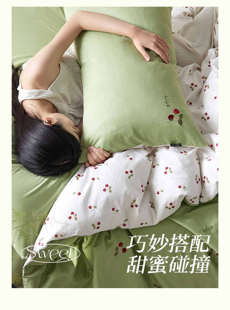 当前位置: 91家纺网 > 商品网购 > 床品套件 > 四件套 > 全棉普通四件套 > 禾时 2024新款爆品全棉纯棉印花刺绣四件套学生宿舍三件套卡通小清新 樱红枝绿-花卉系