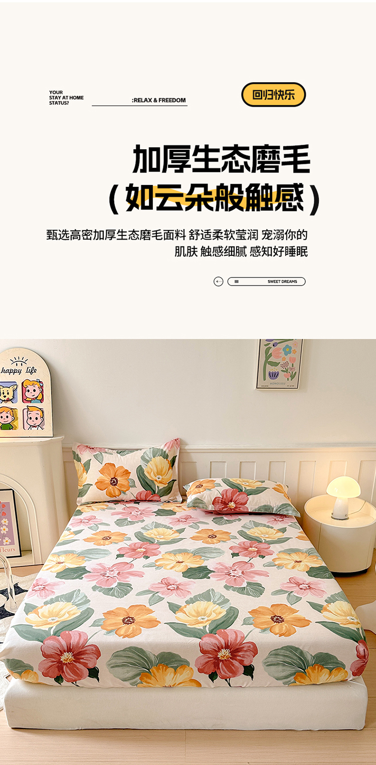 商品名称:2025新款加厚生态磨毛单床笠 梦若菲