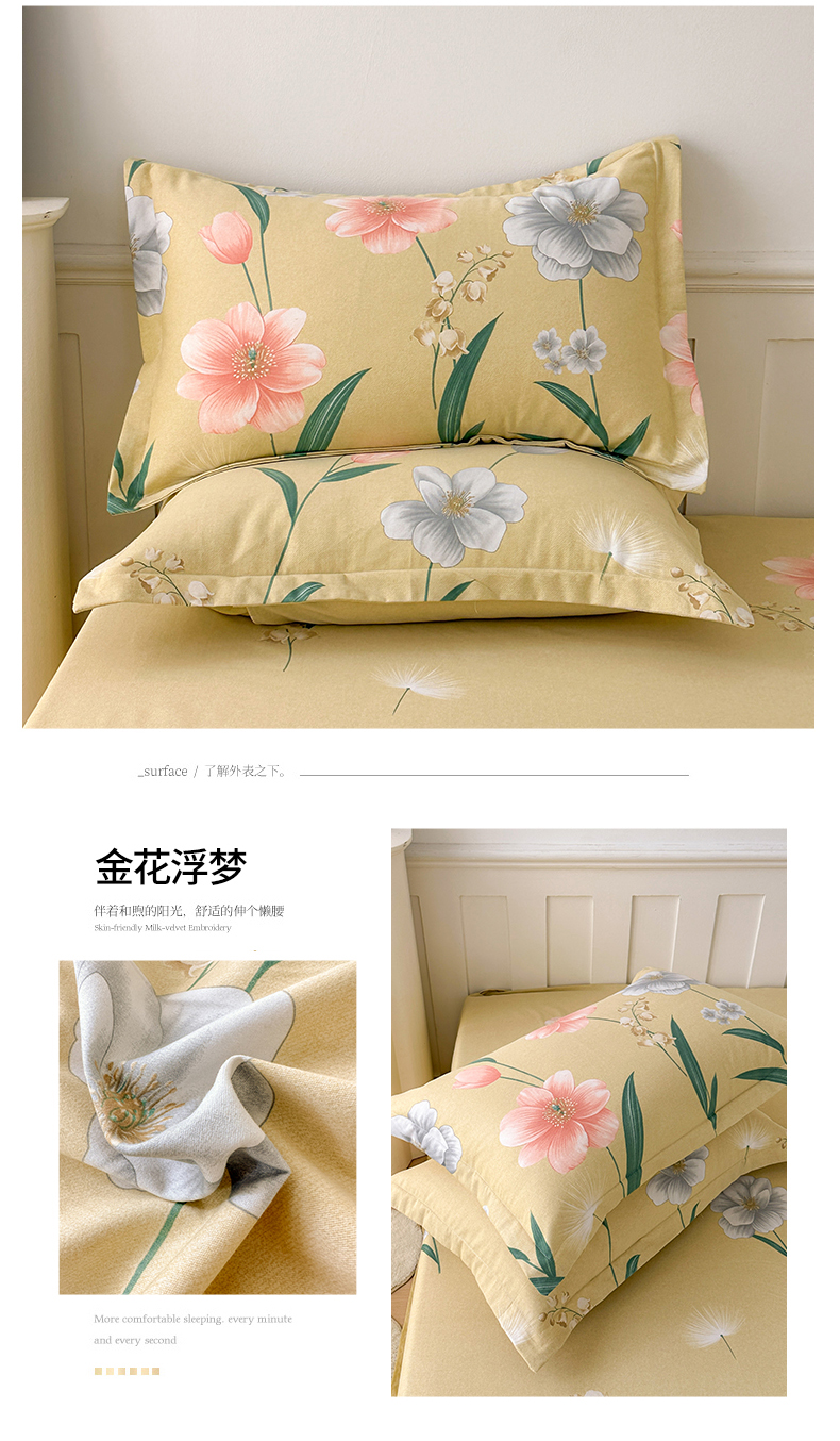 商品名称:2025新款加厚生态磨毛单枕套 金花浮梦