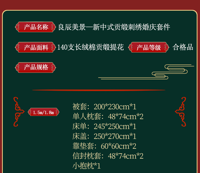 当前位置: 91家纺网 > 商品网购 > 床品套件 > 四件套 > 长绒棉四件套 > 2025新款长绒棉长绒棉贡缎提花款新中式古典韵味精美刺绣婚庆四件套多件套 良辰美景