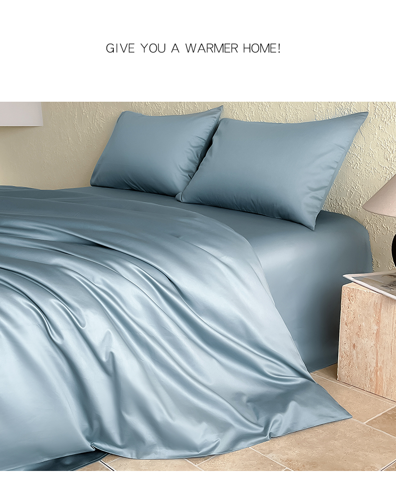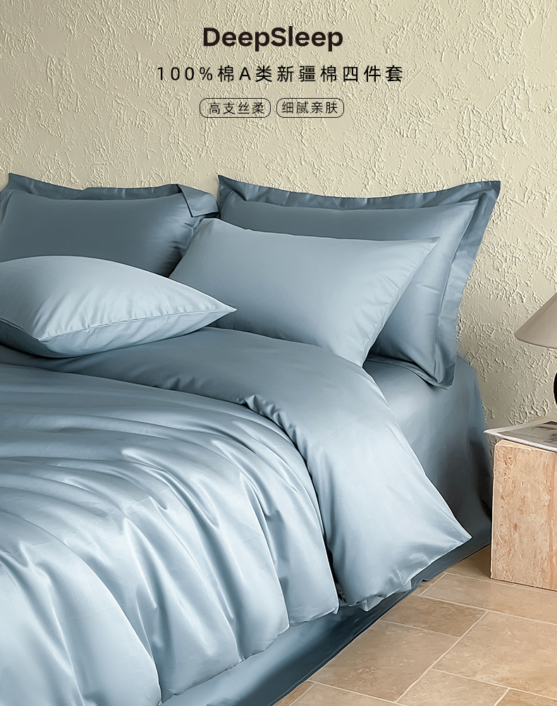 Mr.pig猪先生水洗棉 2024新品A类100全棉高支高密贡缎新疆长绒棉四件套纯棉床单被套学生宿舍三件套枕套床笠床上用品 清澈蓝