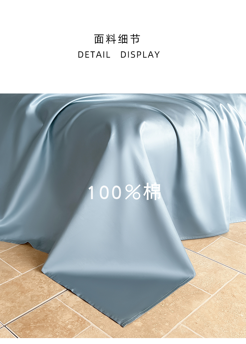 商品名称:Mr.pig猪先生水洗棉 2024新品A类100全棉高支高密贡缎新疆长绒棉四件套纯棉床单被套学生宿舍三件套枕套床笠床上用品 清澈蓝