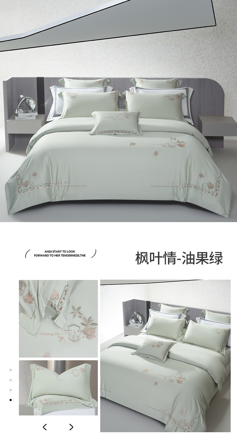 商品名称:2025新款磨毛绣花四件套-枫叶情 枫叶情-油果绿