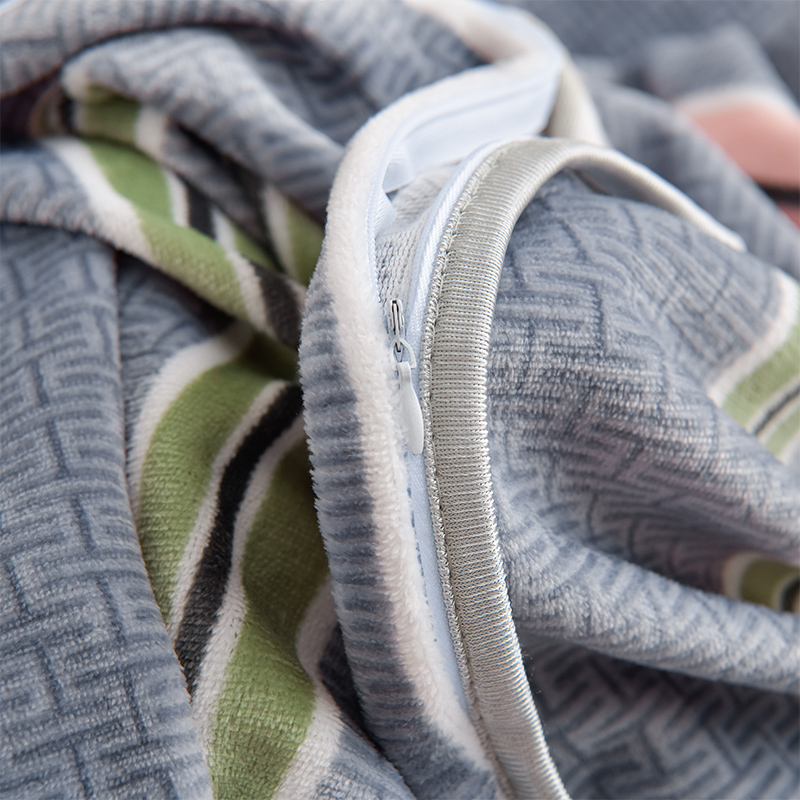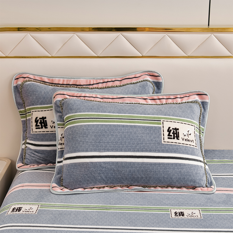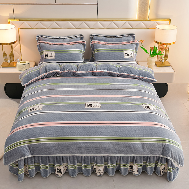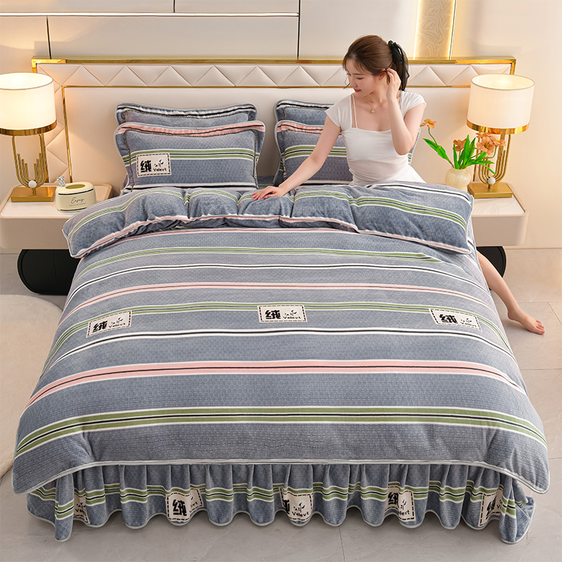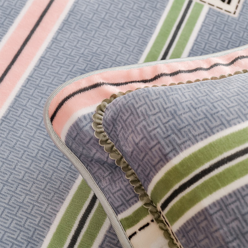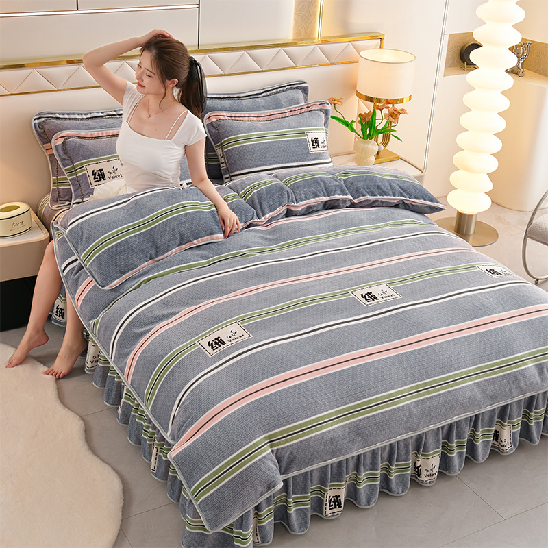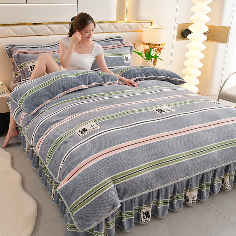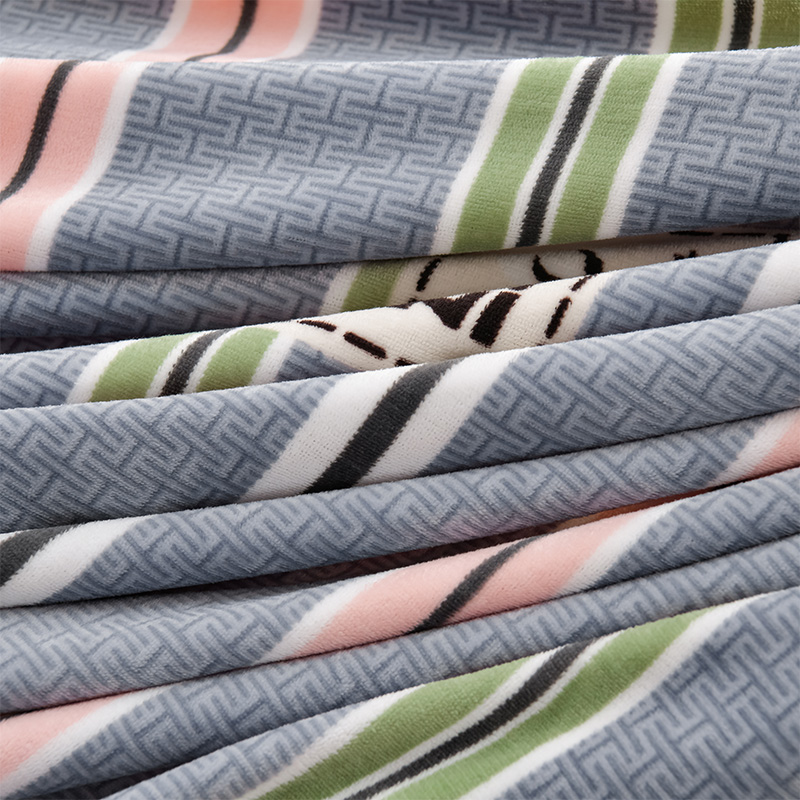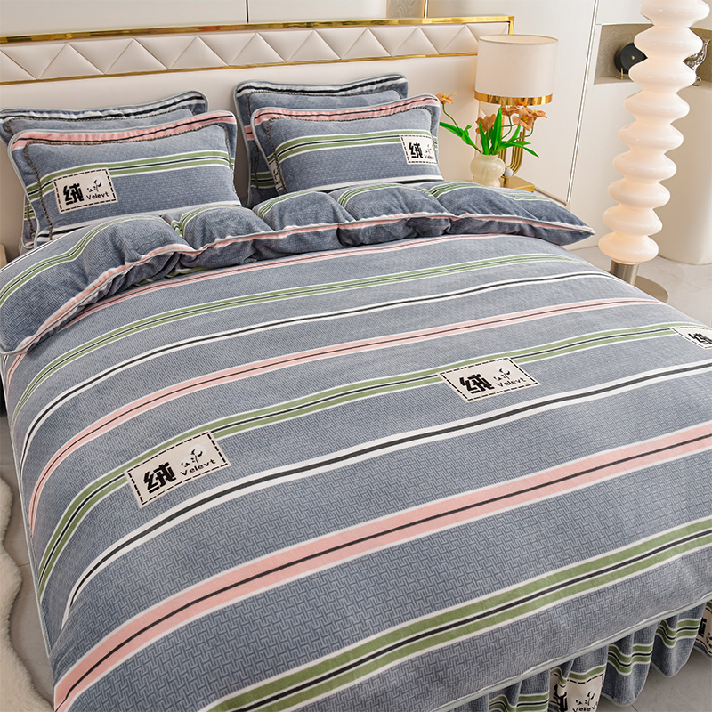 爱洛家纺 2024新款高克重牛奶绒印花四件套 彩色条纹