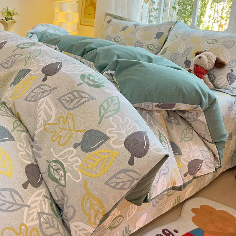 商品名称:2024新款全棉印花磨毛系列四件套 叶雨