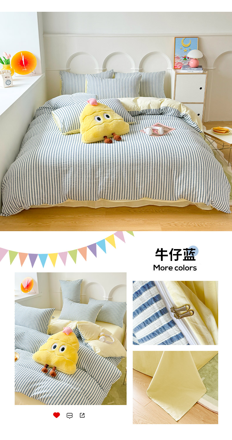 (总)千朵 2025新款全棉纯棉色织提花水洗棉四件套 富士系列,富士果绿,富士灰,富士奶黄,富士浅兰,富士浅紫,富士森绿,富士雾兰