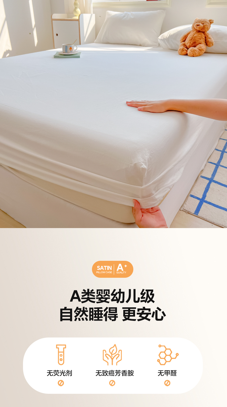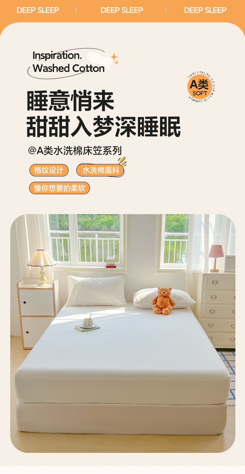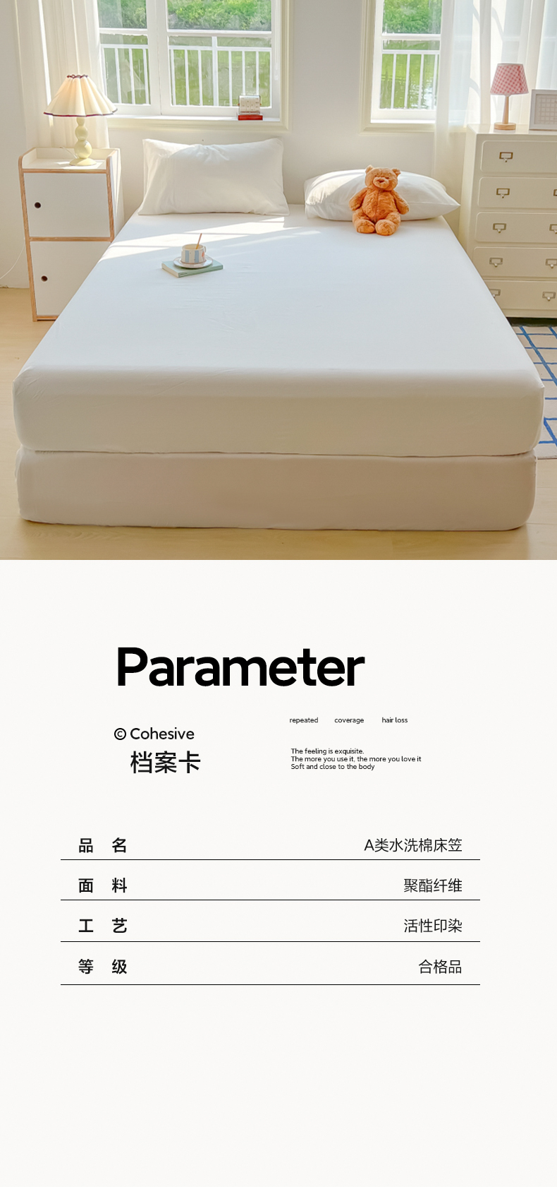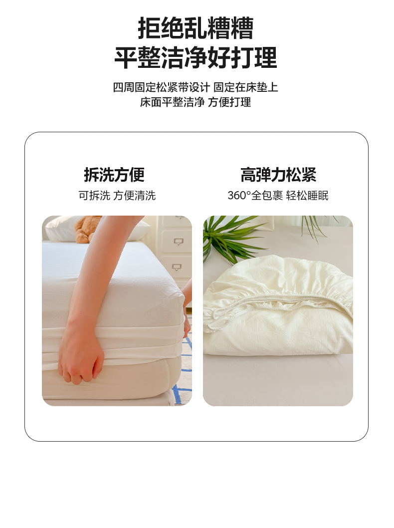 • 91家纺网 家纺一手货源 找家纺 韩巢家纺 2024新款A类纯色良品格子水洗棉床笠单件全包围防滑床单床罩保护套 A类本白-床笠