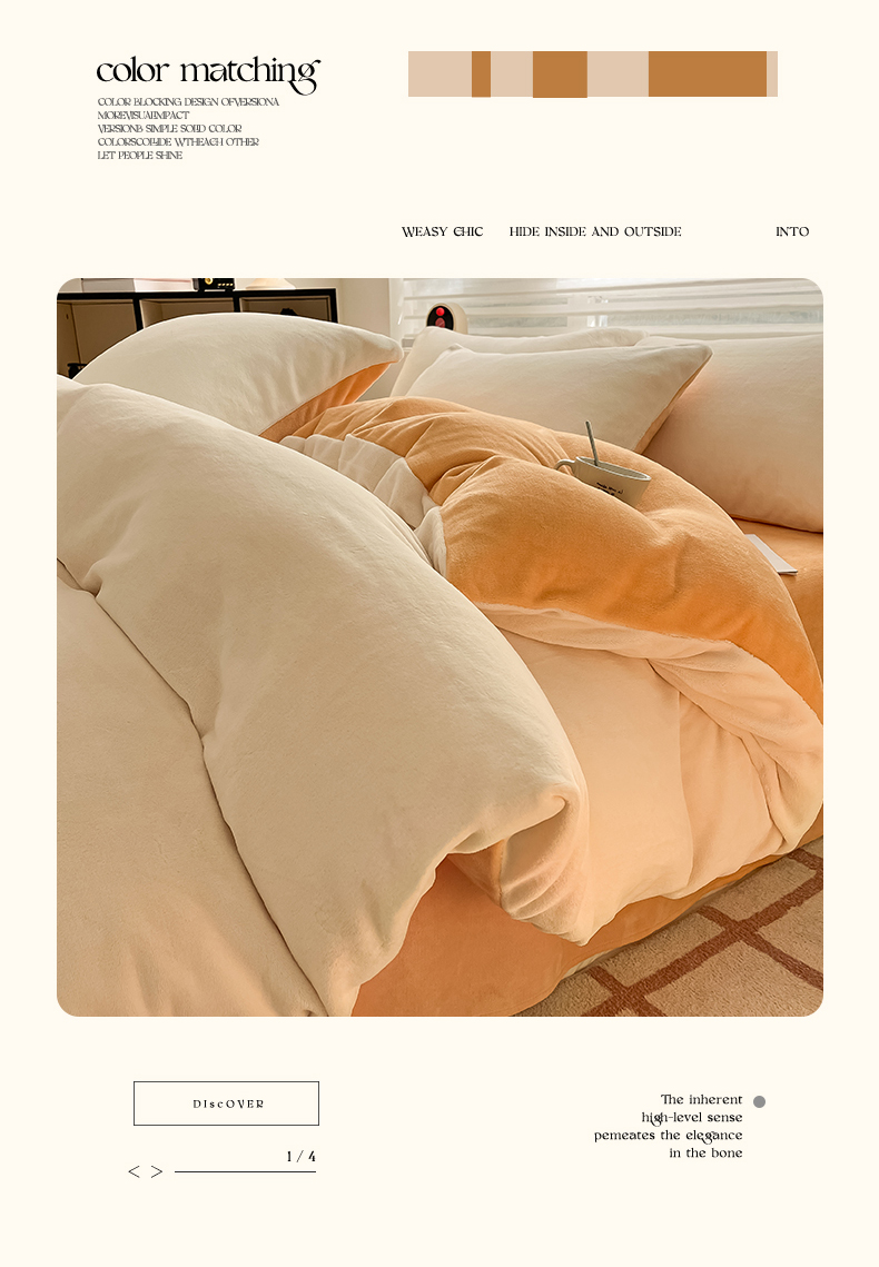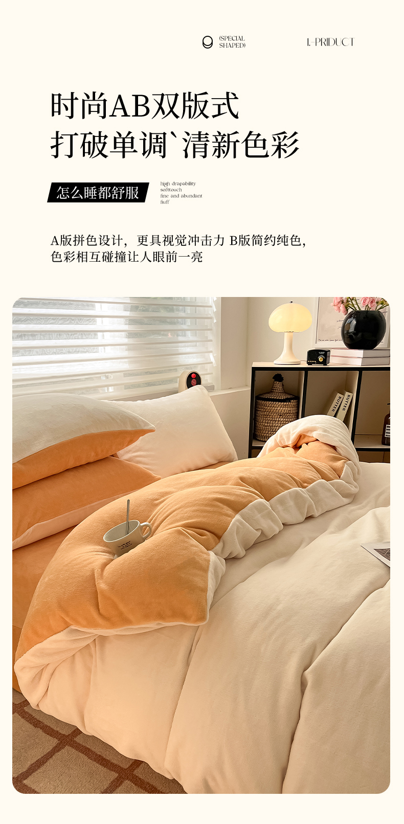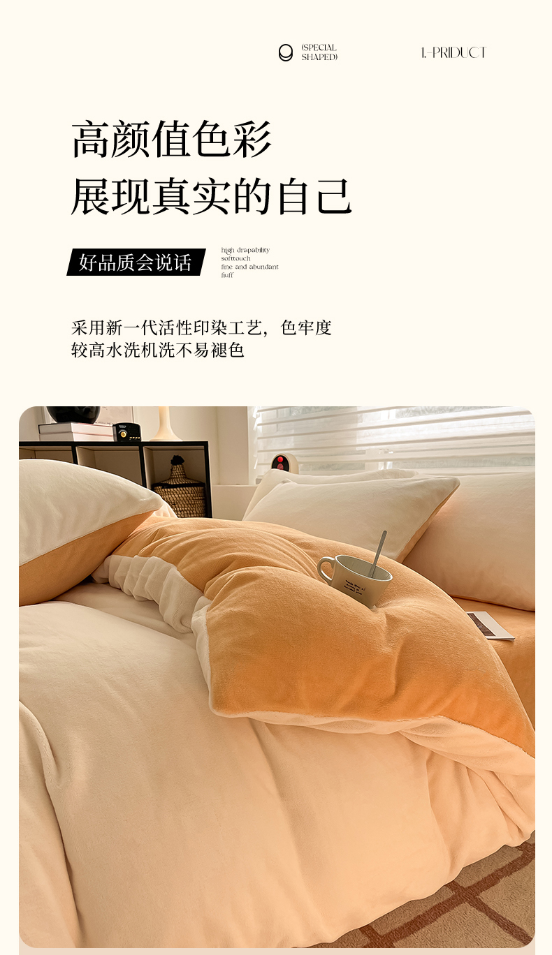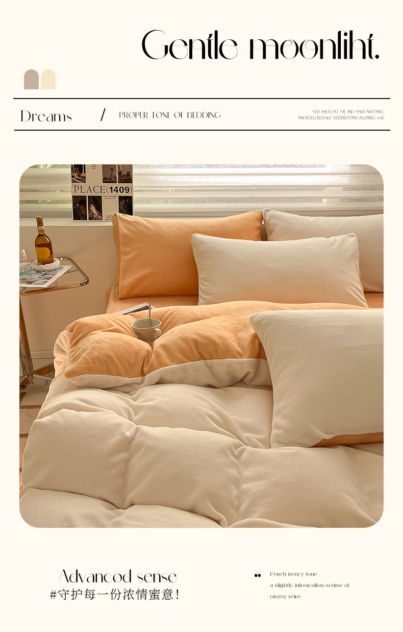 商品名称:绘萱 2025新款高克重纯色双拼牛奶绒四件套 奶油米橙