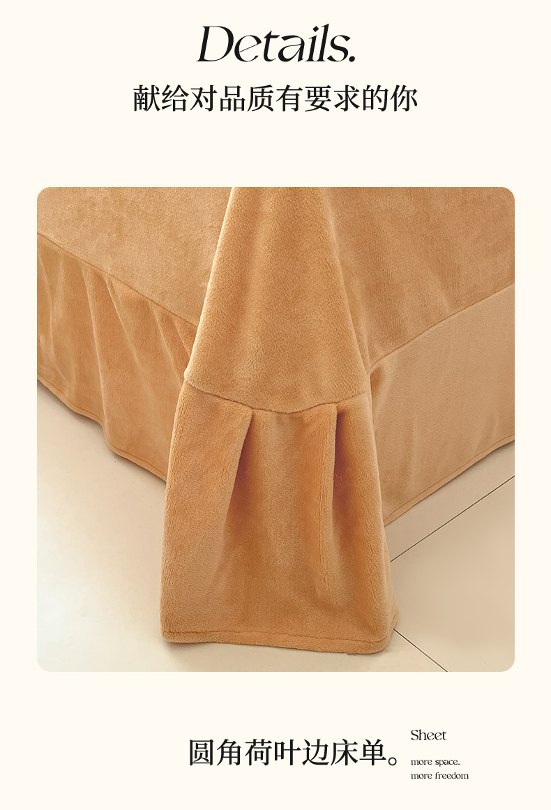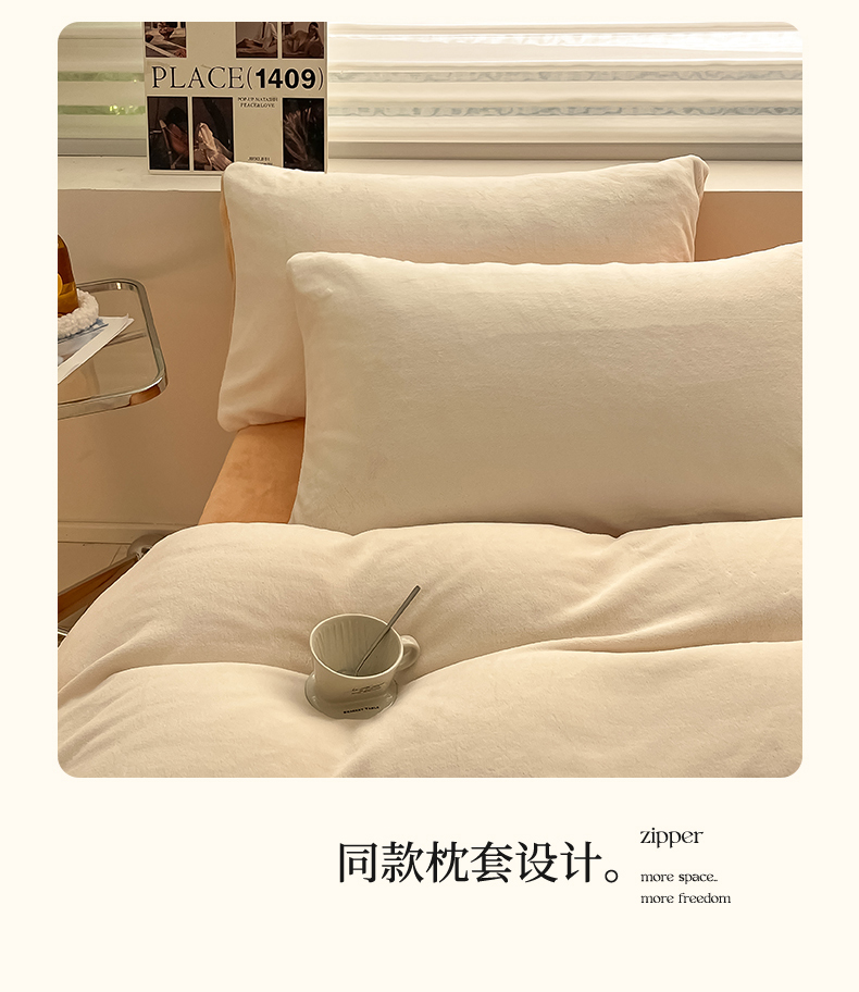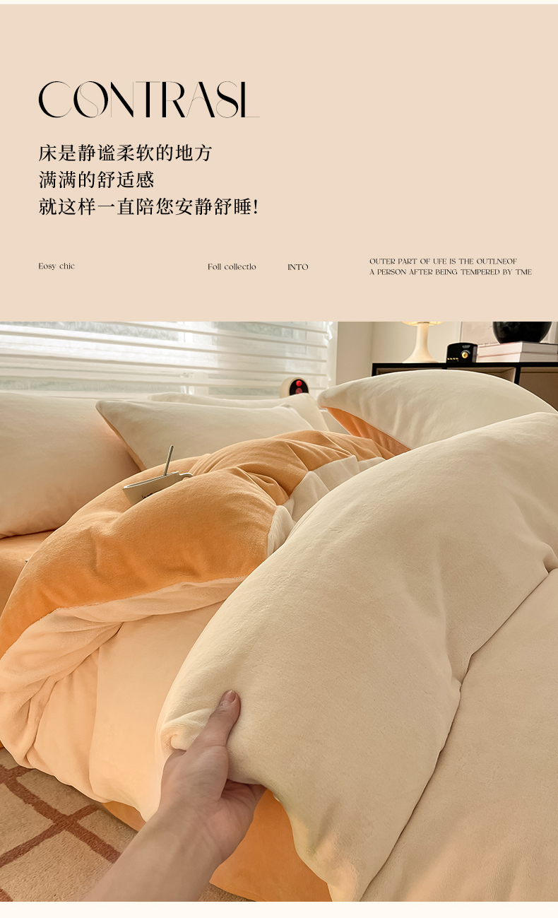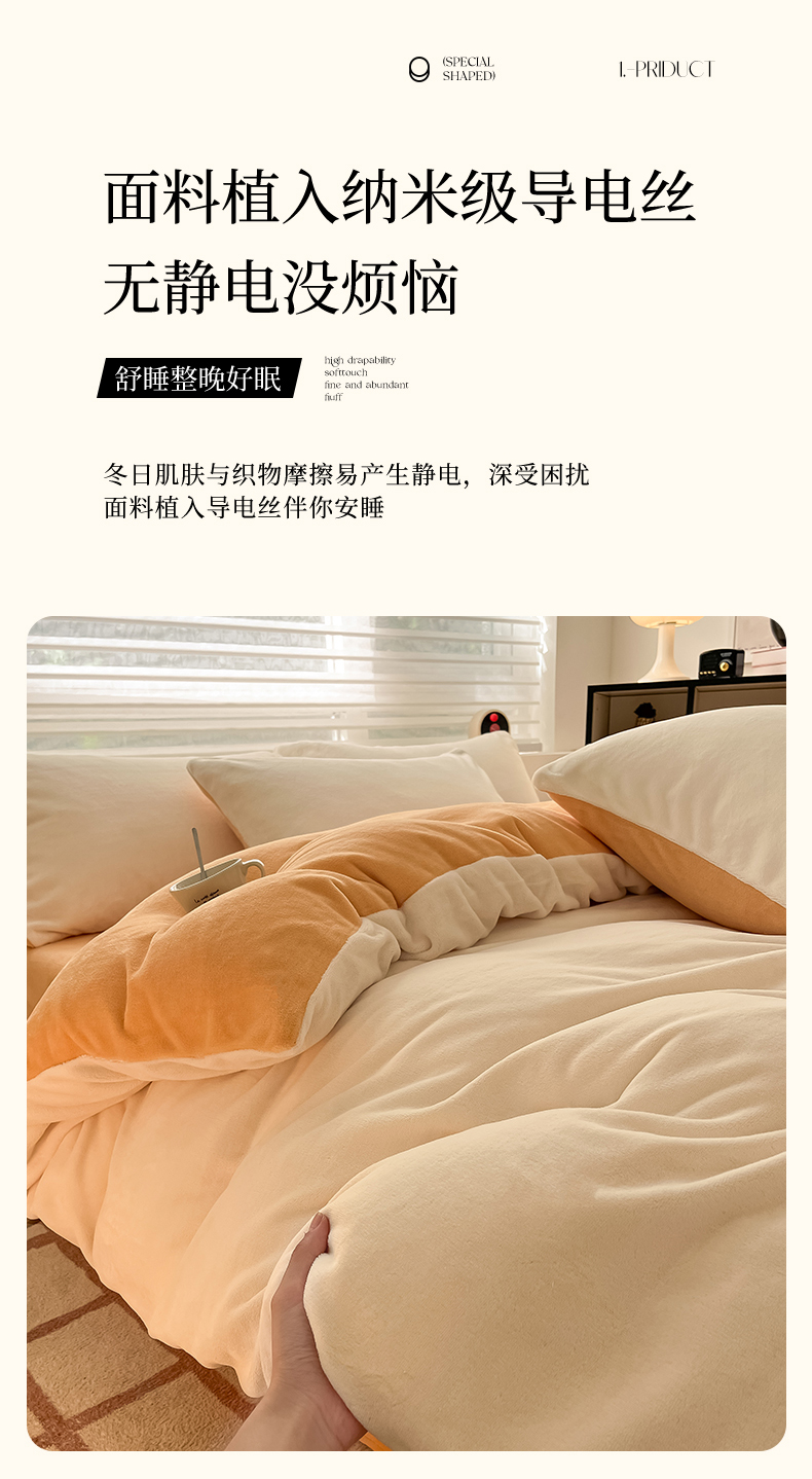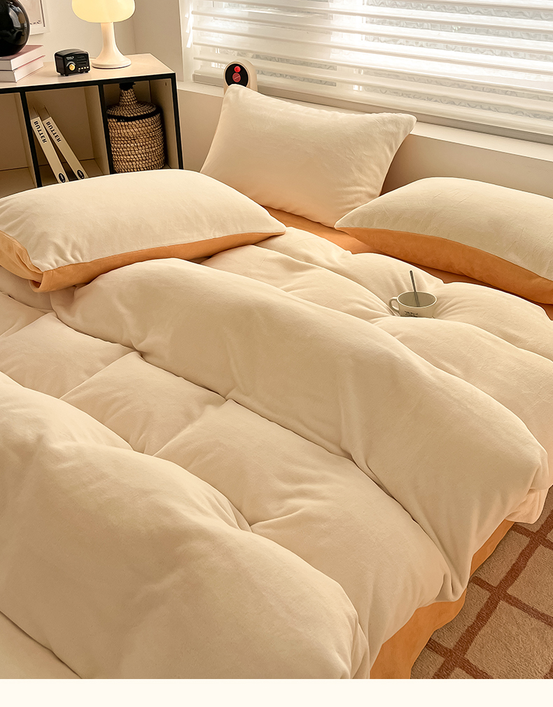 商品名称:绘萱 2025新款高克重纯色双拼牛奶绒四件套 奶油米橙