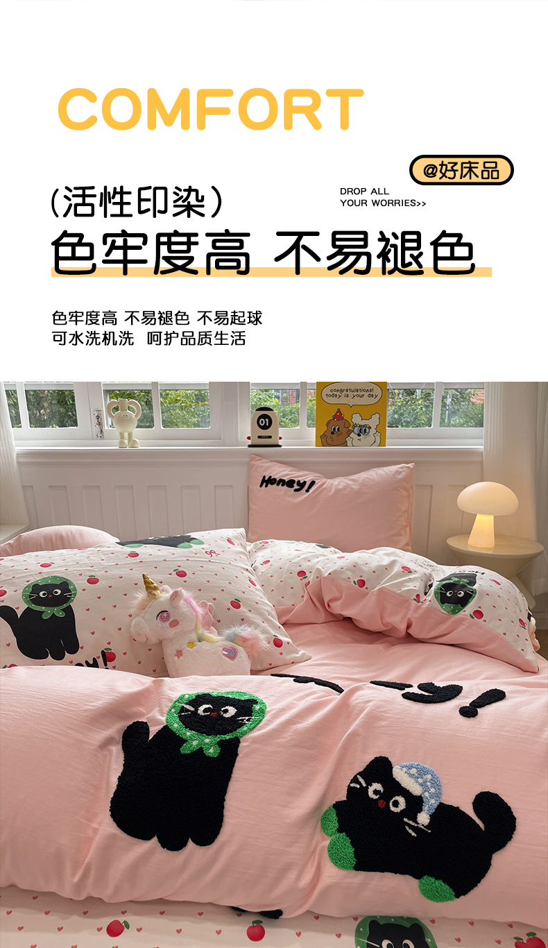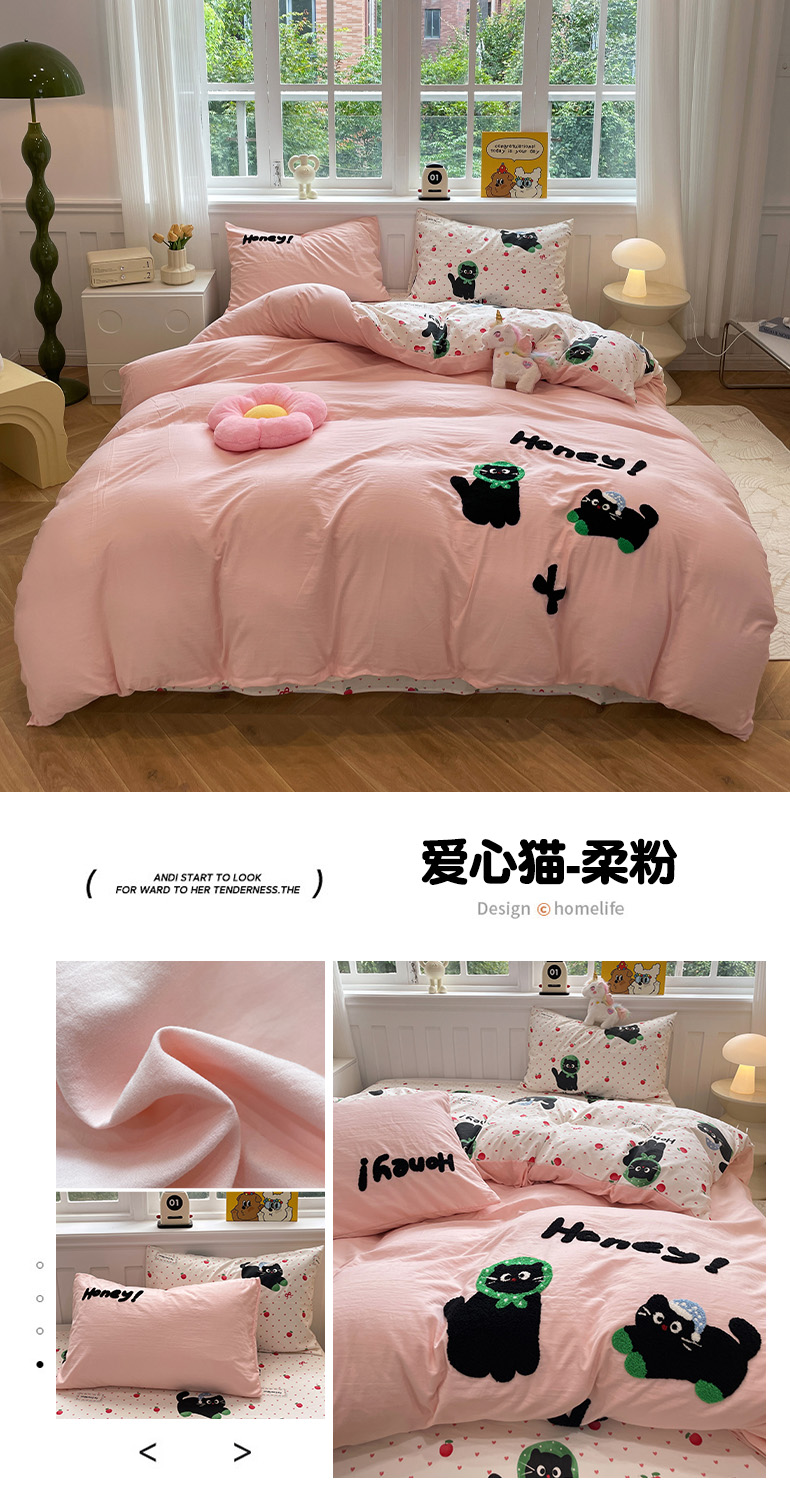 当前位置: 91家纺网 > 商品网购 > 床品套件 > 四件套 > 全棉普通四件套 > 奈颜 2024新款爆款超柔水洗皱皱棉四件套系列 爱心猫-柔粉