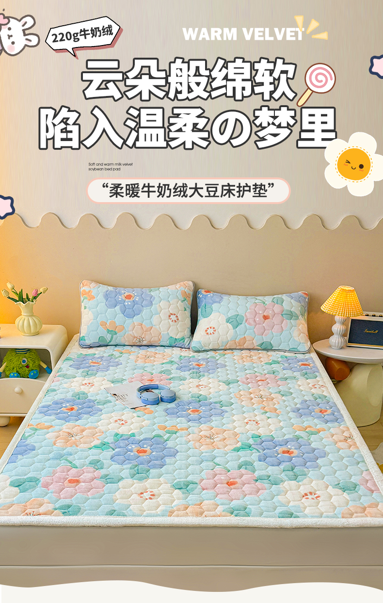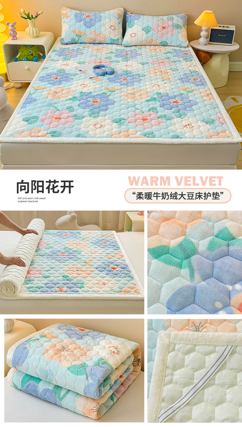 当前位置: 91家纺网 > 商品网购 > 床垫/床褥 > 普通床垫 > 伊人坊 2024新款牛奶绒印花大豆夹棉床护垫 向阳花开