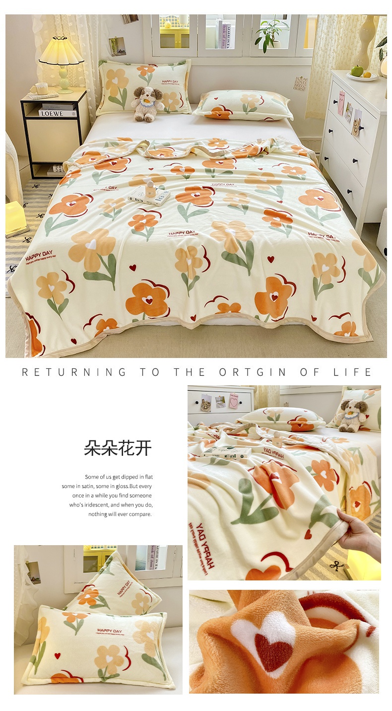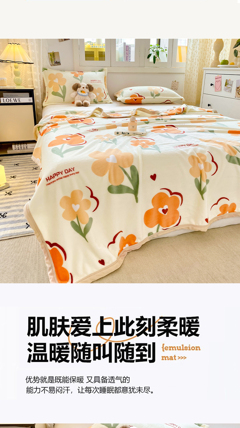 商品名称:楠沐家纺 2025新款双面牛奶绒多功能印花毛毯 小兰花