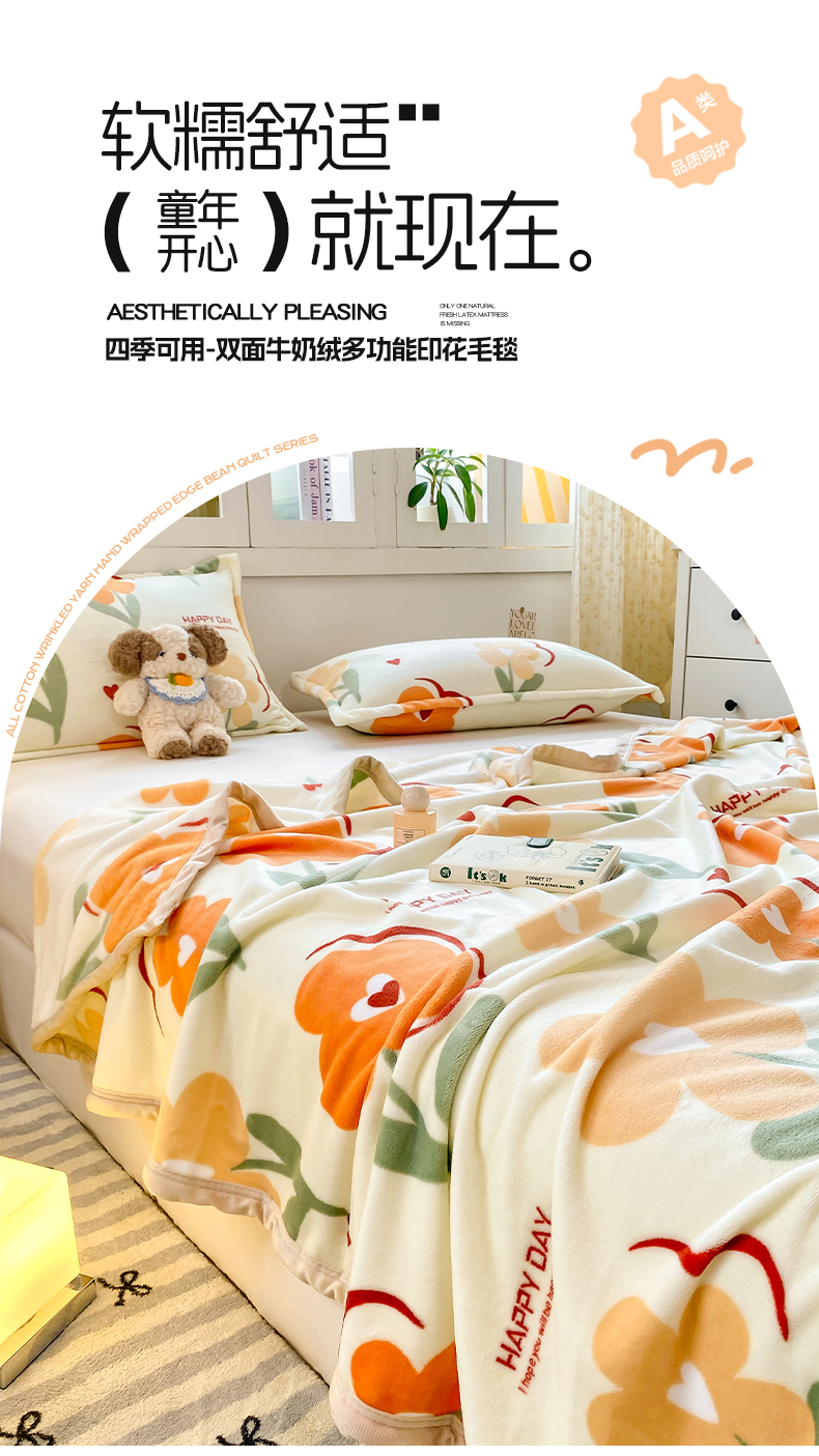 楠沐家纺 2025新款双面牛奶绒多功能印花毛毯 小兰花
