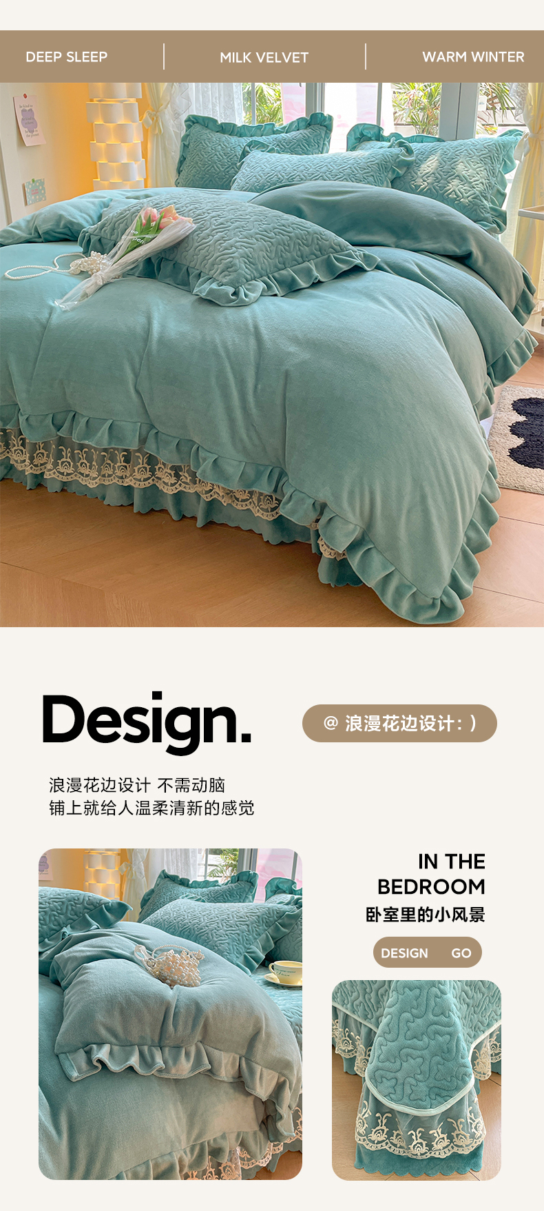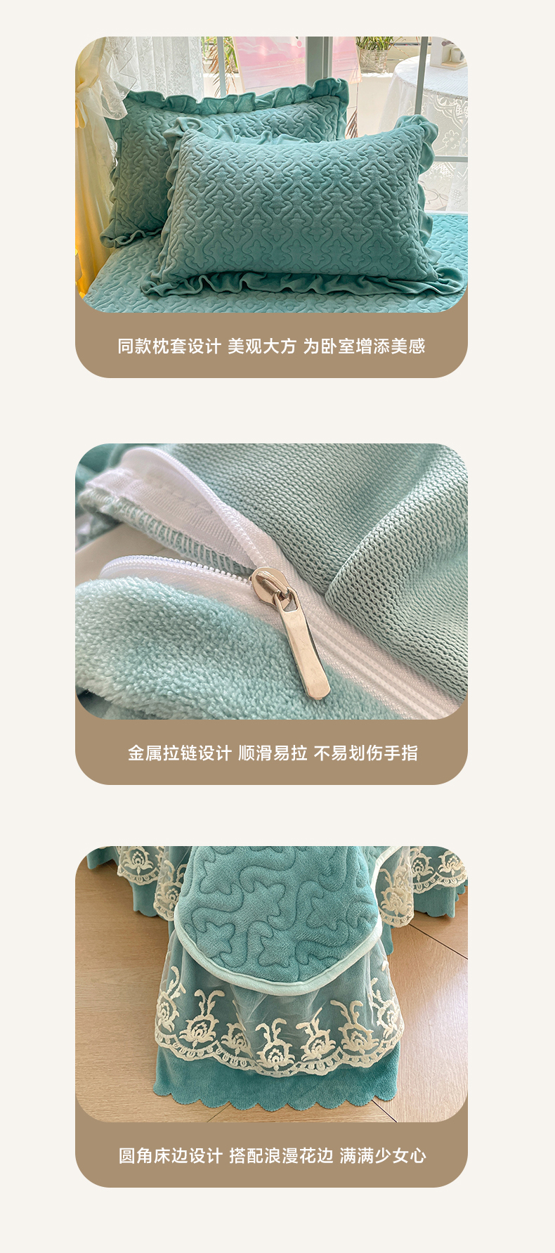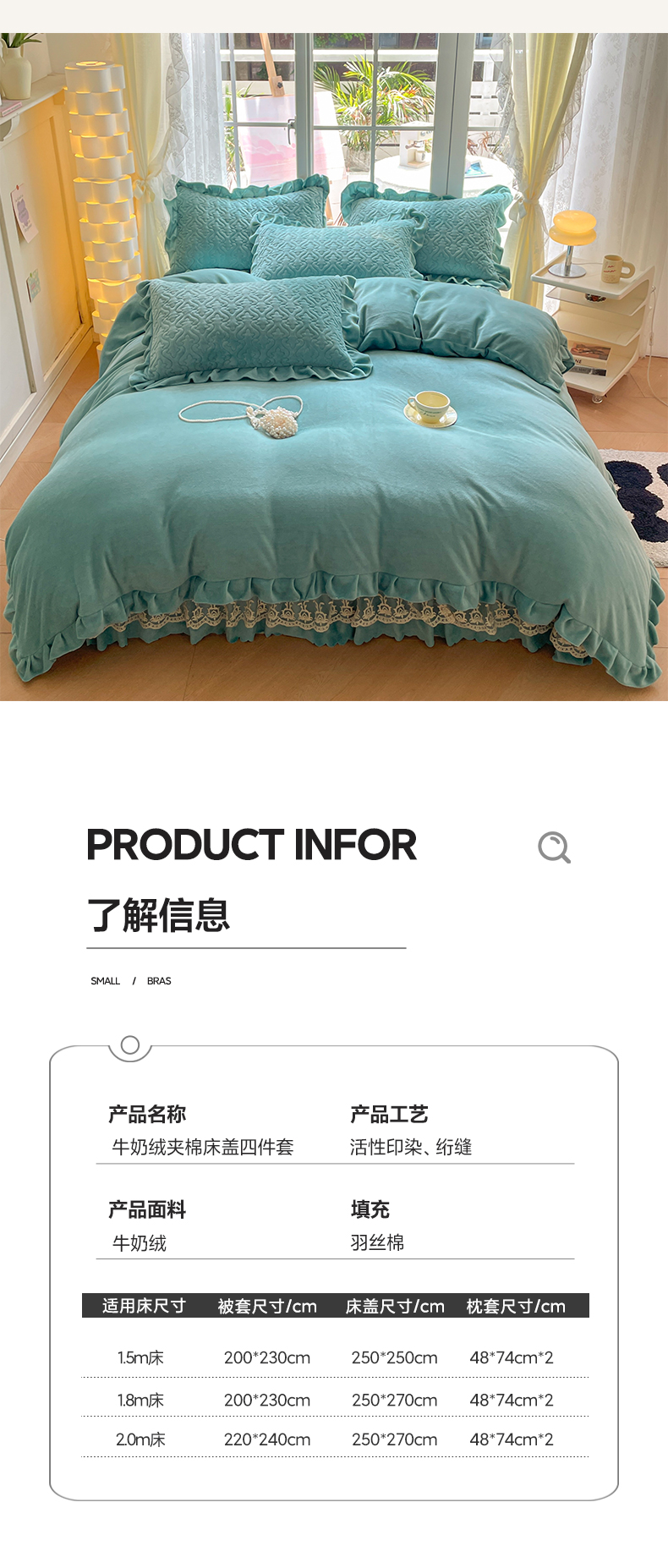 商品名称:畅畅家纺 2024新款冬季韩版花边蕾丝牛奶绒床盖四件套 繁星蓝