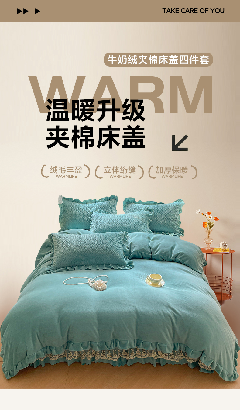 (总)畅畅家纺 2024新款高克重加厚保暖冬季牛奶绒纯色床盖款四件套,豆沙,灰色,天蓝,玉色,中国红
