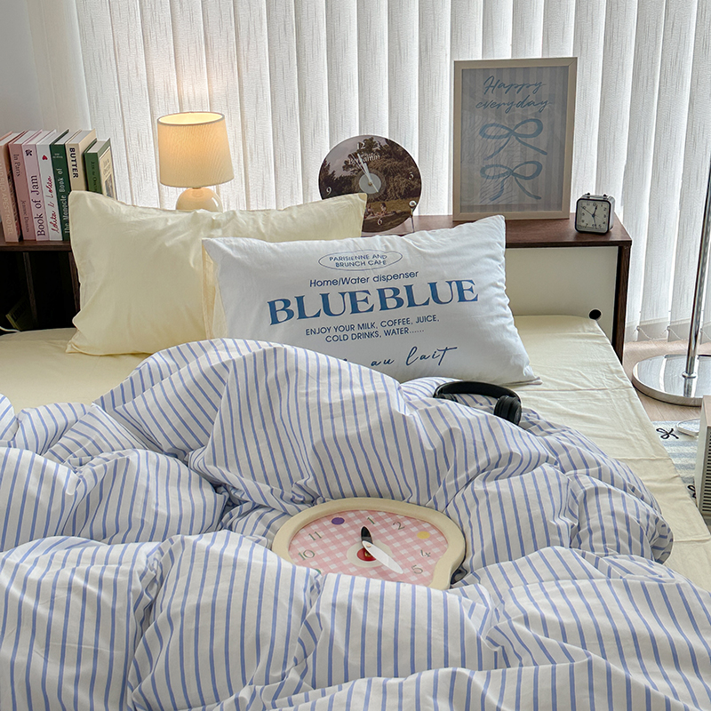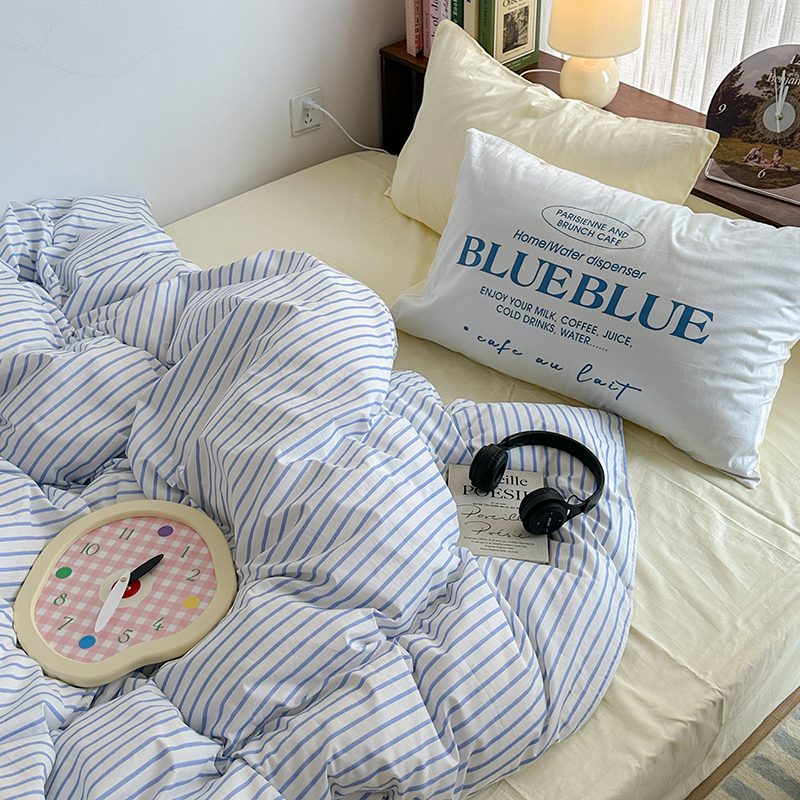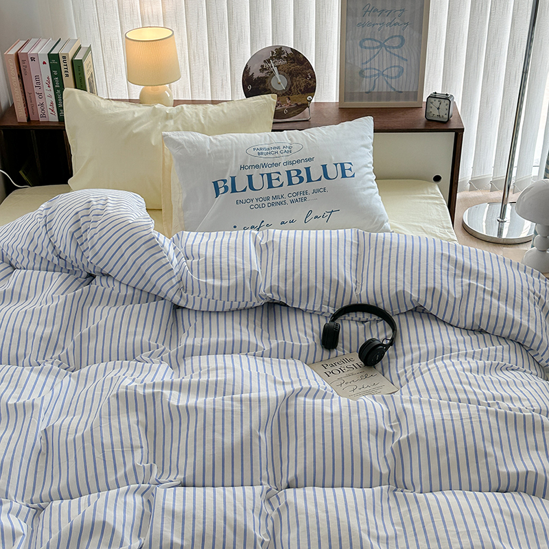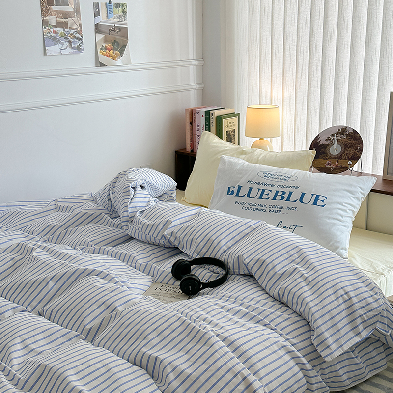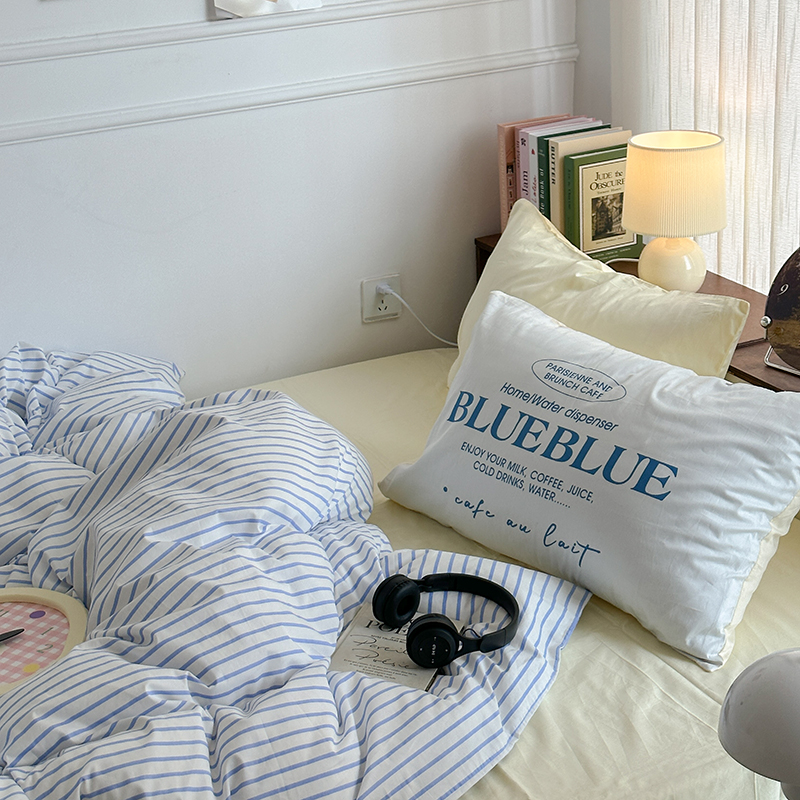 昔可家纺 2024新款竖条全棉四件套大版枕套系列 盐系蓝条纹