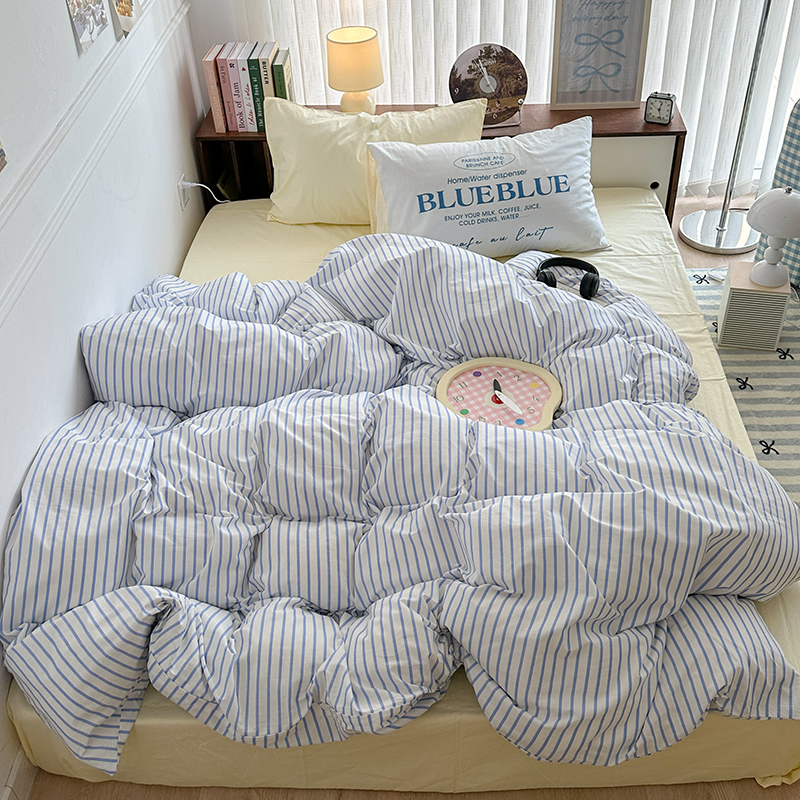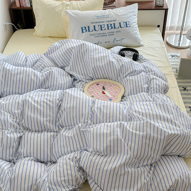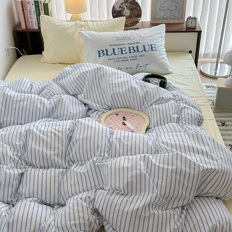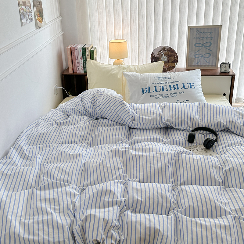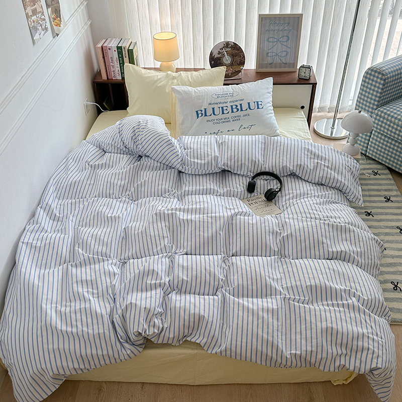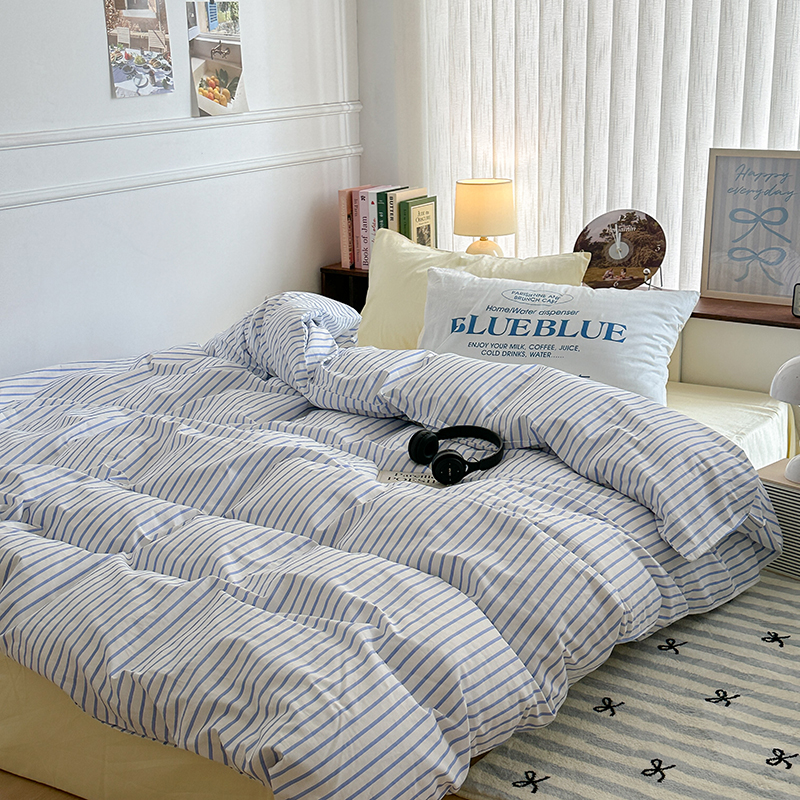 昔可家纺 2024新款竖条全棉四件套大版枕套系列 盐系蓝条纹