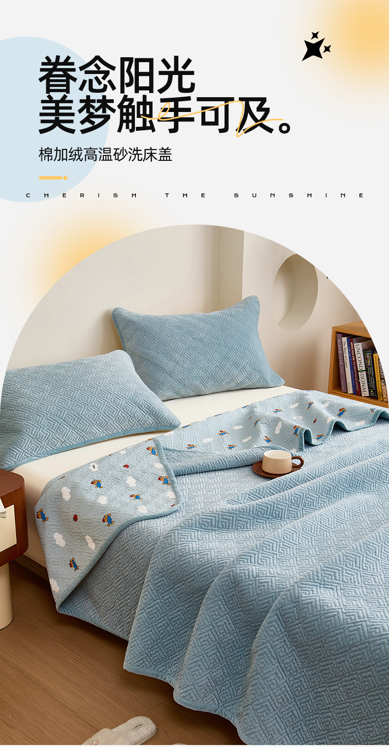 (总)美优兰 2025新款棉加绒高温砂洗夹棉单床盖 床盖单件,组合图仅供展示不可下单,暖阳-草绿,暖阳-豆绿,暖阳-粉黛,暖阳-灰色,暖阳-蓝色,暖阳-米黄,暖阳-米驼,暖阳-紫薯