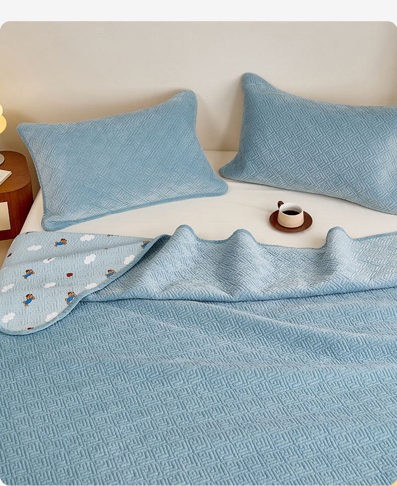 美优兰 2025秋冬新款棉加绒床盖单品床盖三件套 棉加绒蓝色