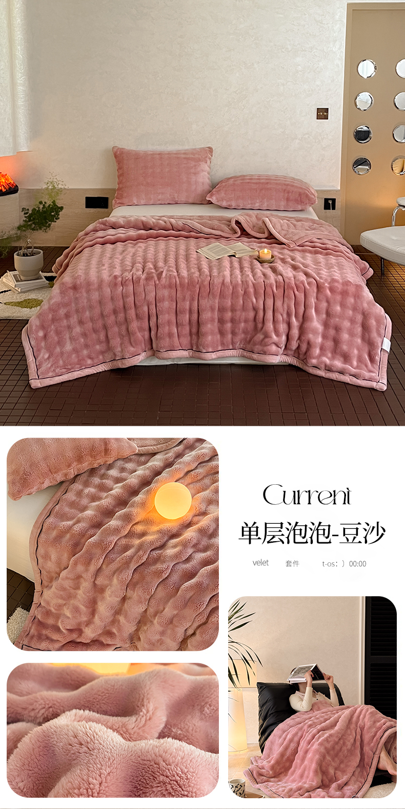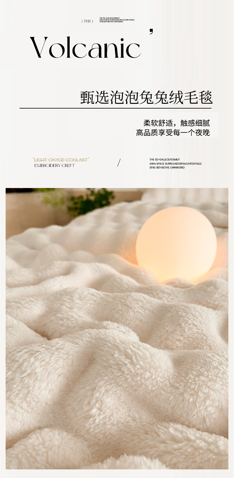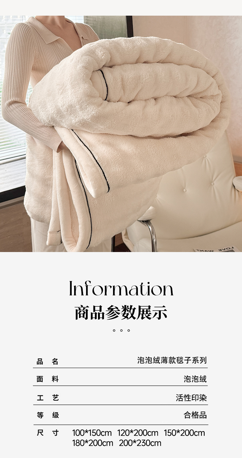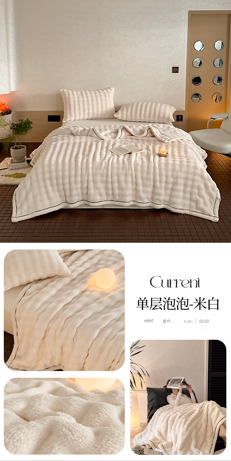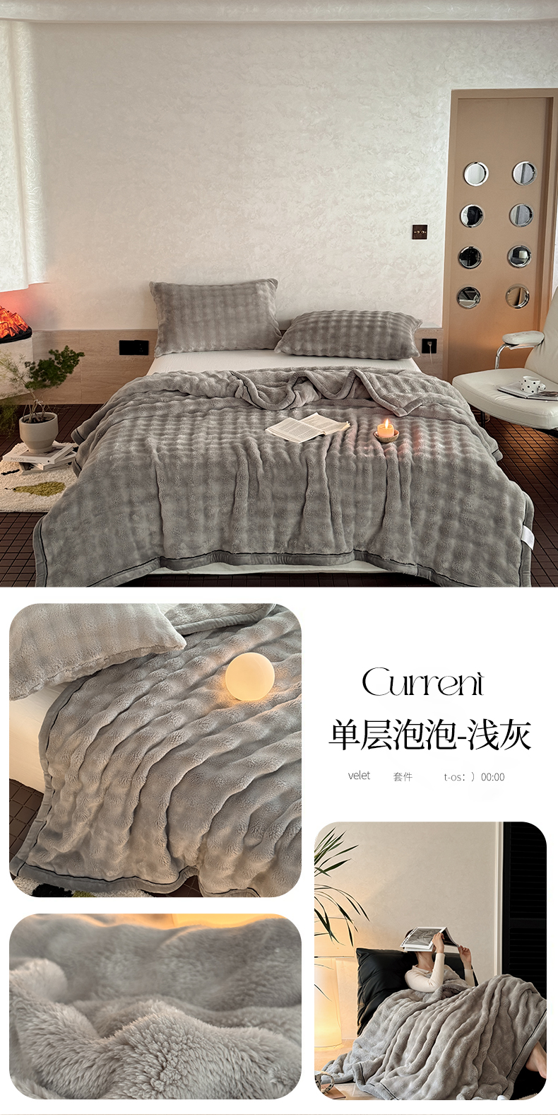 商品名称:(总)欧邦 新款仿兔毛泡泡绒牛奶绒包边单层毛毯(外贸供货)