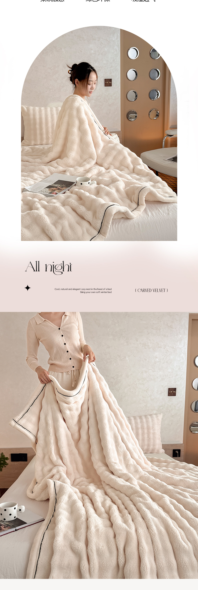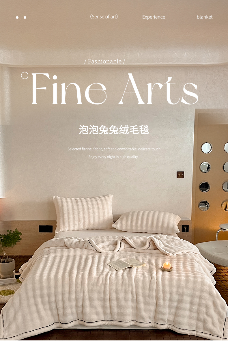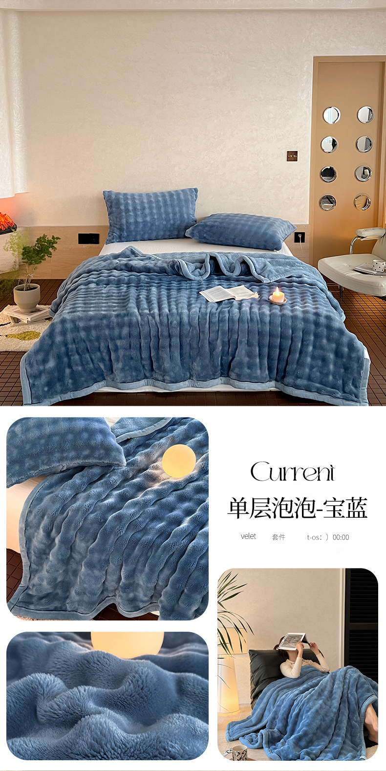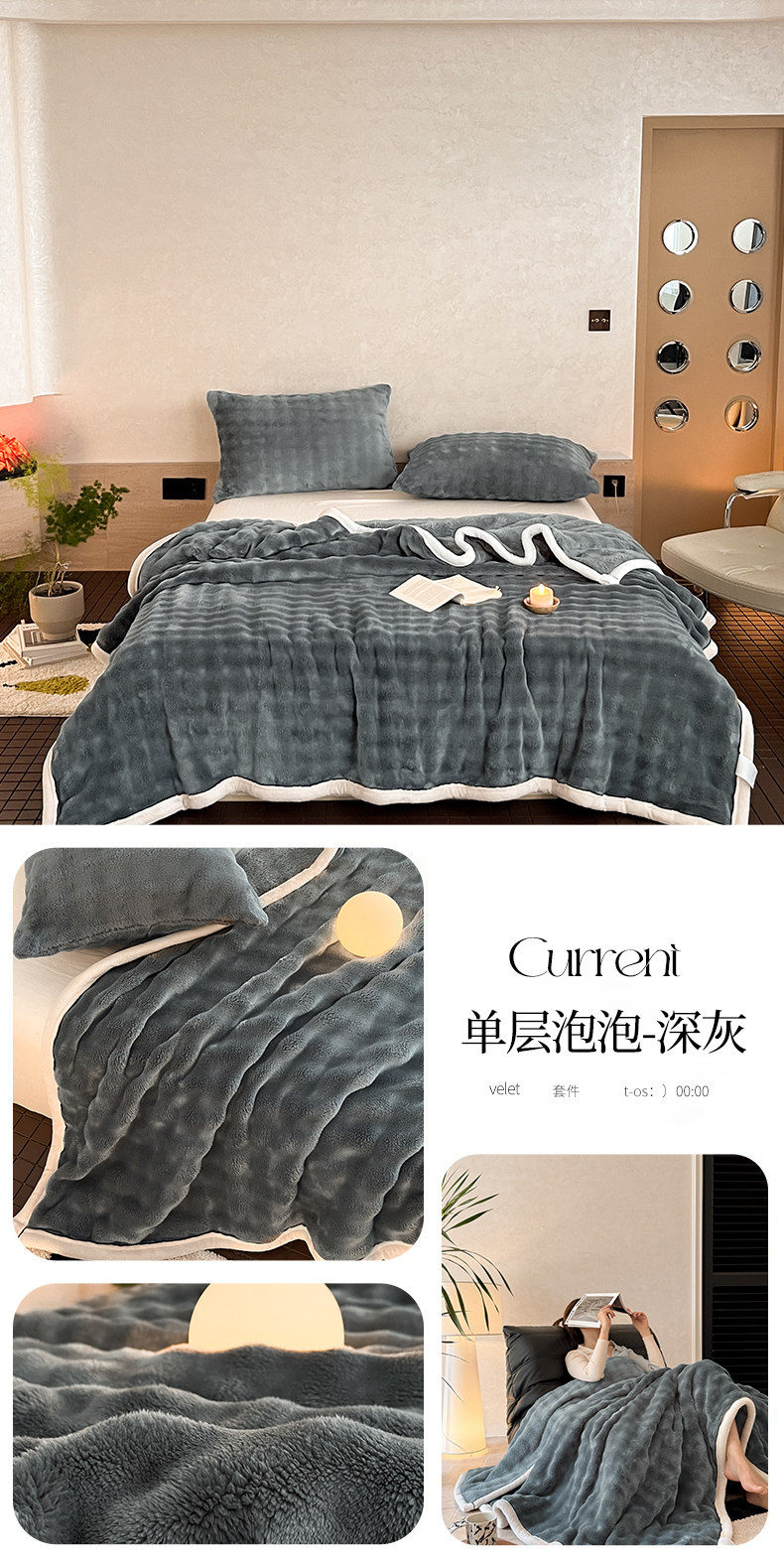 商品名称:(总)欧邦 新款仿兔毛泡泡绒牛奶绒包边单层毛毯(外贸供货)