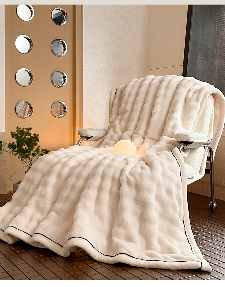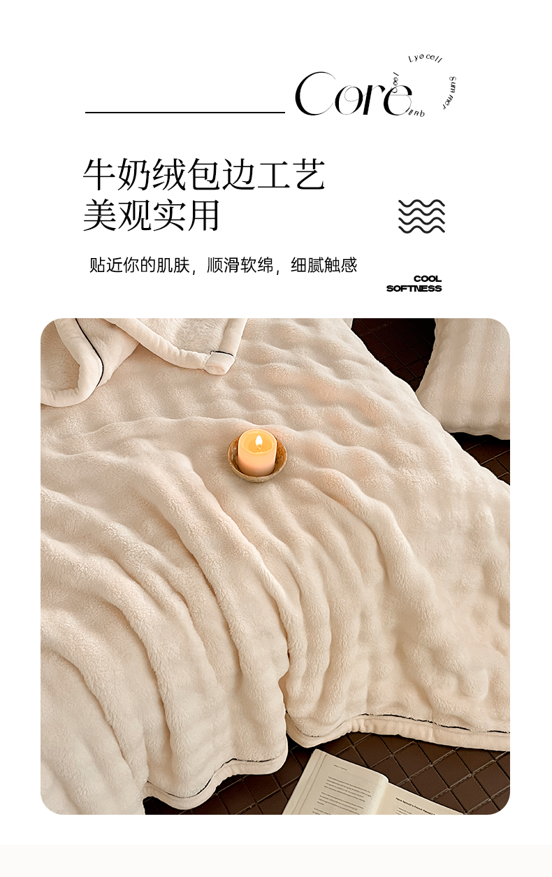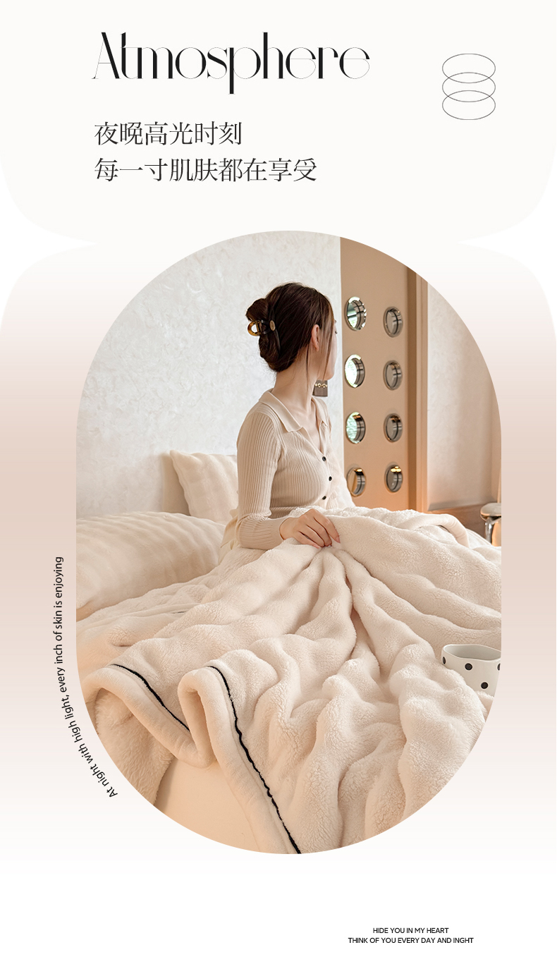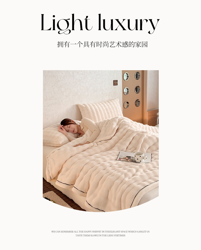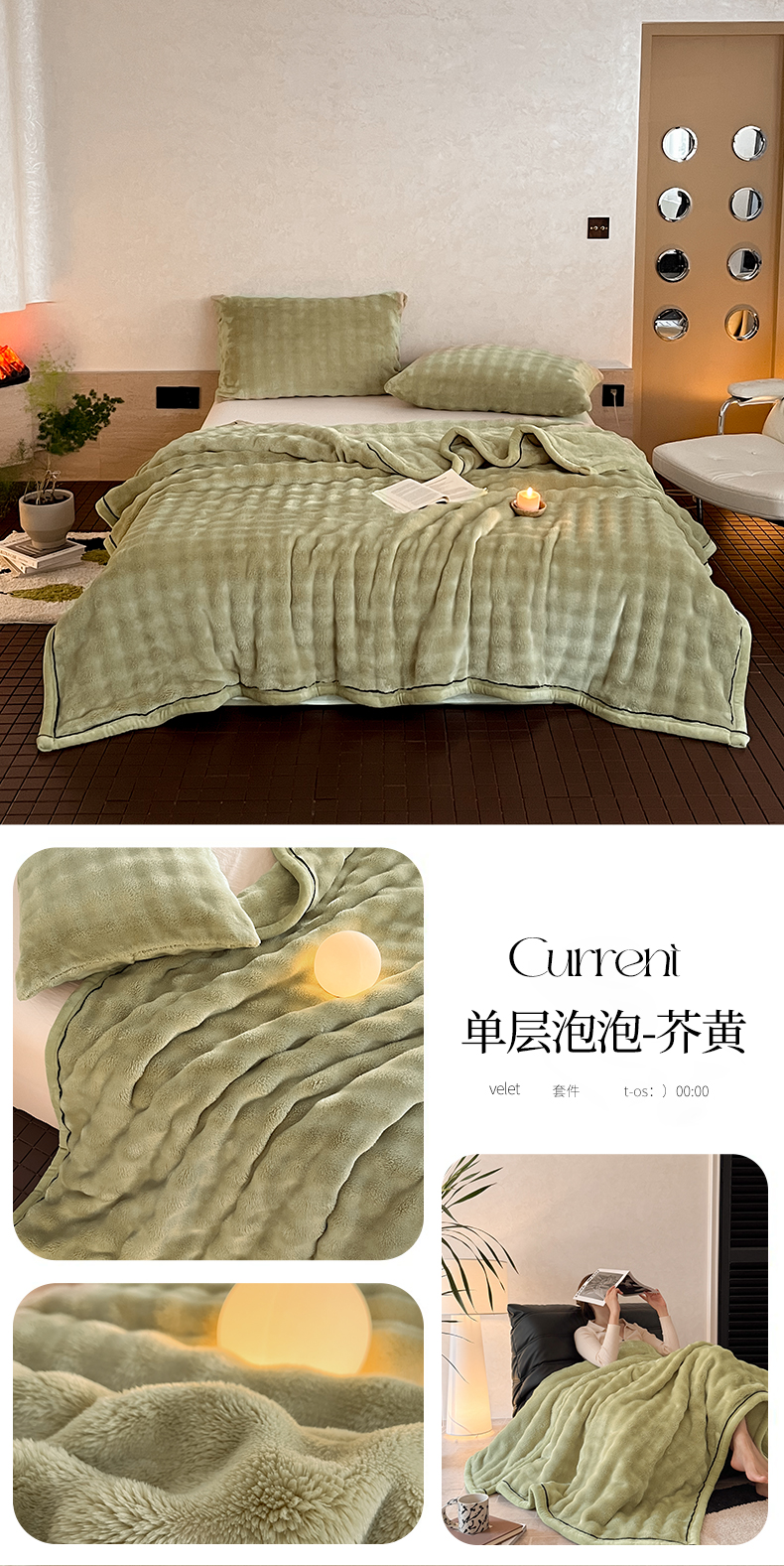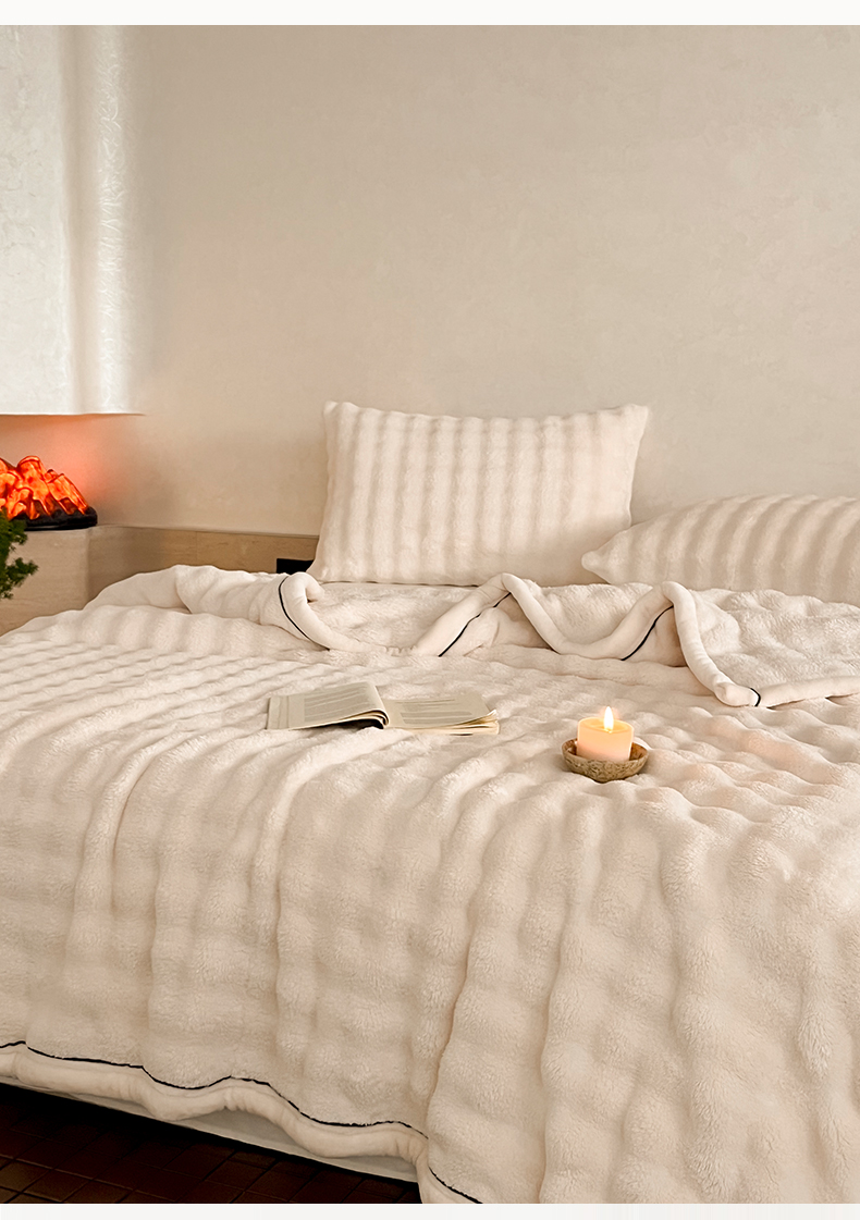 商品名称:(总)欧邦 新款仿兔毛泡泡绒牛奶绒包边单层毛毯(外贸供货)