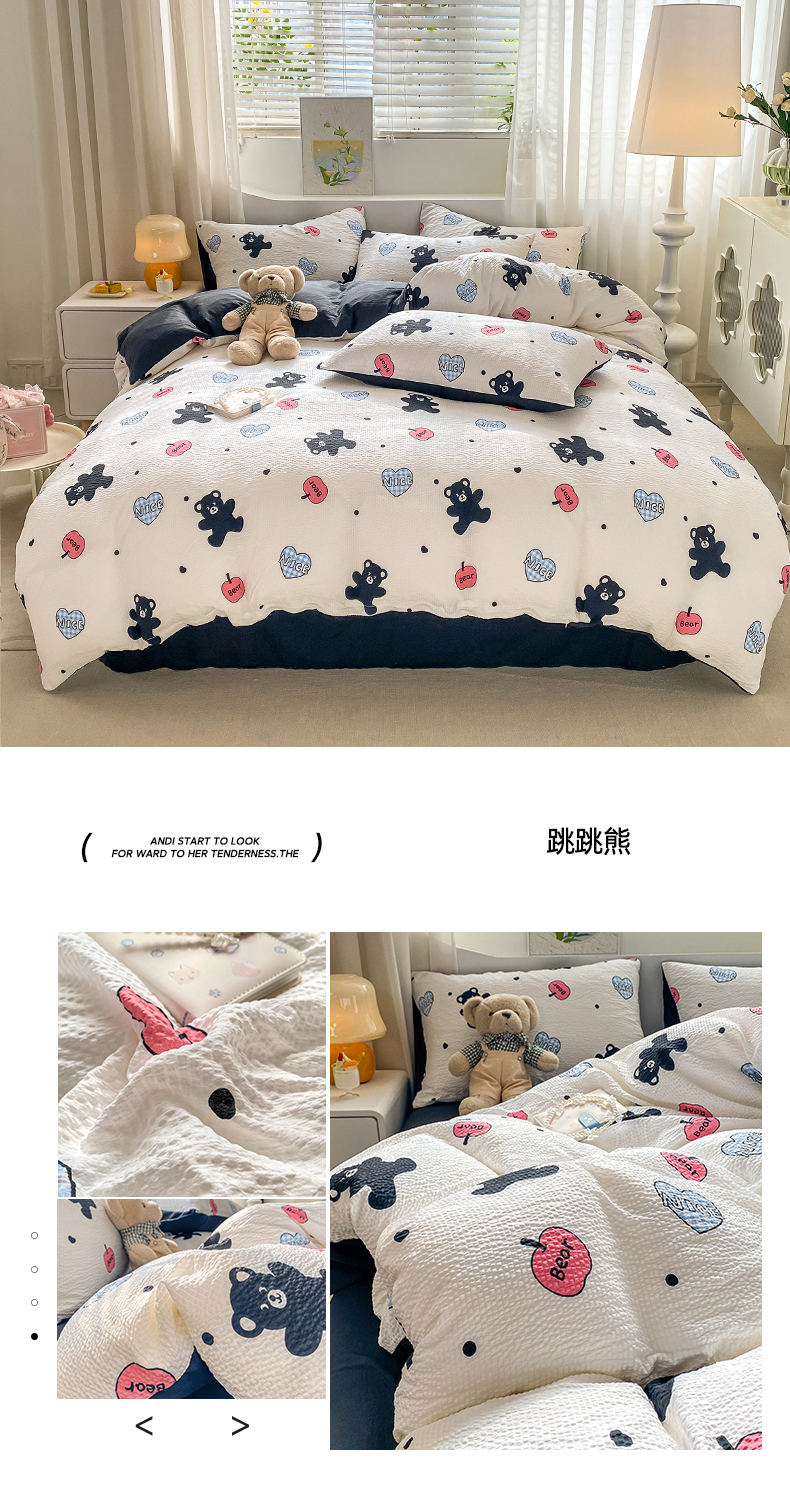 当前位置: 91家纺网 > 商品网购 > 床品套件 > 四件套 > 水洗棉四件套 > 悦织湾家纺 2025新款轻奢北欧风小清新印花水洗棉四件套 跳跳熊