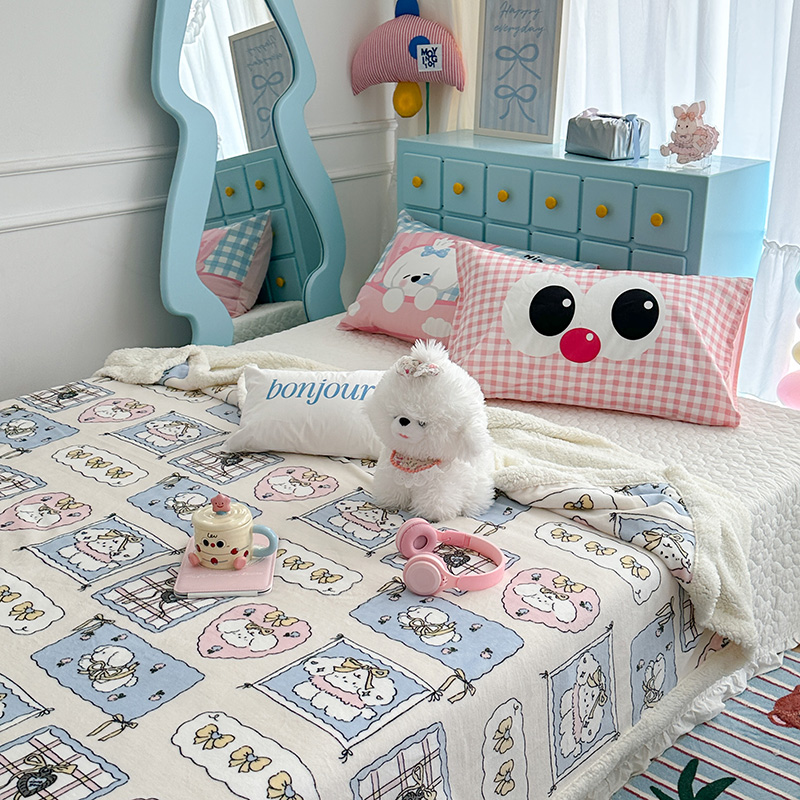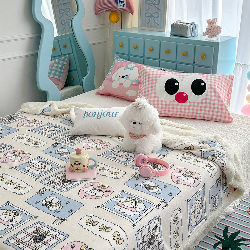 (总)昔可家纺 2024新款印花牛奶绒四件套系列-洛丽塔风,萝莉小兔,小熊烘焙屋,小熊玩偶屋