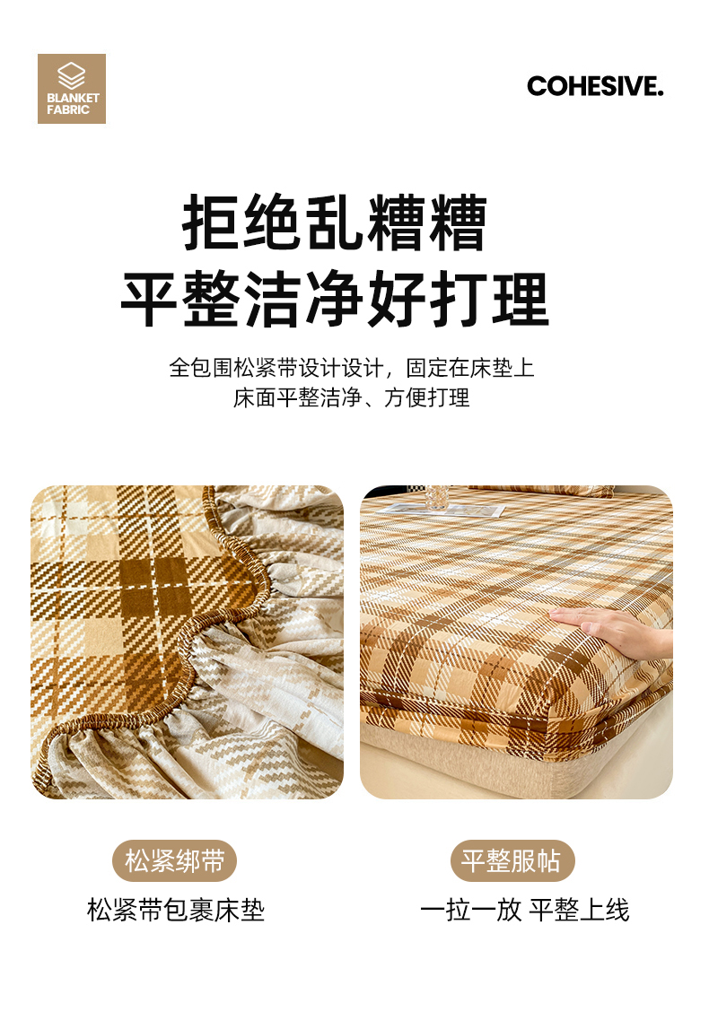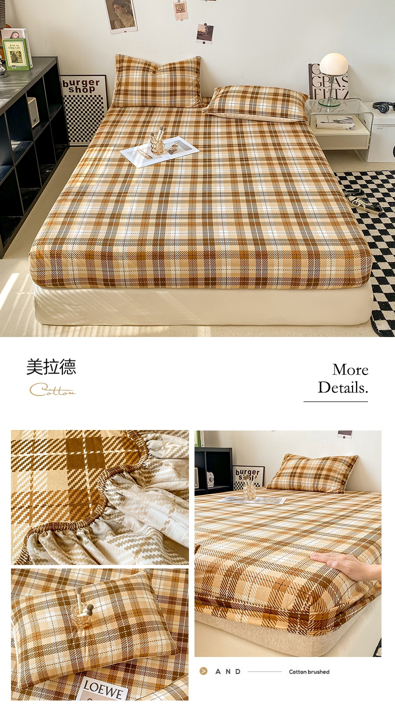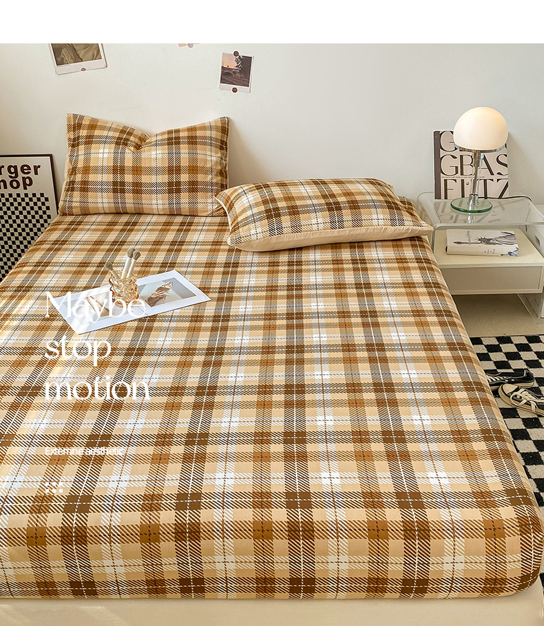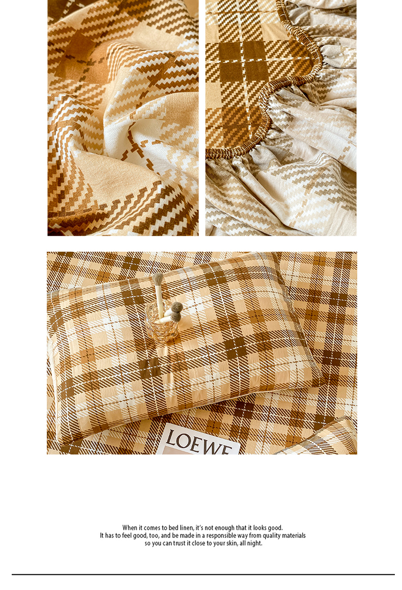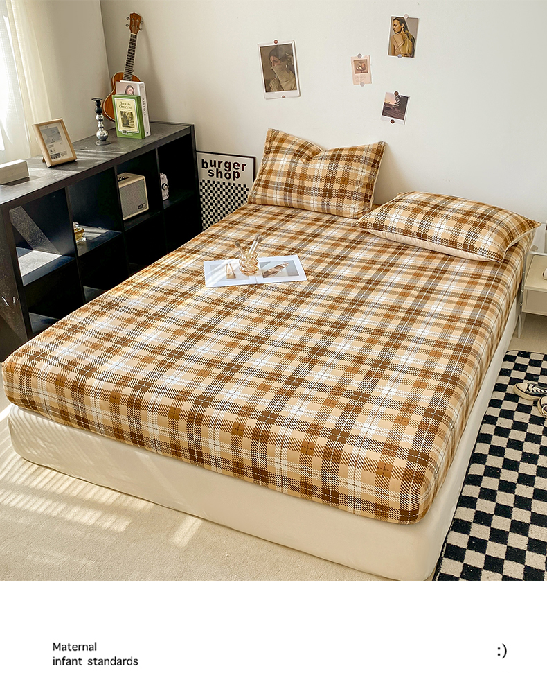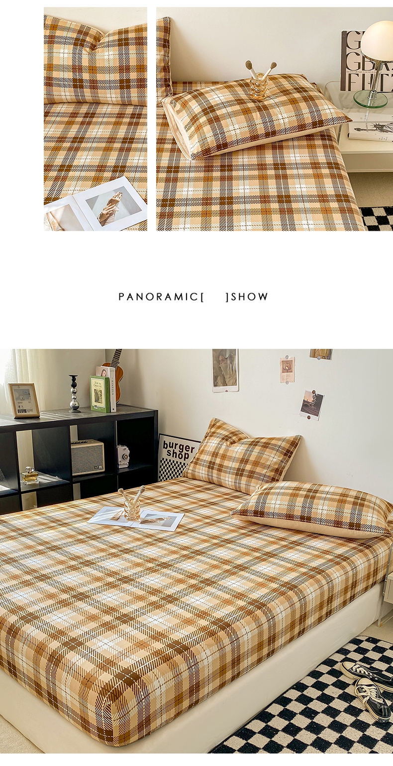 悦织湾家纺 2025新款日式简约格子水洗棉单品床笠系列 美拉德