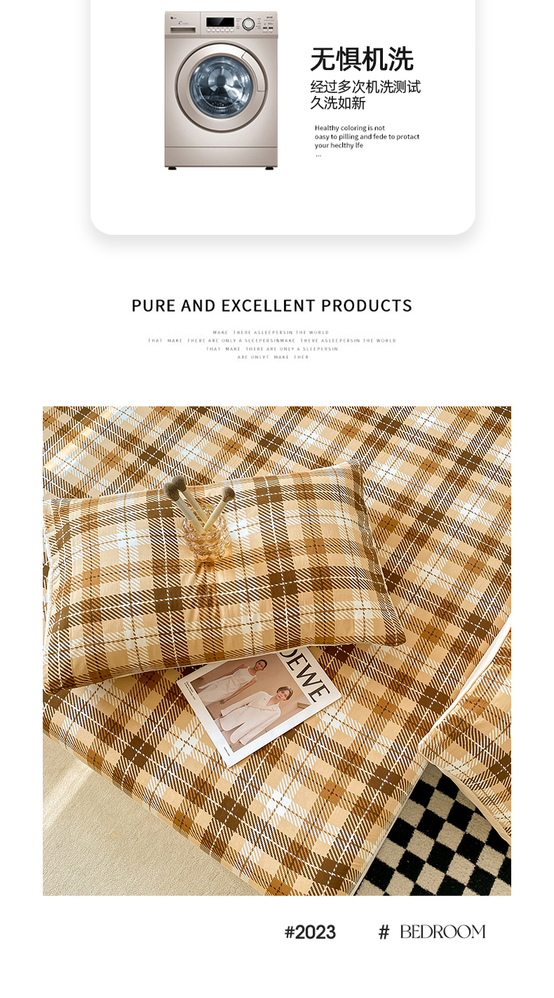 商品名称:悦织湾家纺 2025新款日式简约格子水洗棉单品床笠系列 美拉德