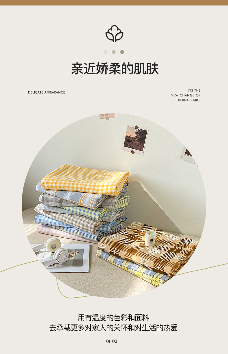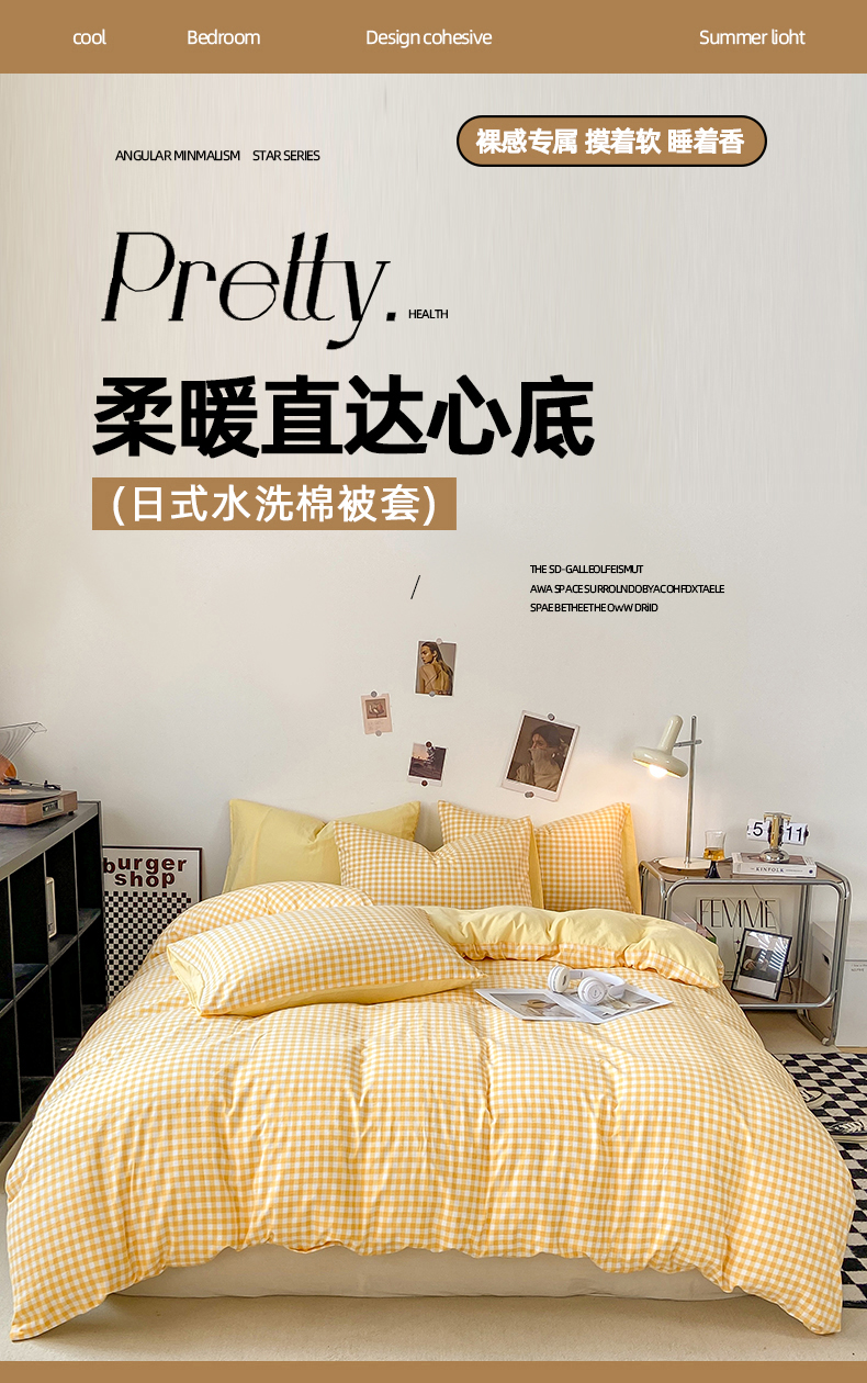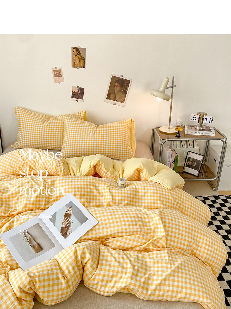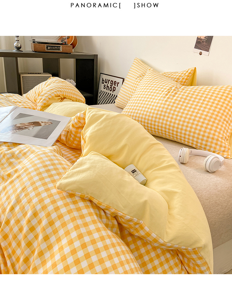 悦织湾家纺 2025新款日式简约格子水洗棉单品被套系列 布丁黄
