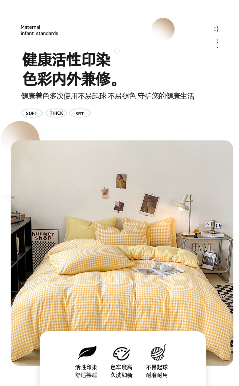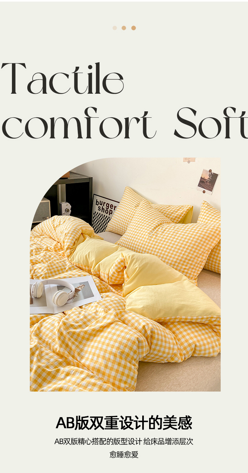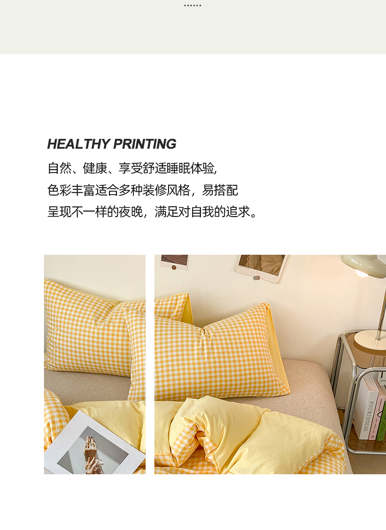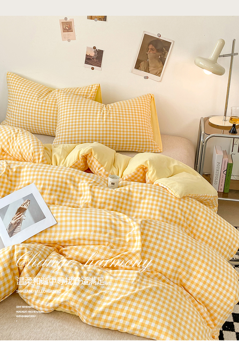 商品名称:悦织湾家纺 2025新款日式简约格子水洗棉单品被套系列 布丁黄