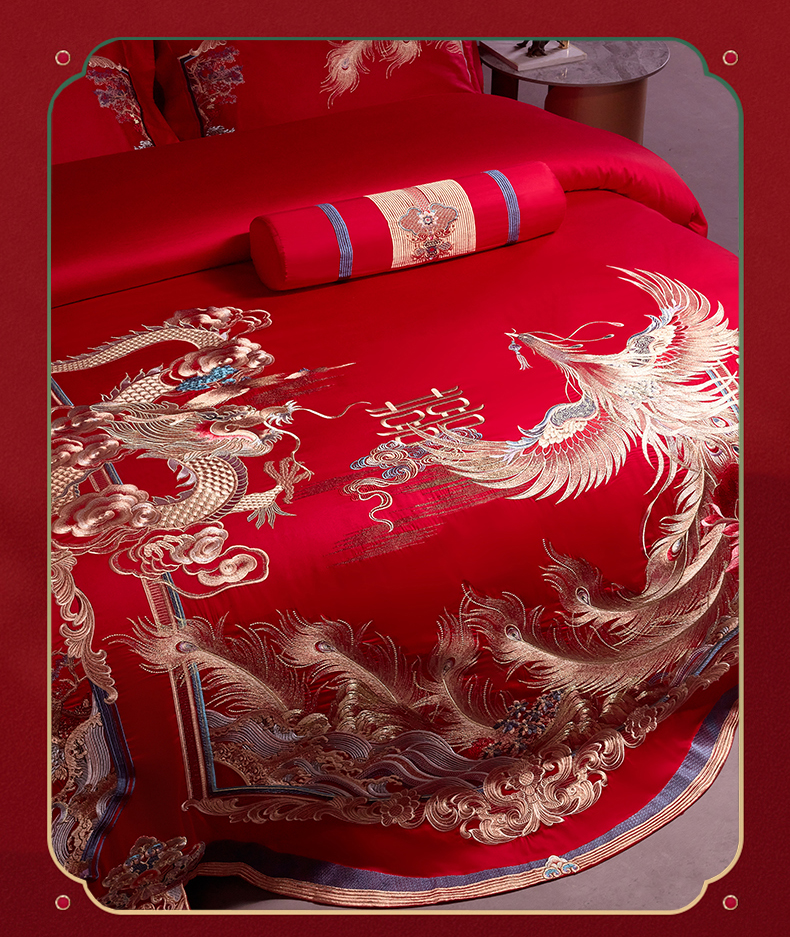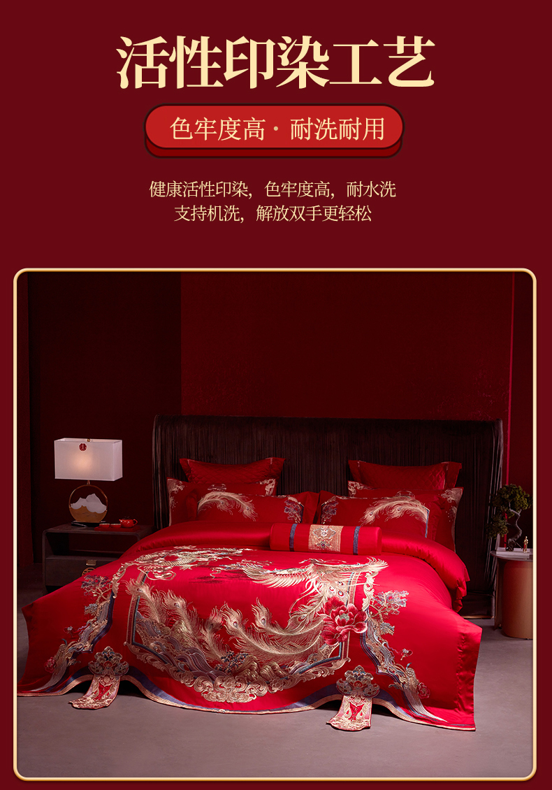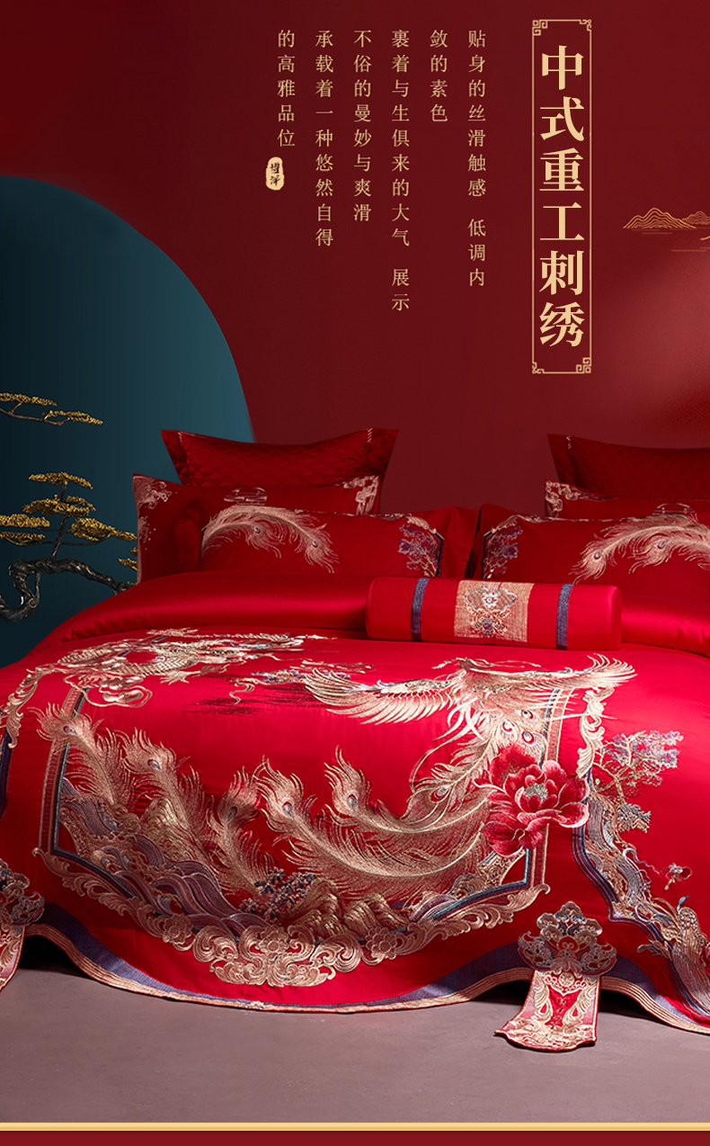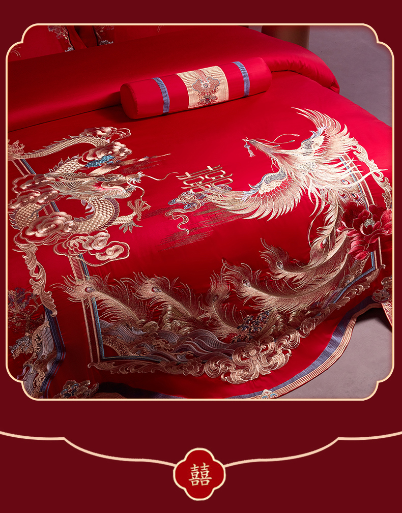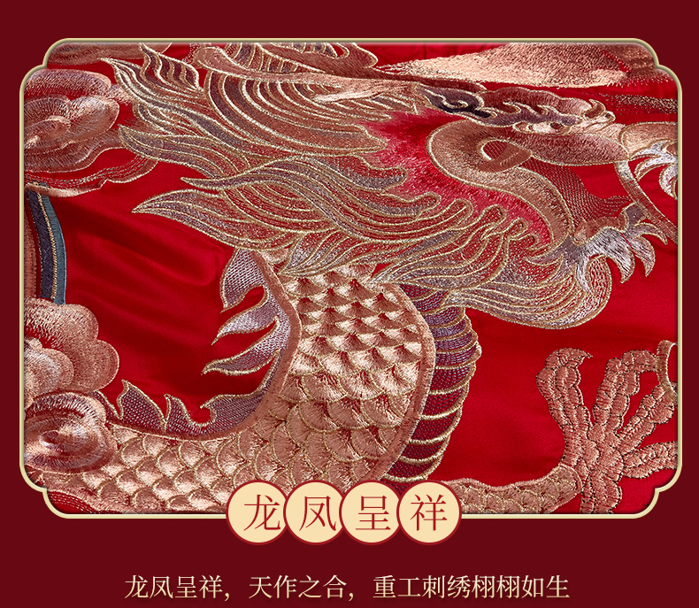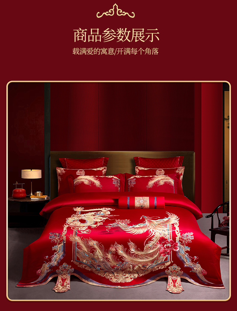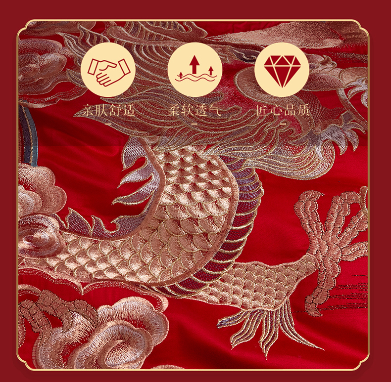 当前位置: 91家纺网 > 商品网购 > 床品套件 > 四件套 > 长绒棉四件套 > 2025新款长绒棉长绒棉贡缎提花款新中式古典韵味精美刺绣婚庆四件套多件套 龙祥凤喜