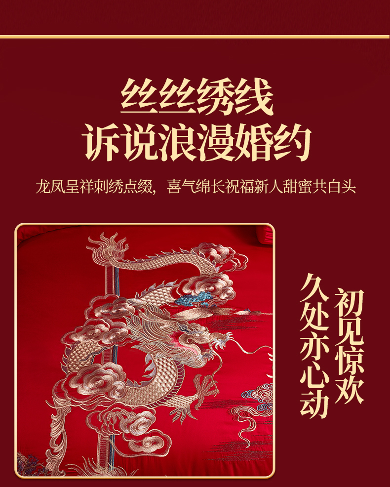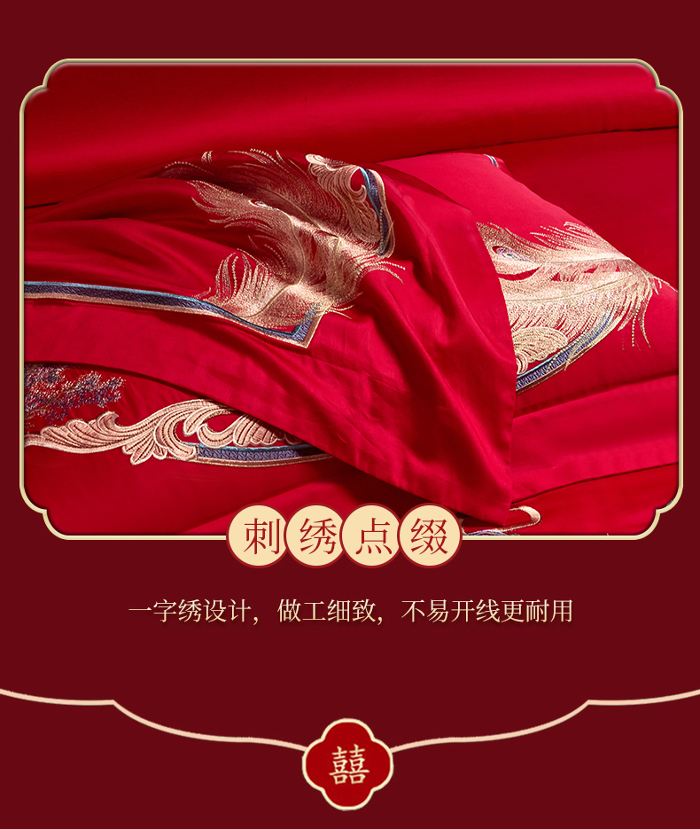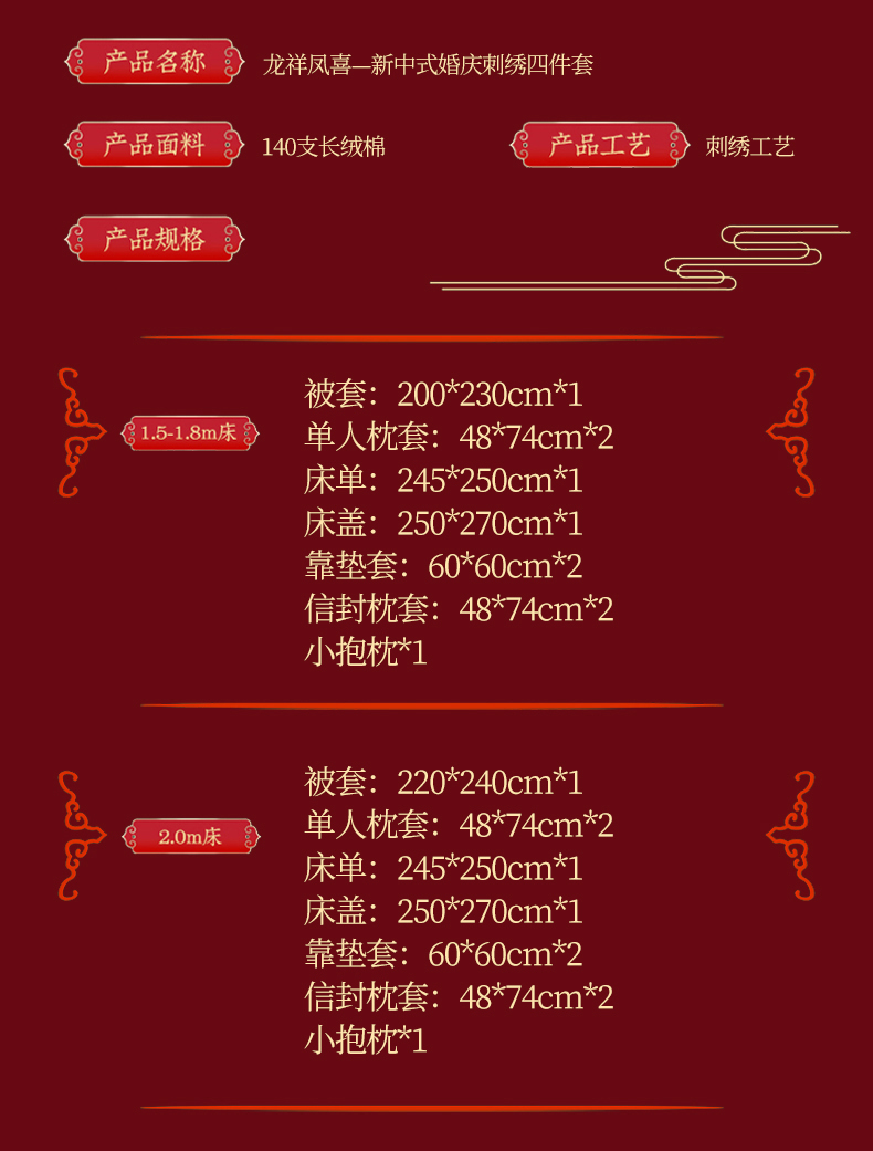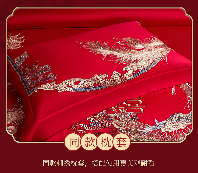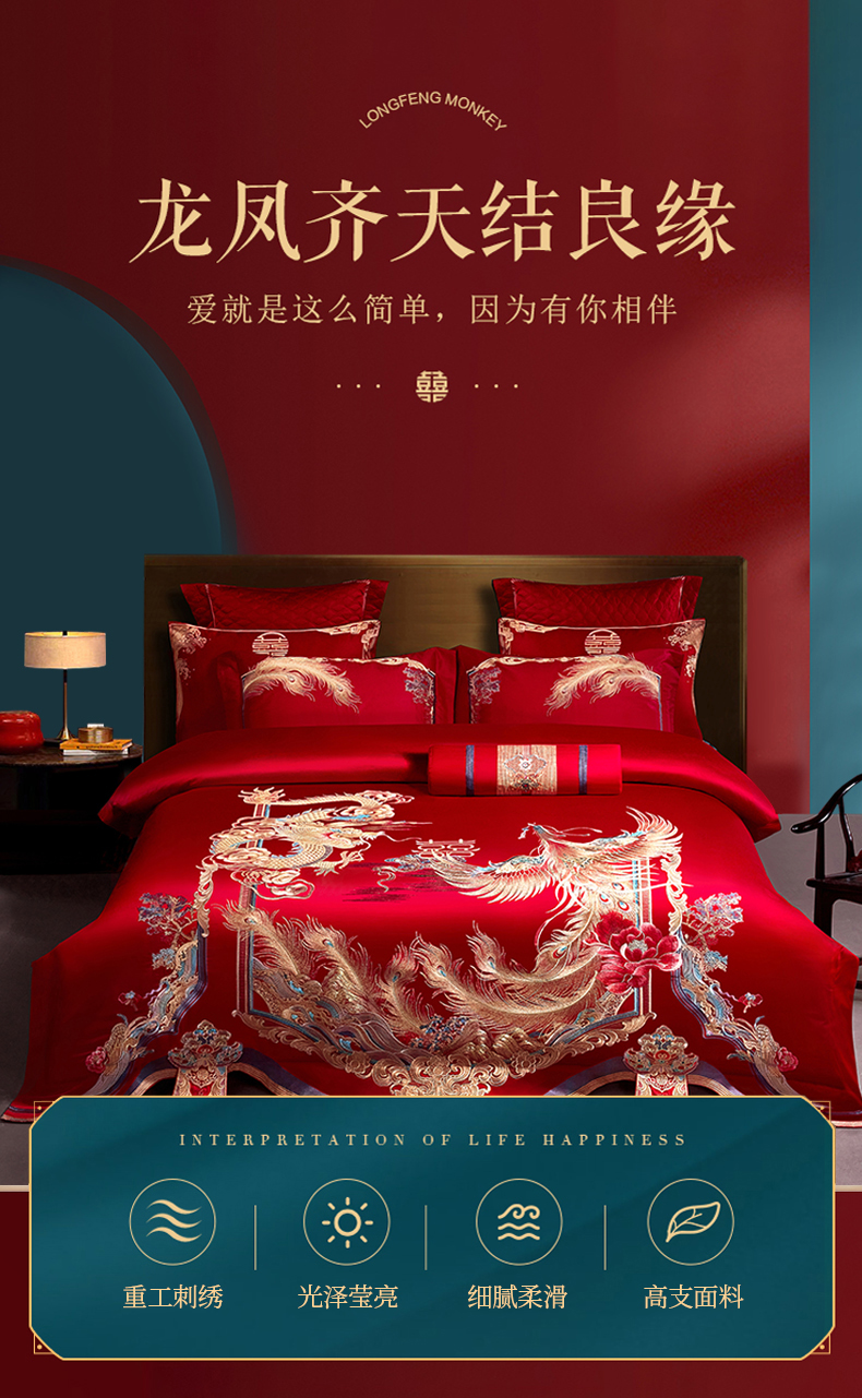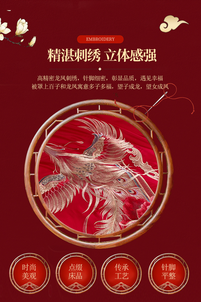当前位置: 91家纺网 > 商品网购 > 床品套件 > 四件套 > 长绒棉四件套 > 2025新款长绒棉长绒棉贡缎提花款新中式古典韵味精美刺绣婚庆四件套多件套 龙祥凤喜