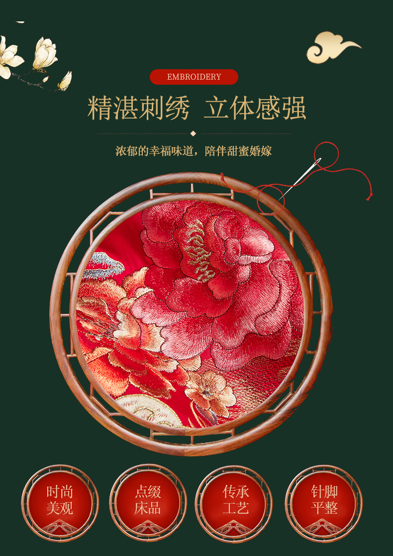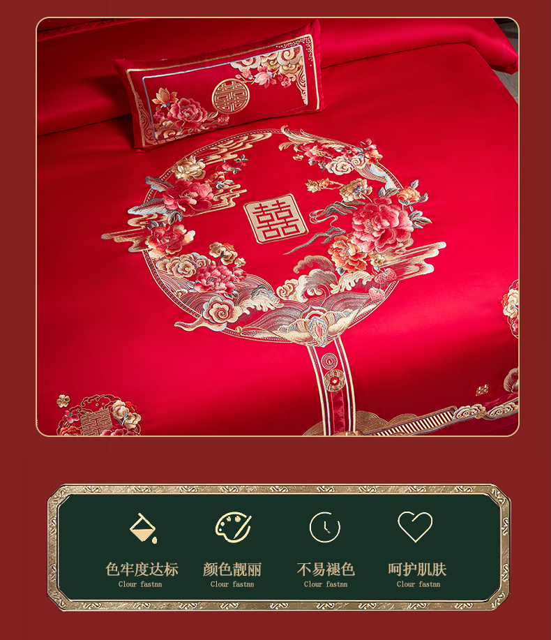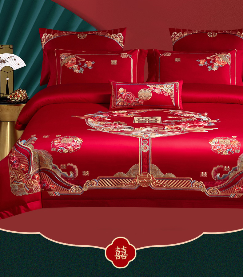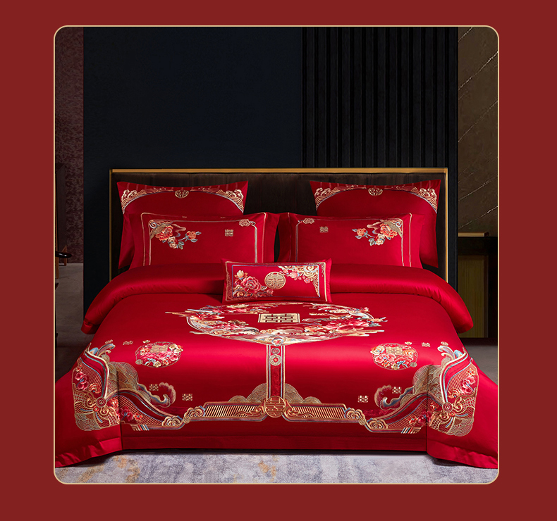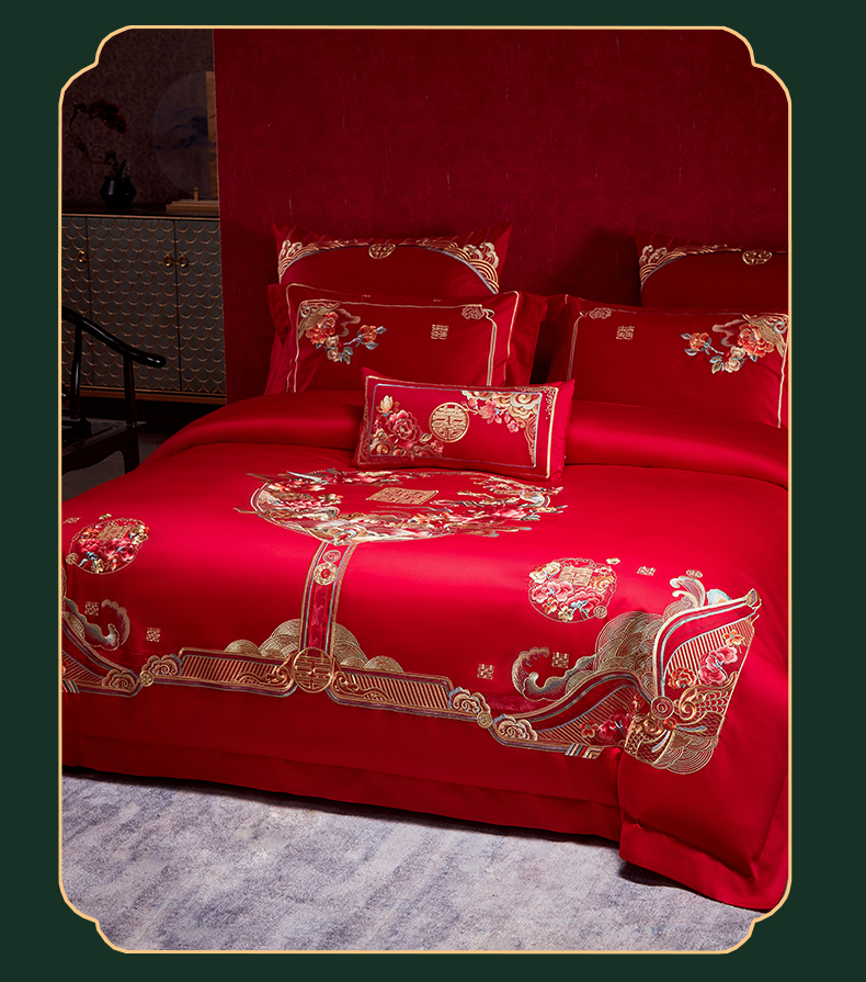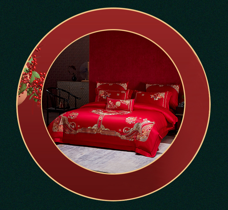 当前位置: 91家纺网 > 商品网购 > 床品套件 > 四件套 > 长绒棉四件套 > 2025新款长绒棉长绒棉贡缎提花款新中式古典韵味精美刺绣婚庆四件套多件套 缘定江山