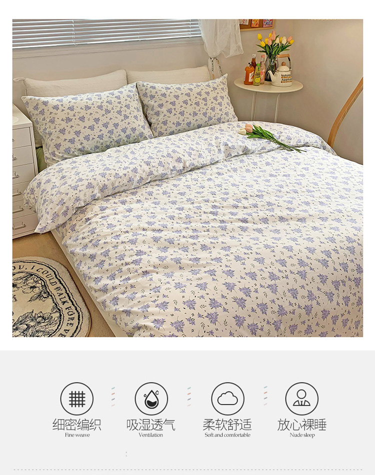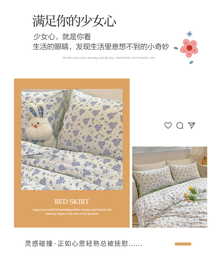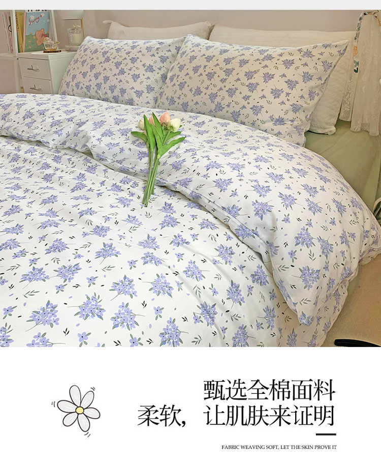 (总)田野2021小清新全棉四件套纯棉碎花田园风三件套,菲菲兔,芬芳-绿,花期,萝拉,莎拉,恬爱,仙草,樱花草-蓝