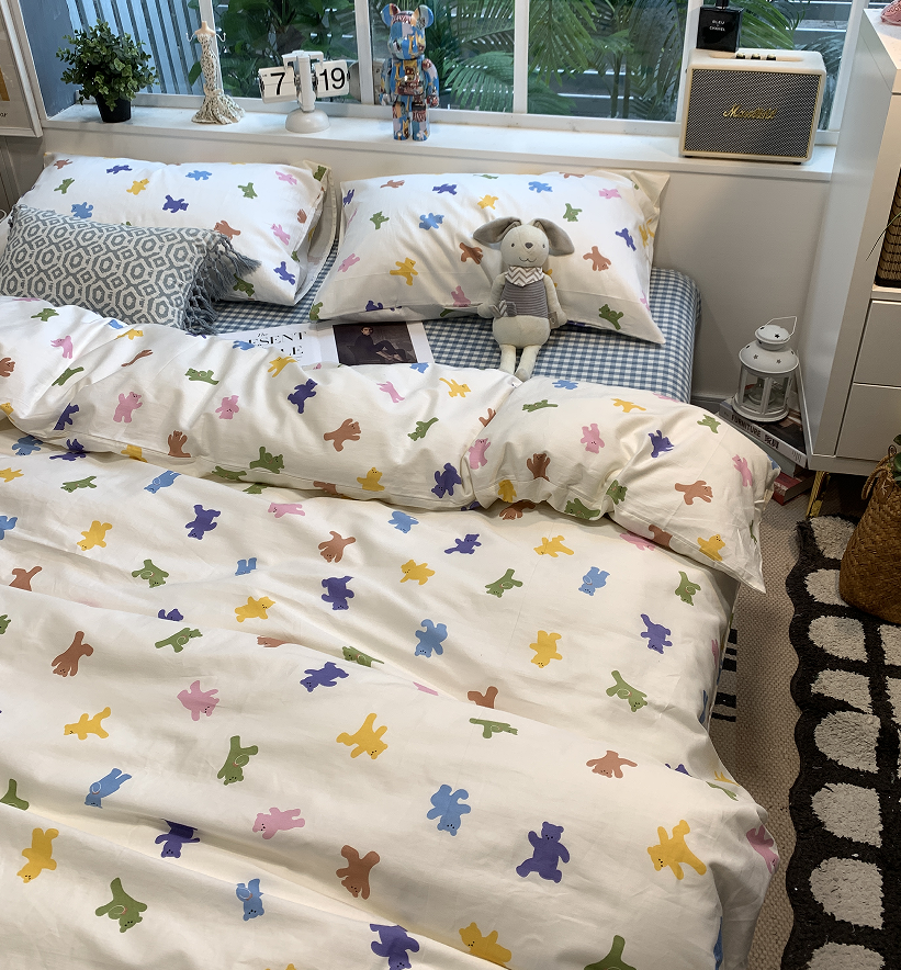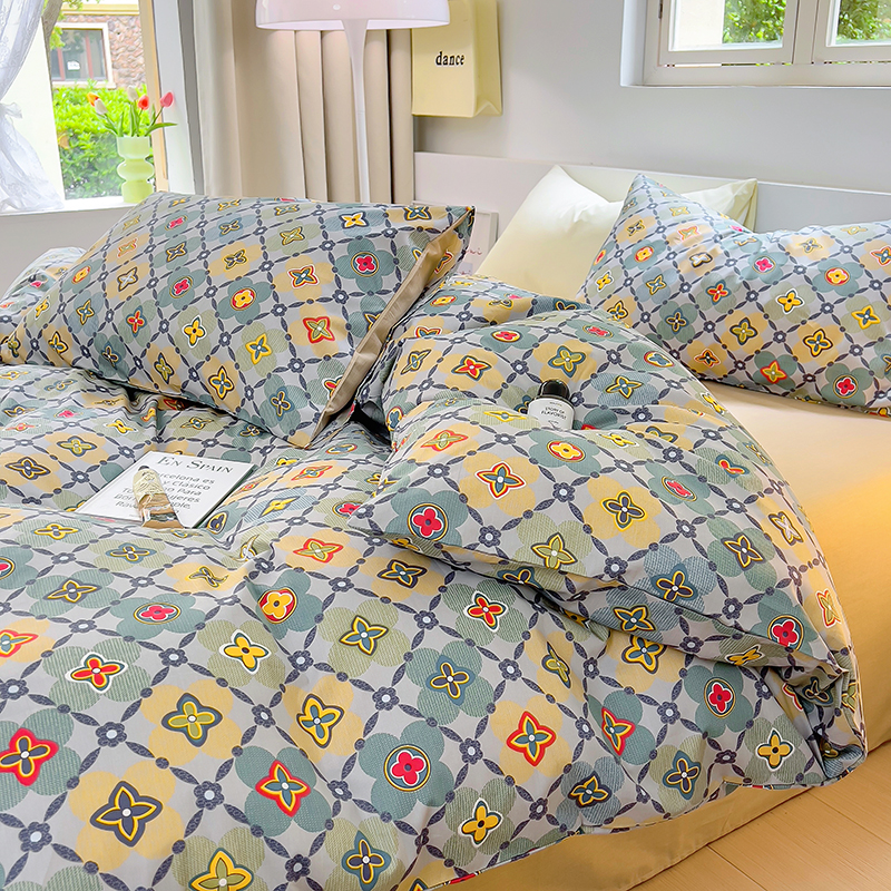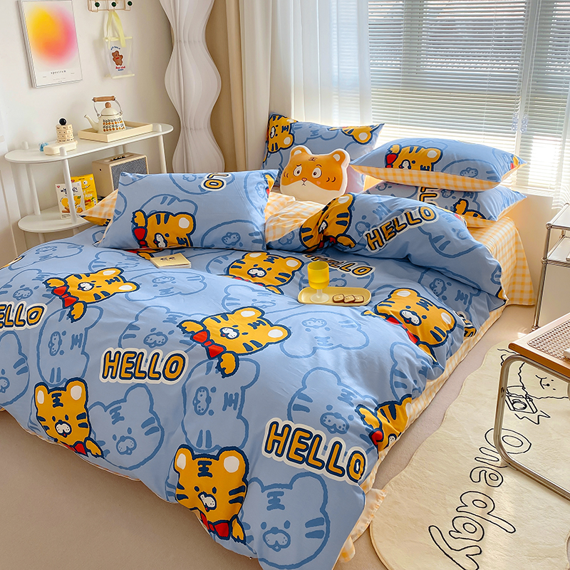 (总)田野 2022新13372全棉印花小清新四件套纯棉床笠,比心,哈喽虎-黄,哈喽虎-蓝,铃兰花,绿茵,梦的旋律,墨璃,晚安虎,印象
