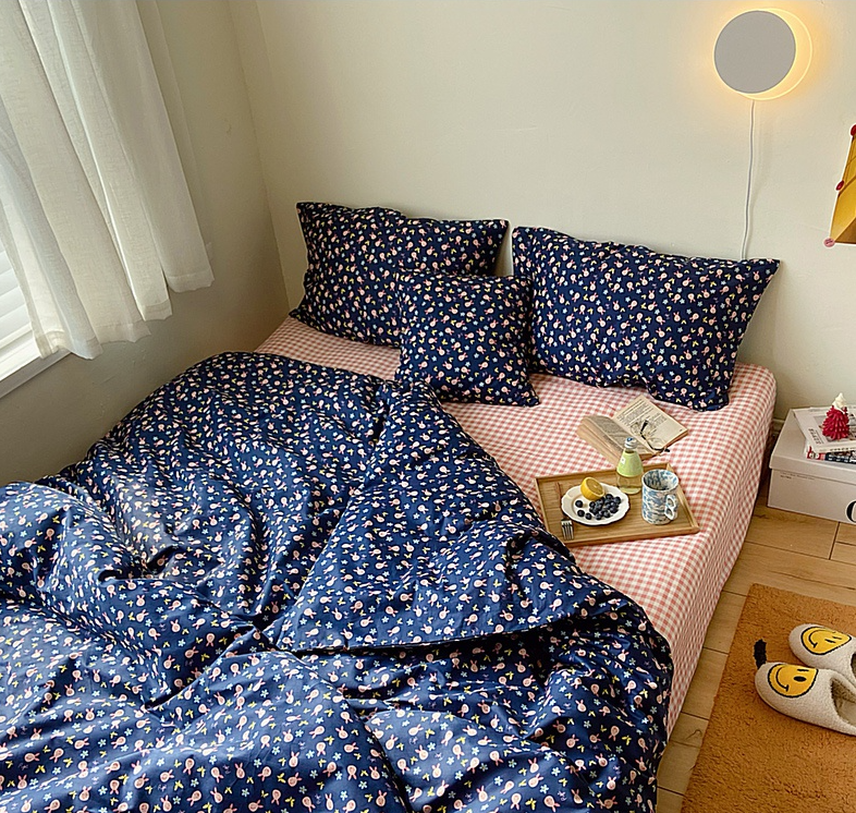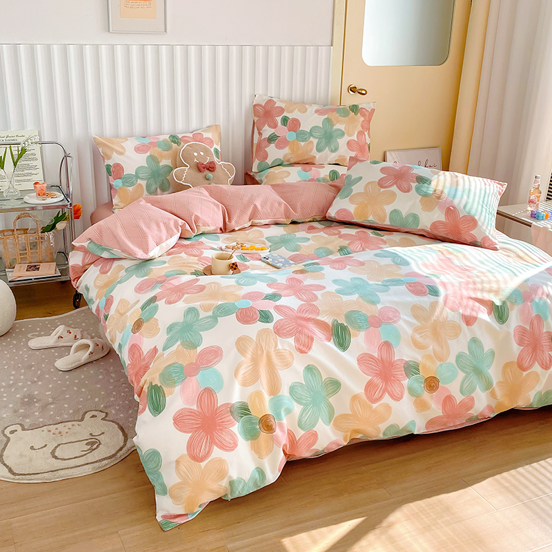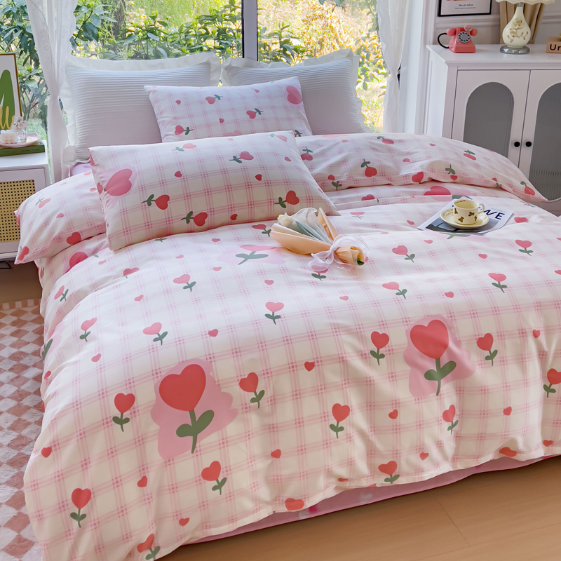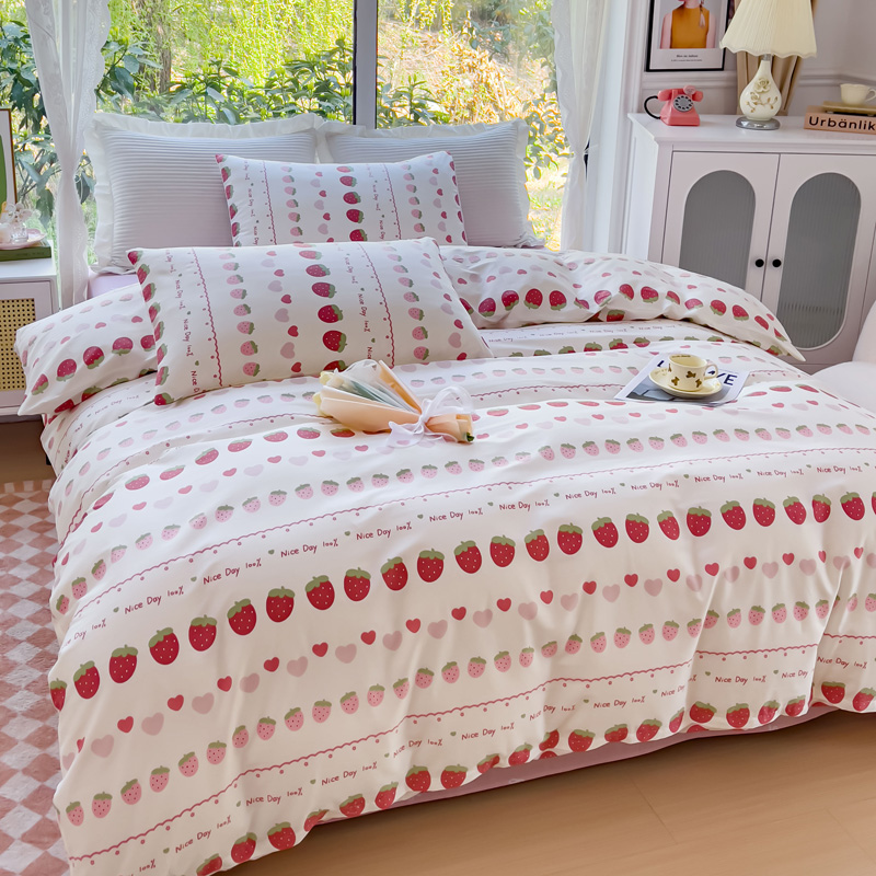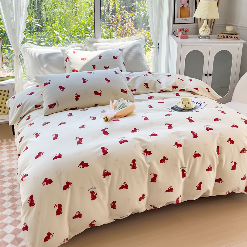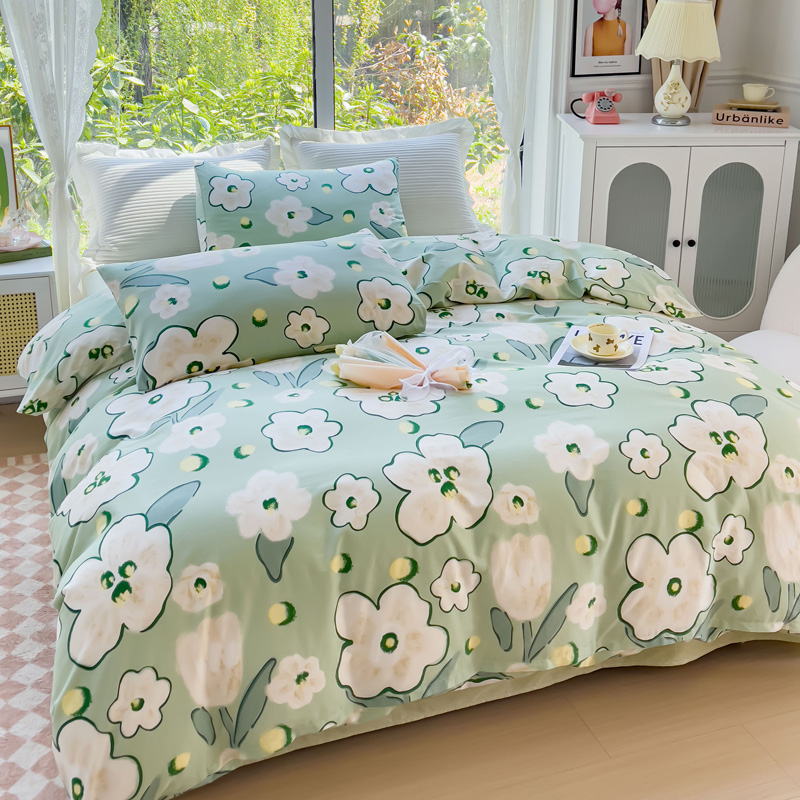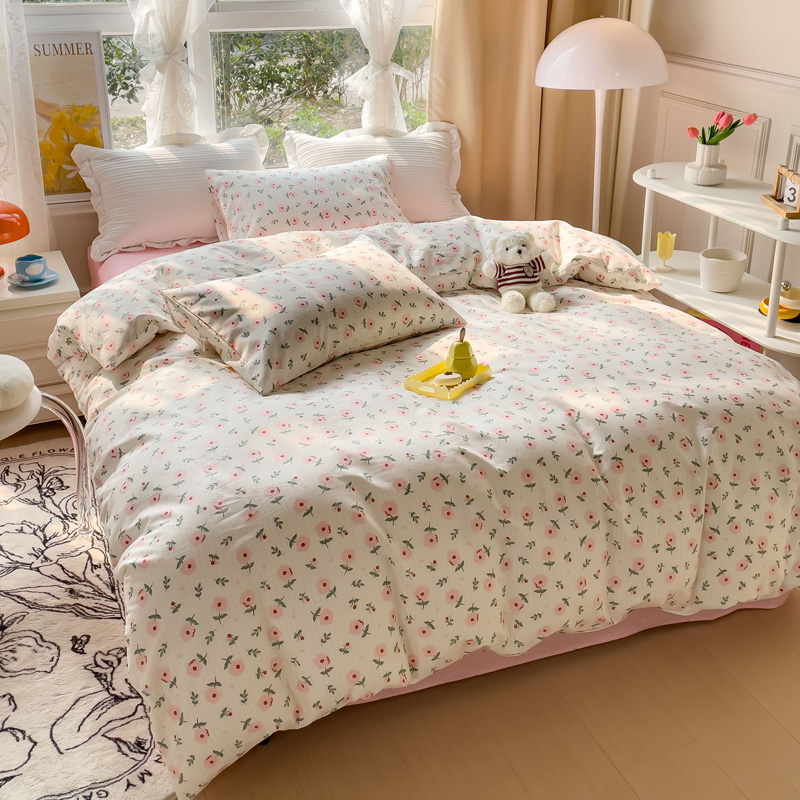 (总)田野 2022新款水洗棉小清新小碎花全棉四件套,花丛,花涧,绿婉,曼舞,桃夭,甜馨草莓,兔兔,银杏