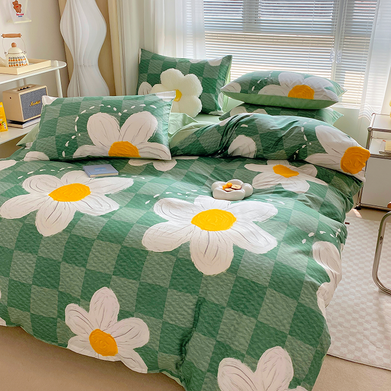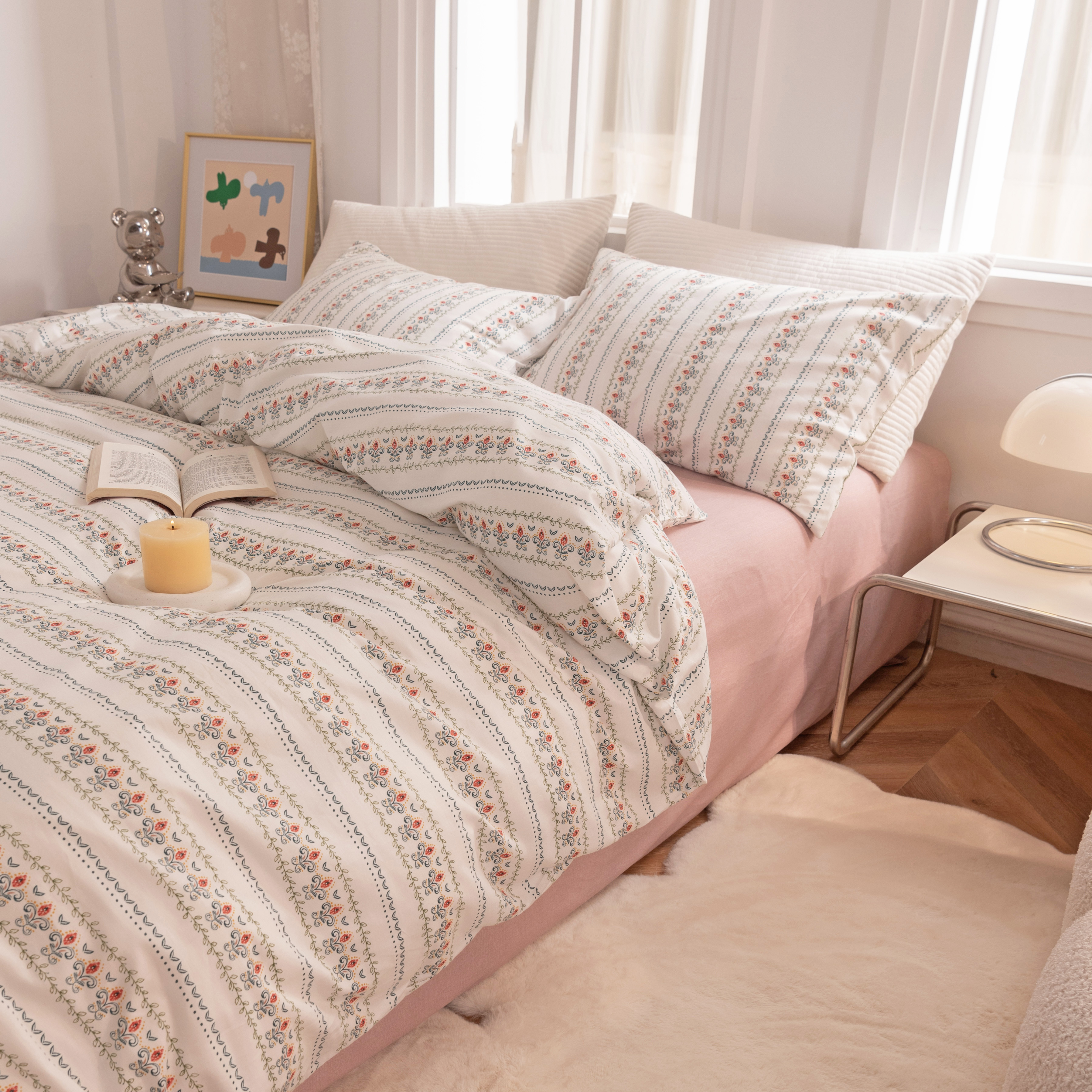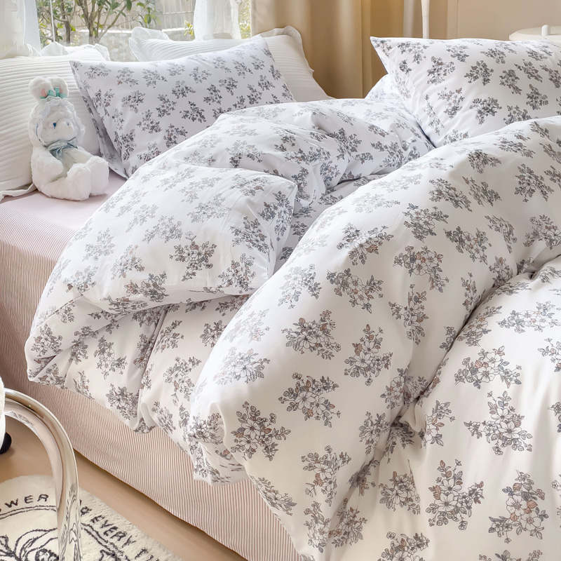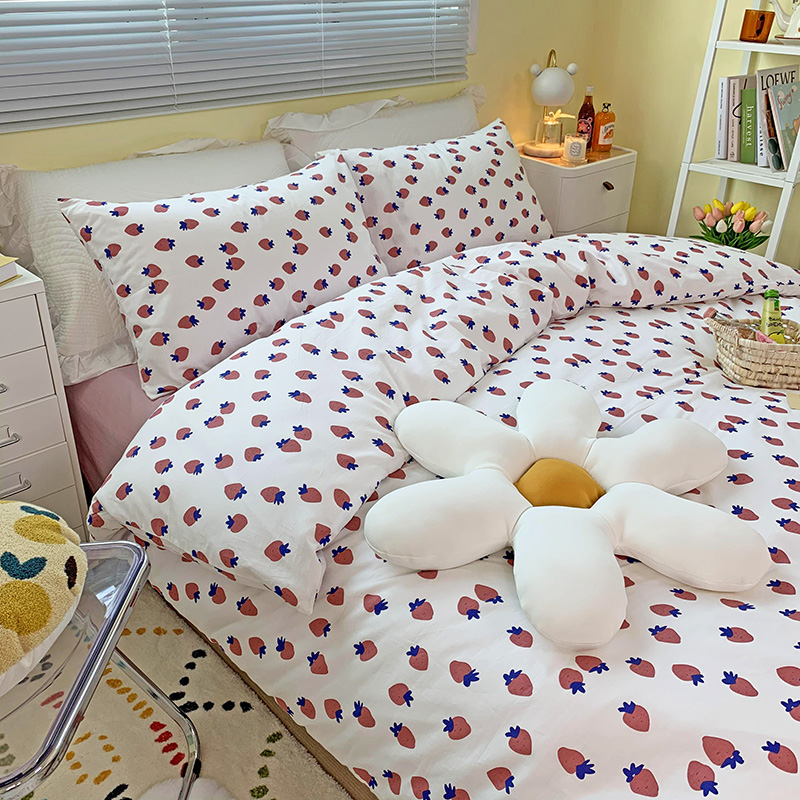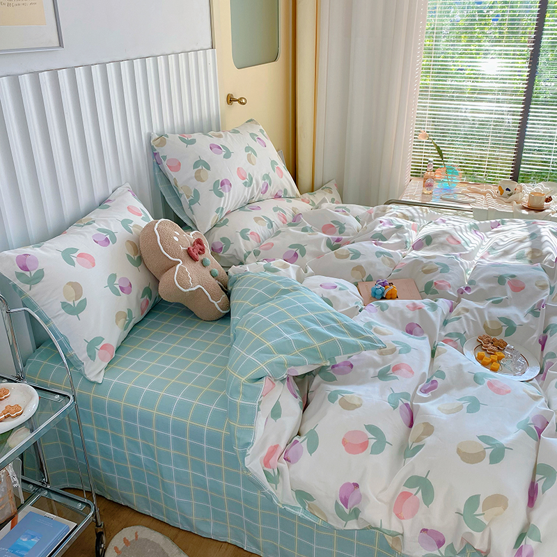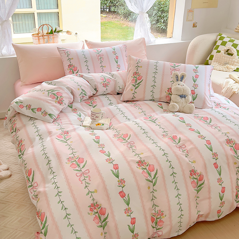 (总)田野 2022新款水洗棉小清新小碎花全棉四件套,花丛,花涧,绿婉,曼舞,桃夭,甜馨草莓,兔兔,银杏